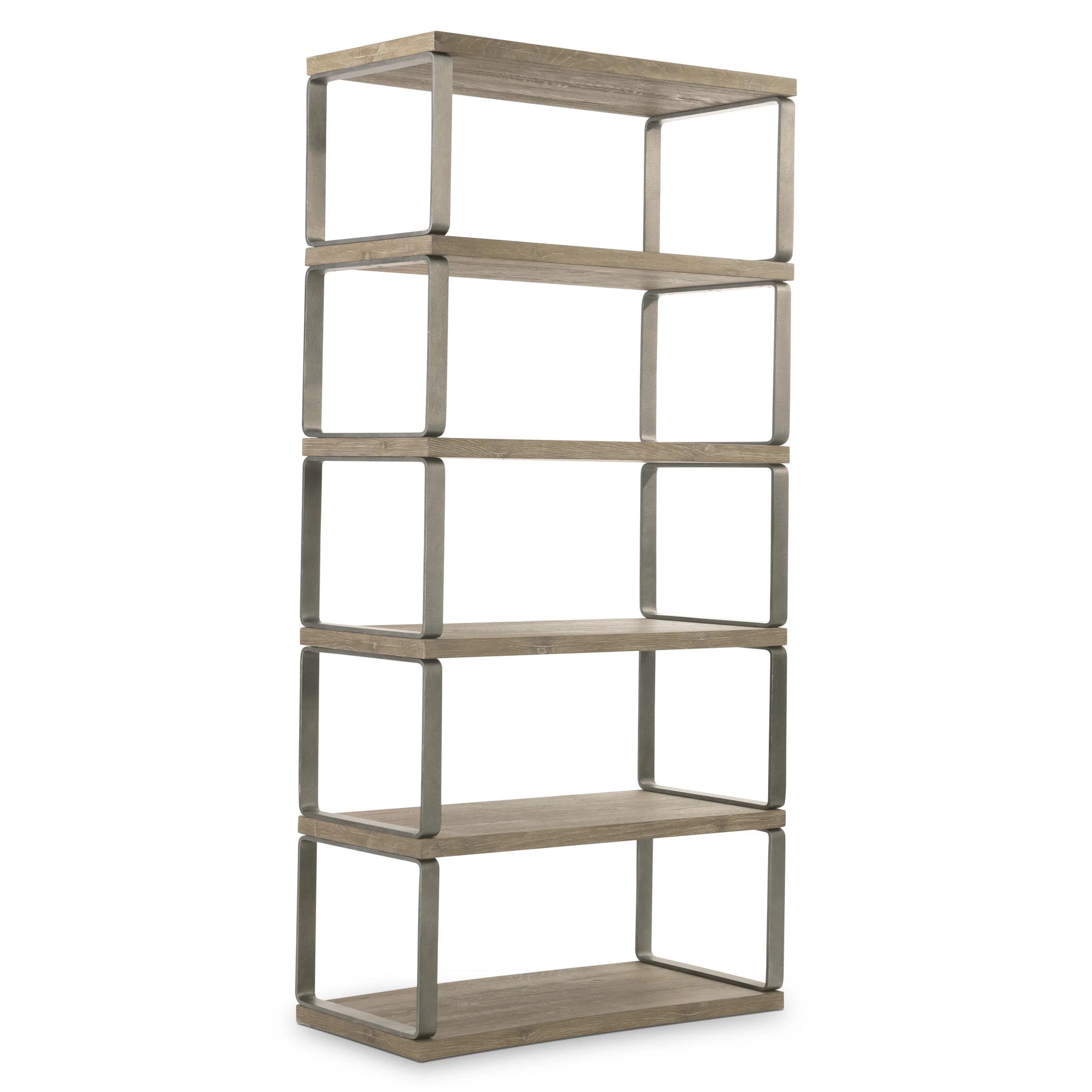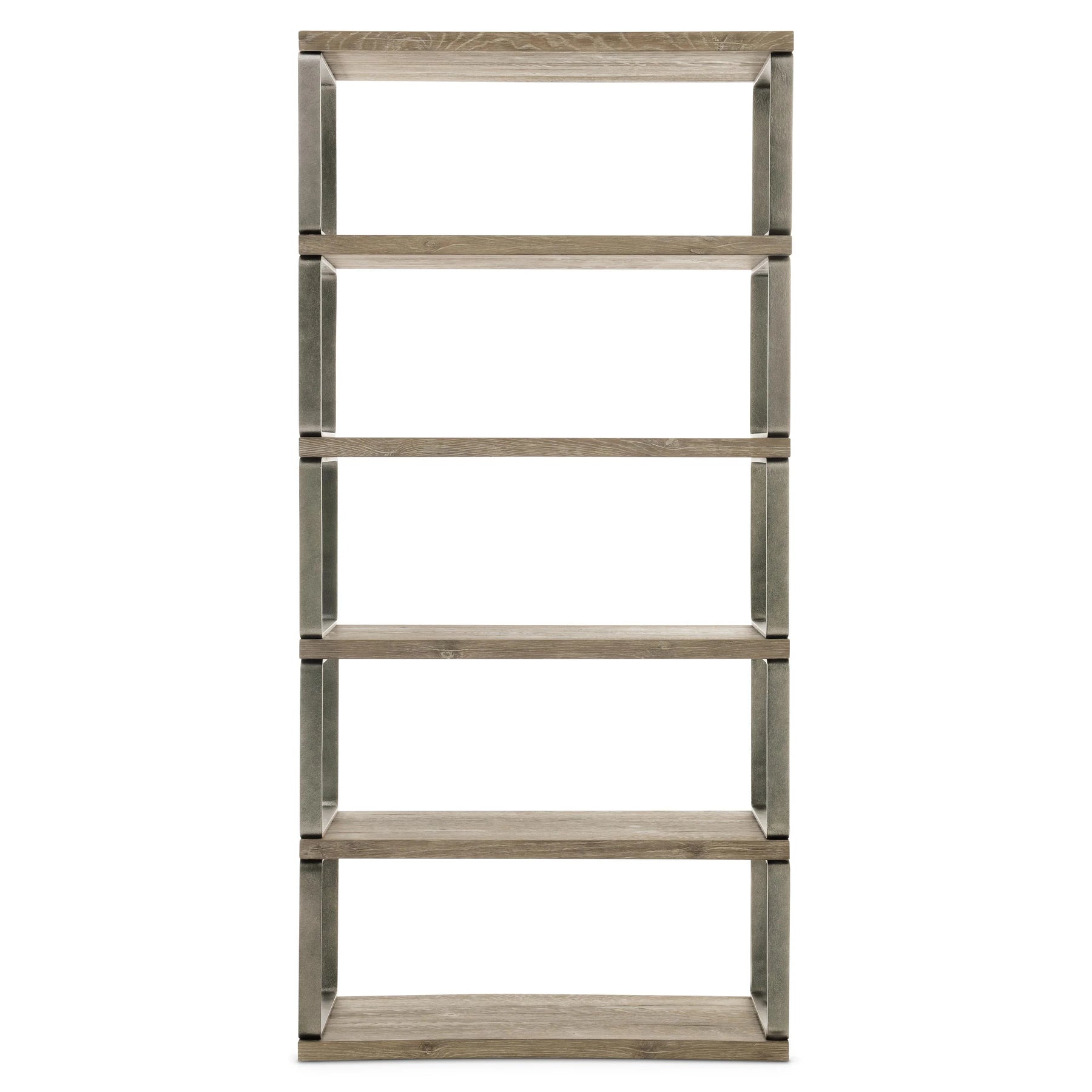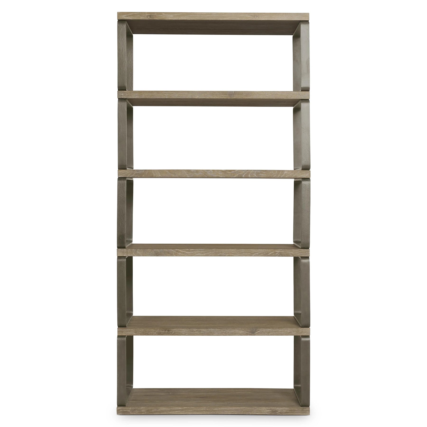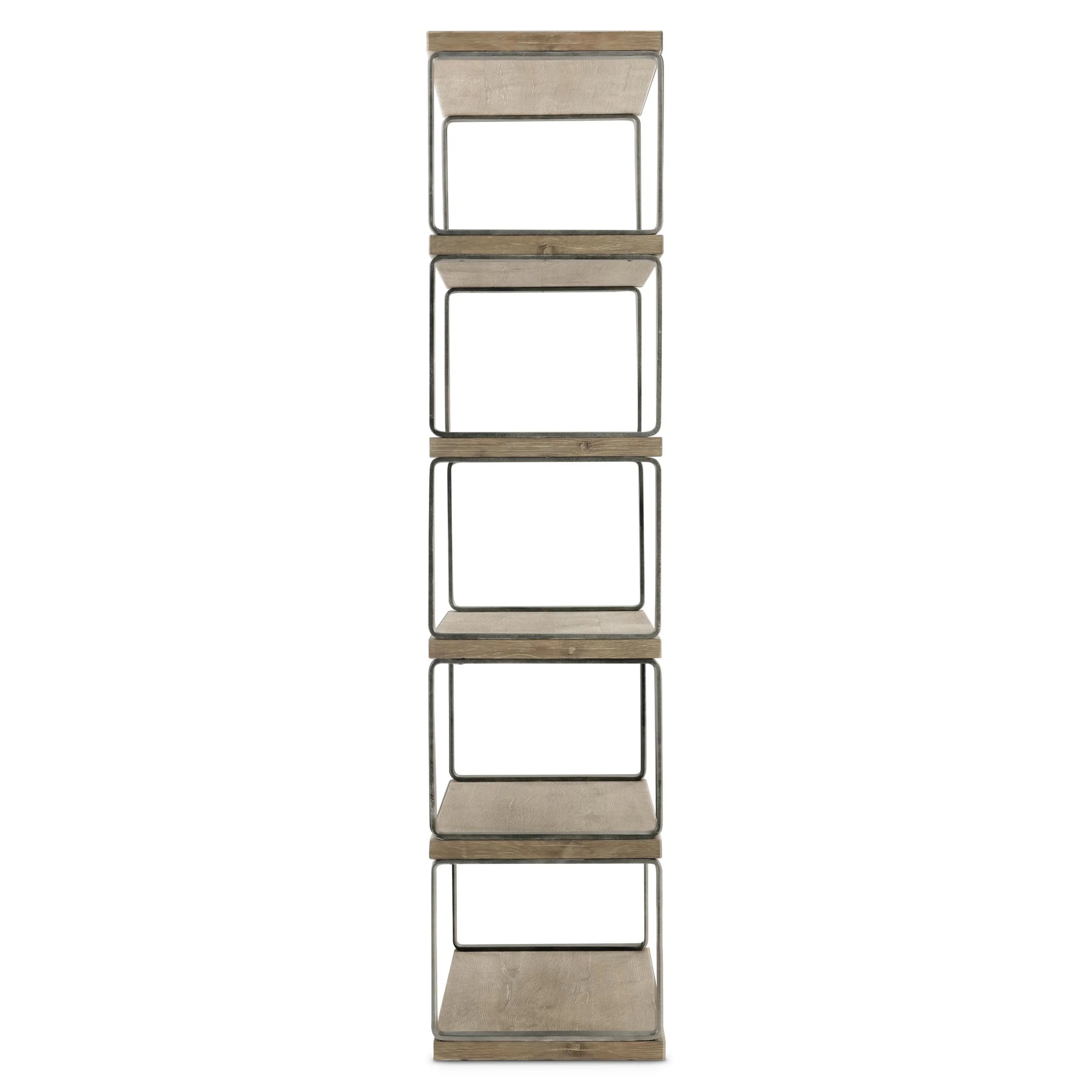 Wirebrushed Oak Etagere In Aurum Finish. Five Fixed Shelves. Applied Texture Steel Frame In Barlow Finish. Adjustable Glides.