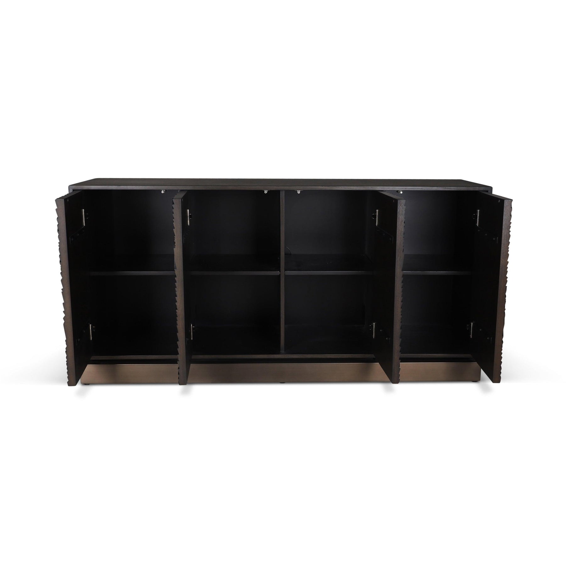 The Urbia IE Series Onda Buffet showcases sculpted Mahogany wood doors with an elegant wave-inspired motif, delivering natural texture and modern artistry. Elevated by a polished stainless steel base, this contemporary buffet features four doors and adjustable shelving for practical storage with refined style. The Onda Buffet makes a striking statement in dining rooms, living areas, or entryways while maintaining exceptional functionality.