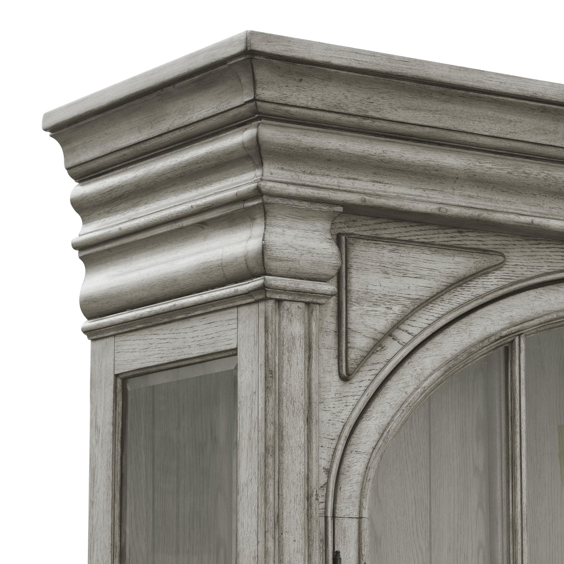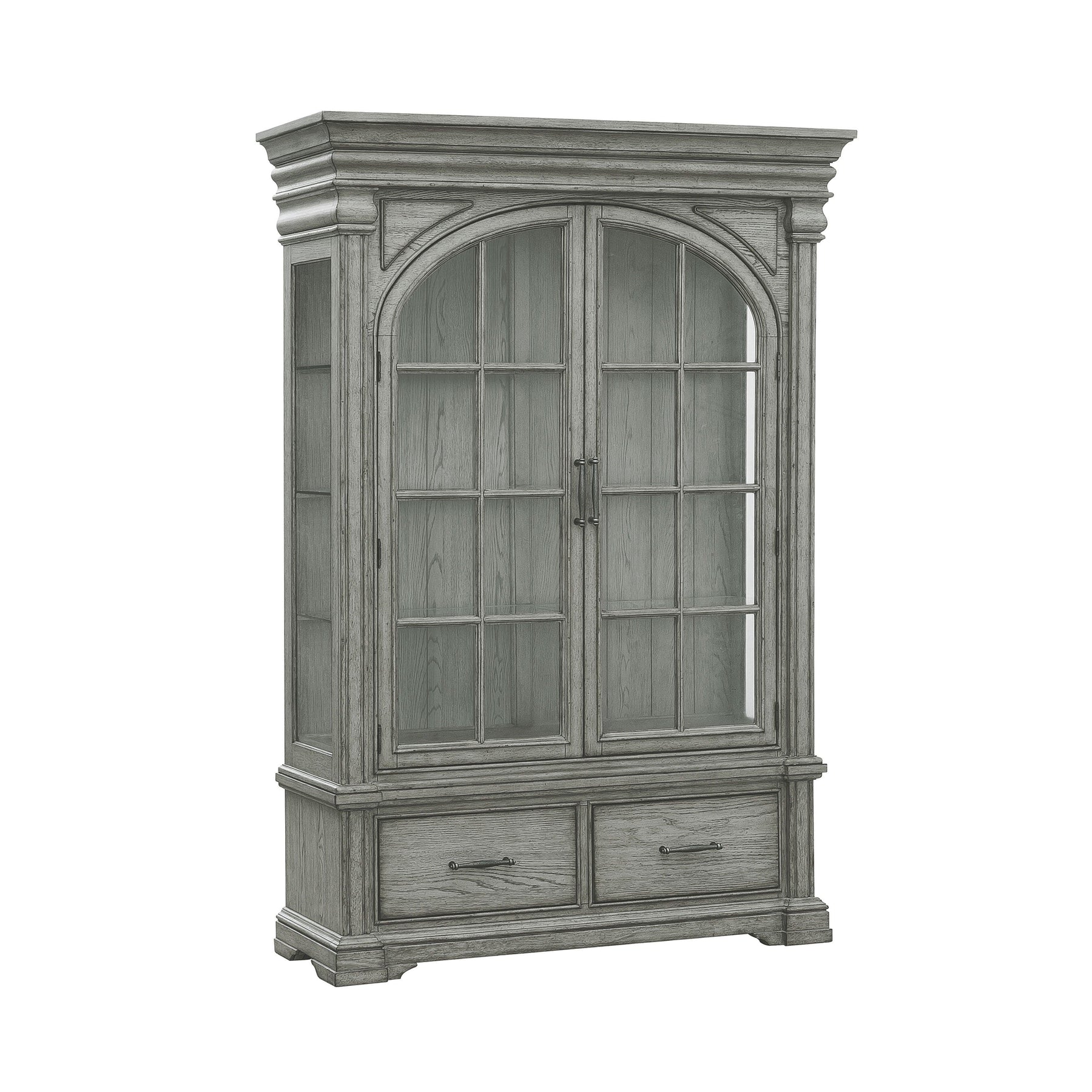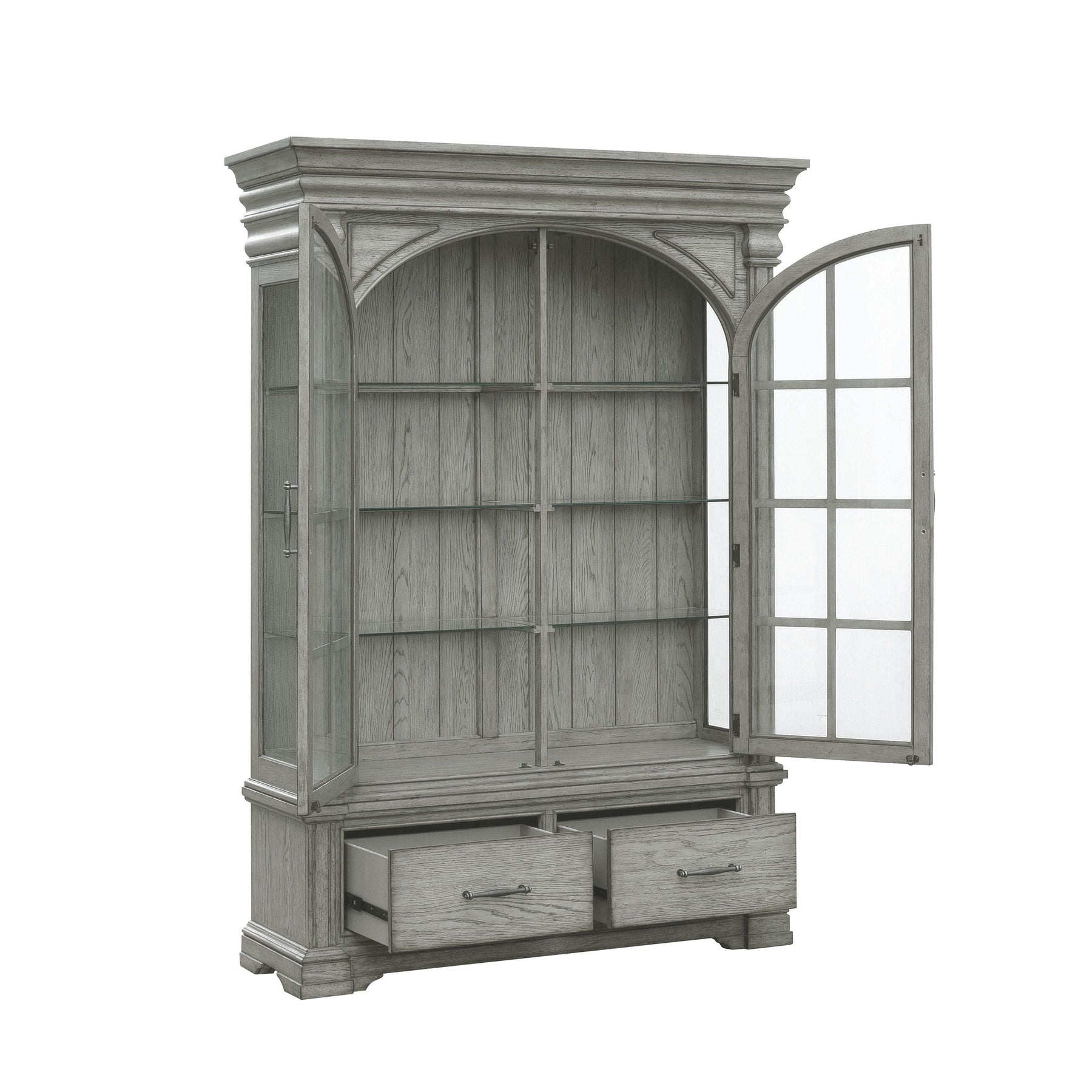 The perfect focal point for any dining area, the buff gray china deck will bring an architectural presence with its beautiful arched "window" effect on the doors, side pilasters and heavy crown molding. Store and display serving items and family treasures on the 3 glass shelves. Interior lighting highlights the display and adds a soft ambient light to the area. For the complete china use with matching base, sold separately.