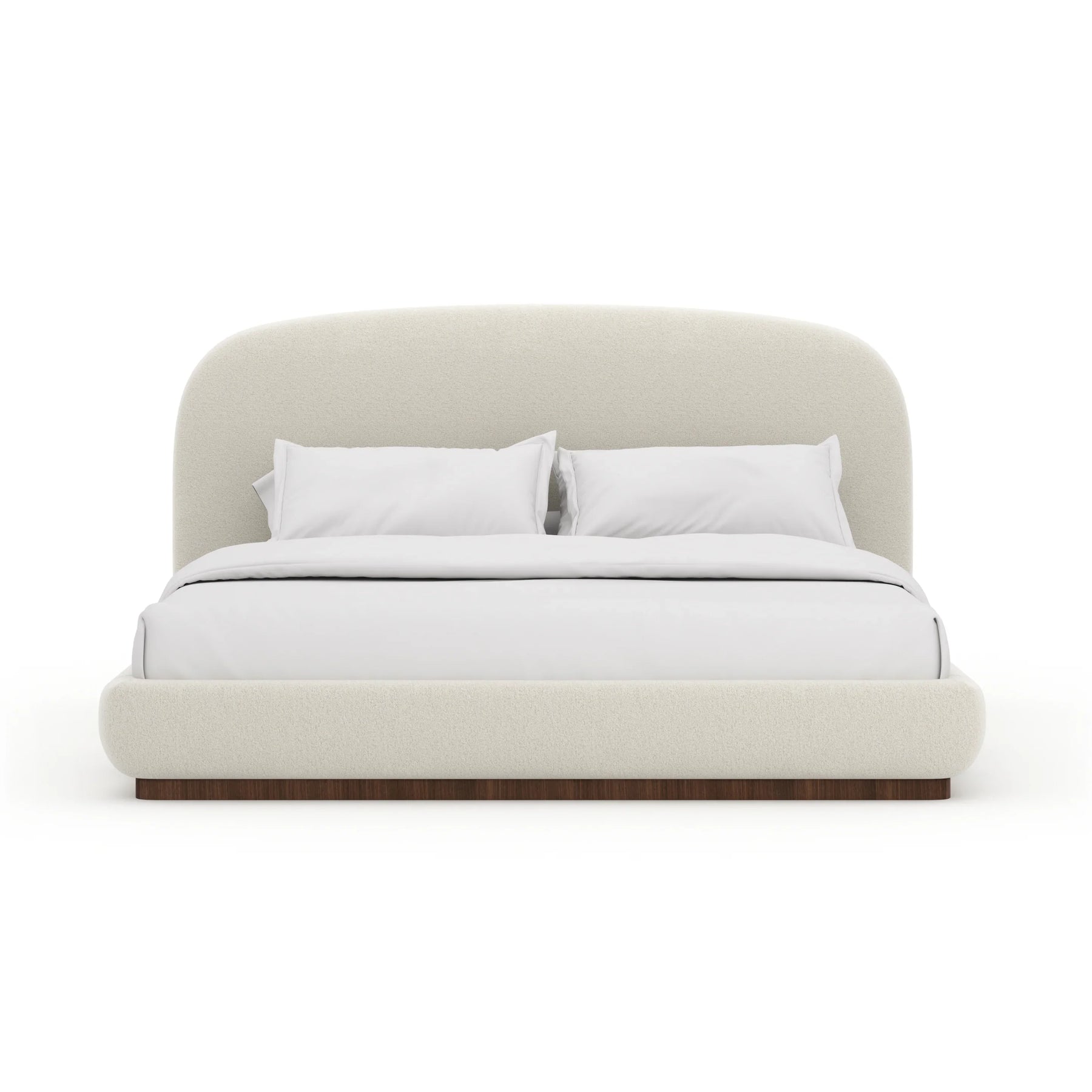 A good night’s sleep is ahead when you climb into the sumptuousness of Botero’s unique design. The exaggeratedly oversized, ultra-plush, fully-upholstered headboard generously curves all the way to the floor. With padded, upholstered side rails and footboard, the lavish softness of this bed is enhanced by the Ivory mélange performance bouclé fabric that is offset by a base in Retro Walnut.