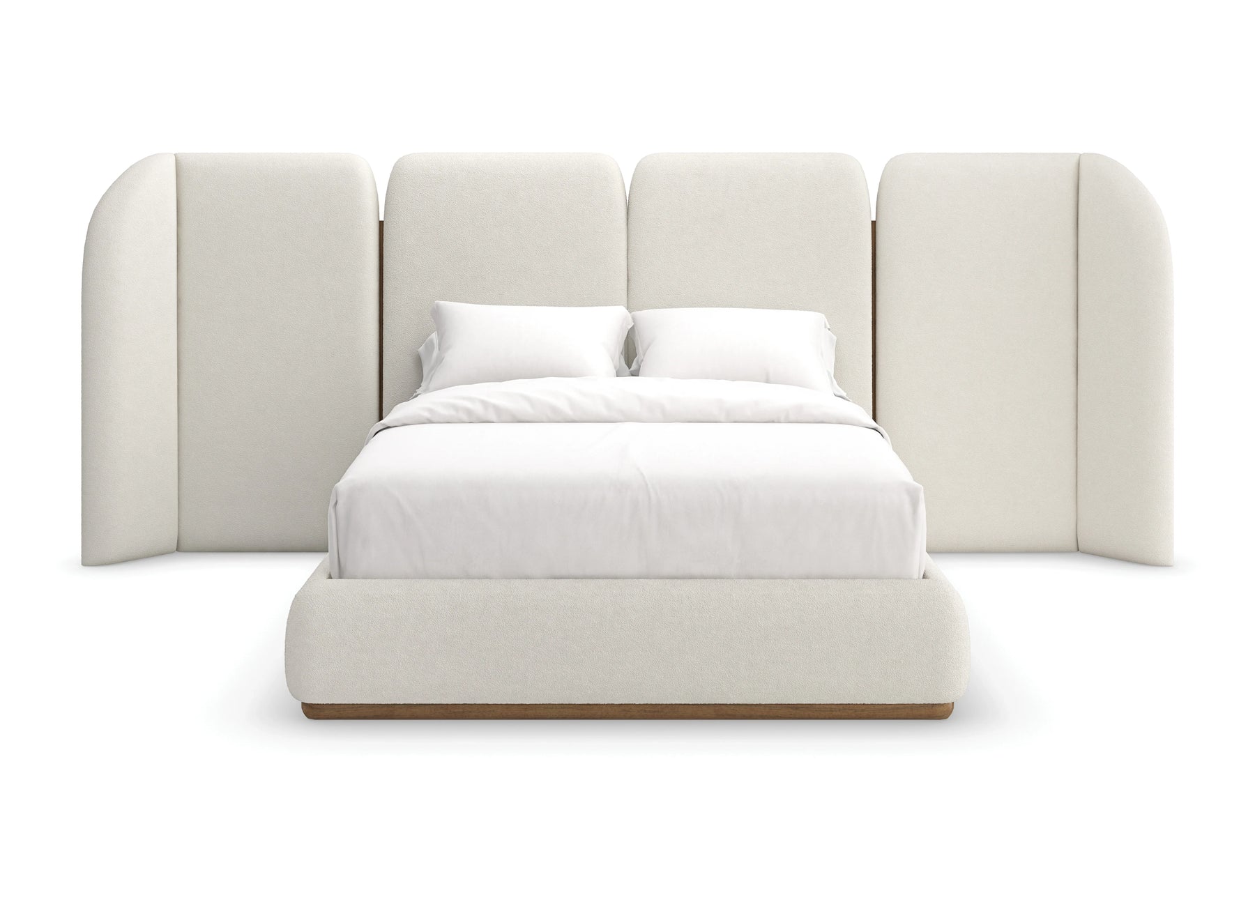 With its soothing symmetry and softly rounded edges, this fully upholstered bed recalls the whitewashed architecture found along the Amalfi coast. Meticulously tailored in a lush, deep-pile microfiber, with Toasted Pecan accents to complement its simple yet elegant aesthetic. Extend the view and further indulge the senses with sculptural wing panels, available for purchase separately.