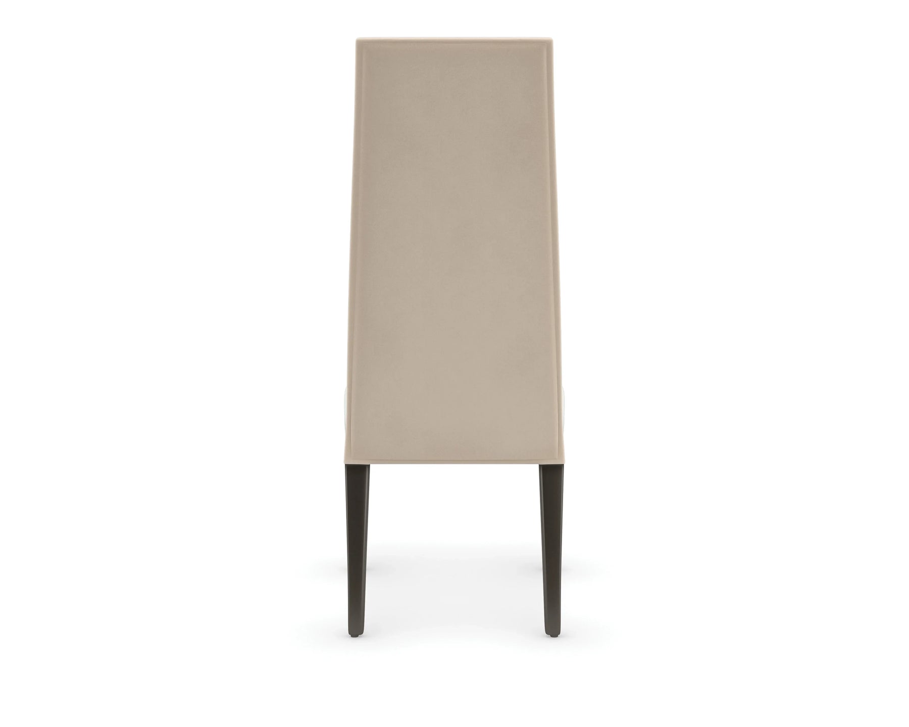 A high-fashion style designed for entertaining, this side dining chair lends a commanding presence. Angular lines and a tall, tapered back are softened by a cream-colored performance velvet that elevates comfort and lets you host worry free. Playing up its exaggerated height: Brushed Gold metal ferrules and lacquered legs in a richly contrasting, Chocolate Truffle finish, for a classic design with cosmopolitan flair.