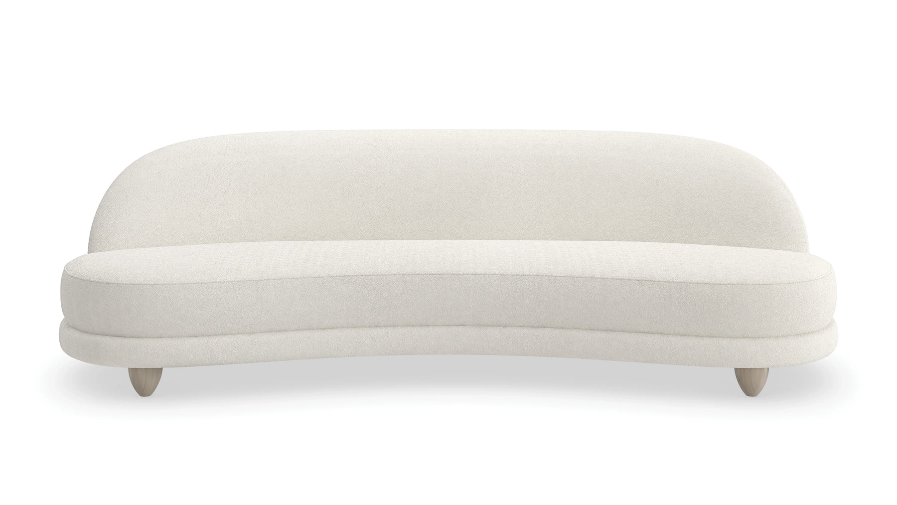 With a sleek, serpentine shape, this modern sofa introduces a fluid, biomorphic form to living interiors. Dressed in a tactile, two-tone boucle, its curvaceous silhouette invites conversation and luxe comfort. Softly rounded wood feet in a sand-colored finish add to its organic yet elegant style aesthetic. 90-inch Tulum sofa also available.