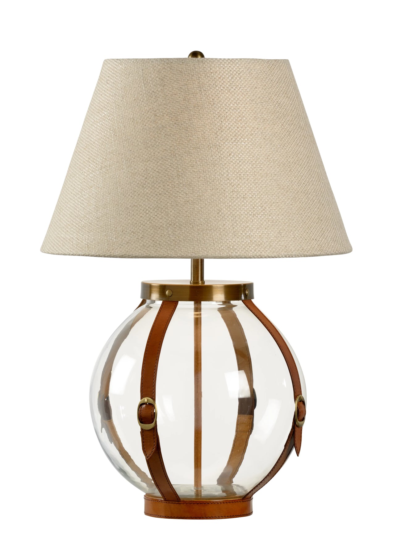 Clear glass sphere with chestnut leather straps and with coffee bronze brass parts
