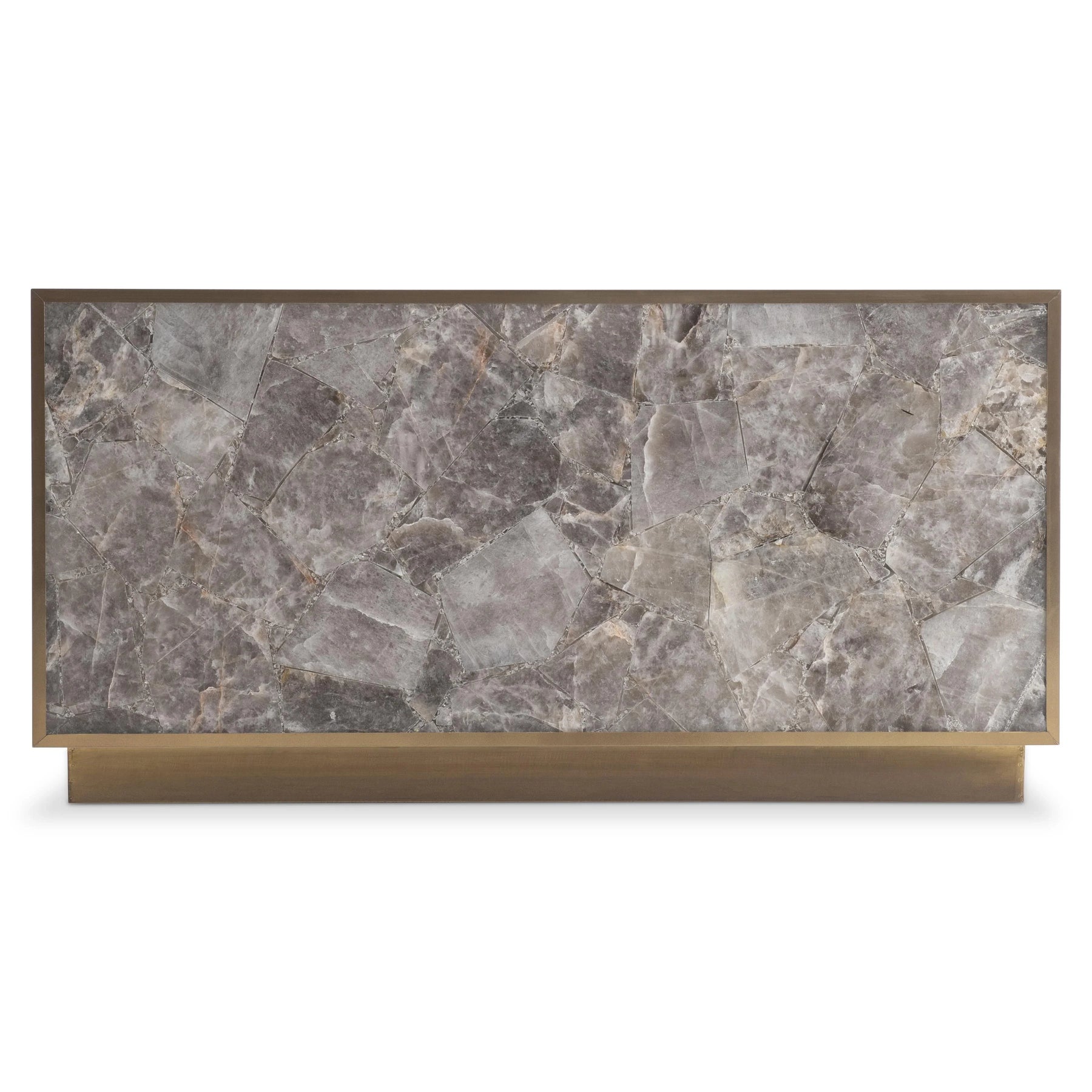 Smoky Quartz, Framed In Brass In Aged Brass Finish, Heavy Duty Casters