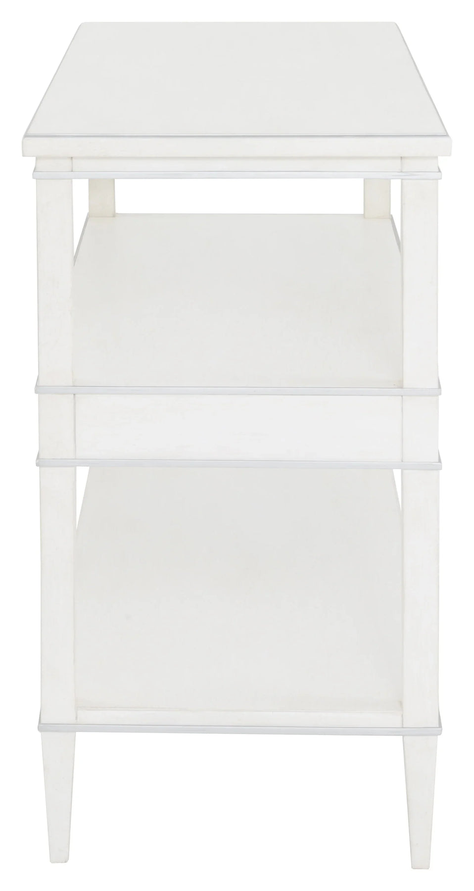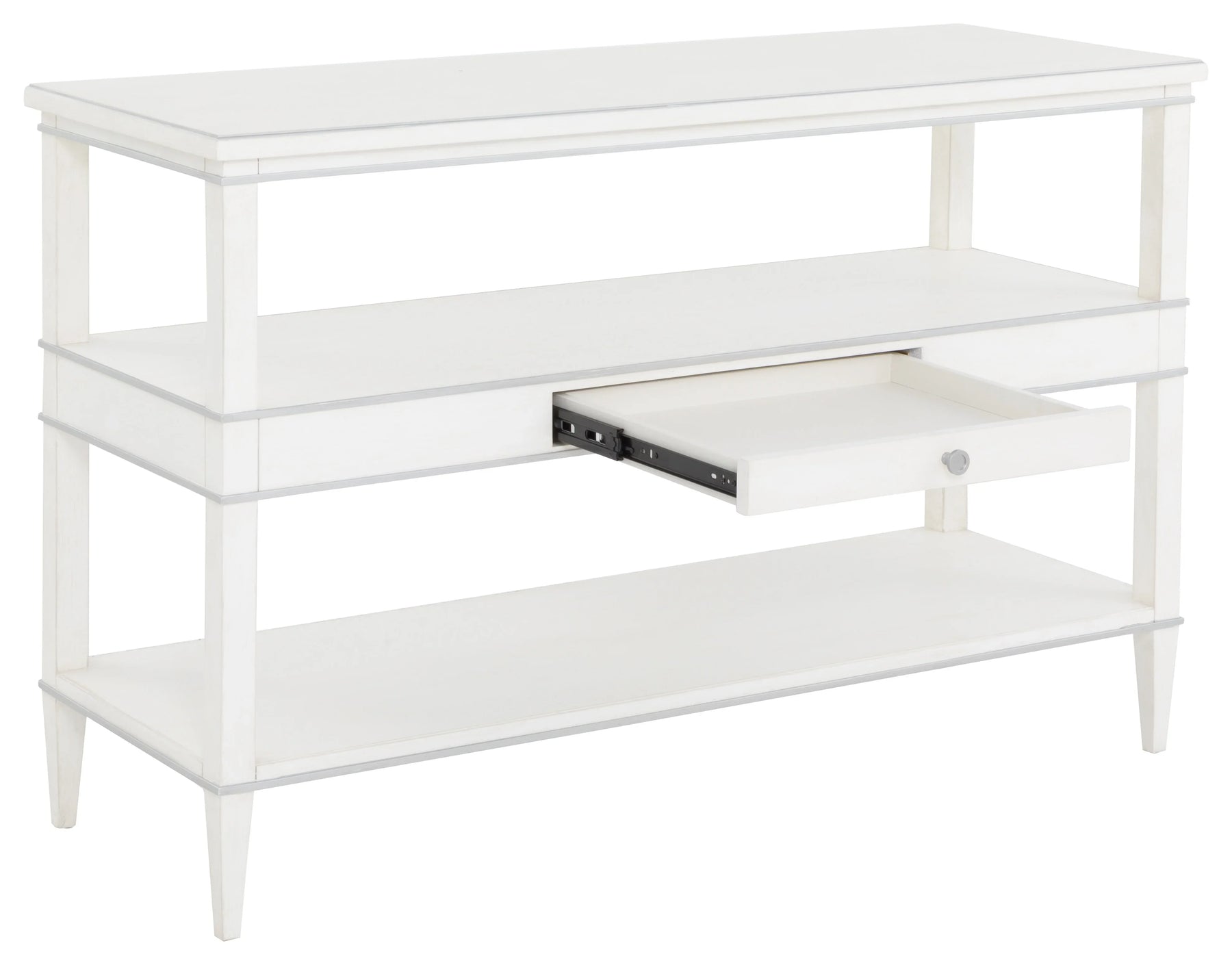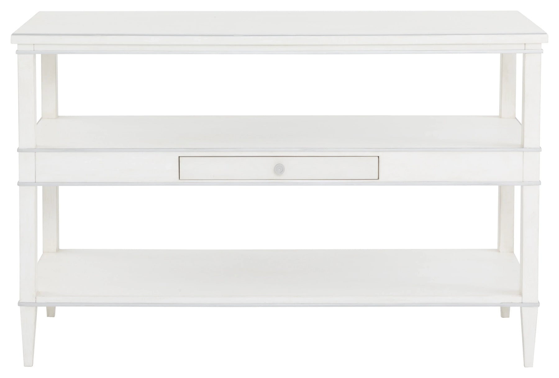 Our Camille Collection merges traditional design elements with a fresh perspective to create a classic and timeless look for today?s modern living. Crafted from rubberwood solids, Camille's classic silhouette is draped in a Linen finish and trimmed in Antique Gold metallic striping. This versatile and storage-friendly collection includes a 24" square and 24" round end tables with pull out shelves and drawer, cocktail table with one drawer, and a console table with one drawer. Camille is stocked Linen or available in 40+ additional custom finishes via our Monogram Program.