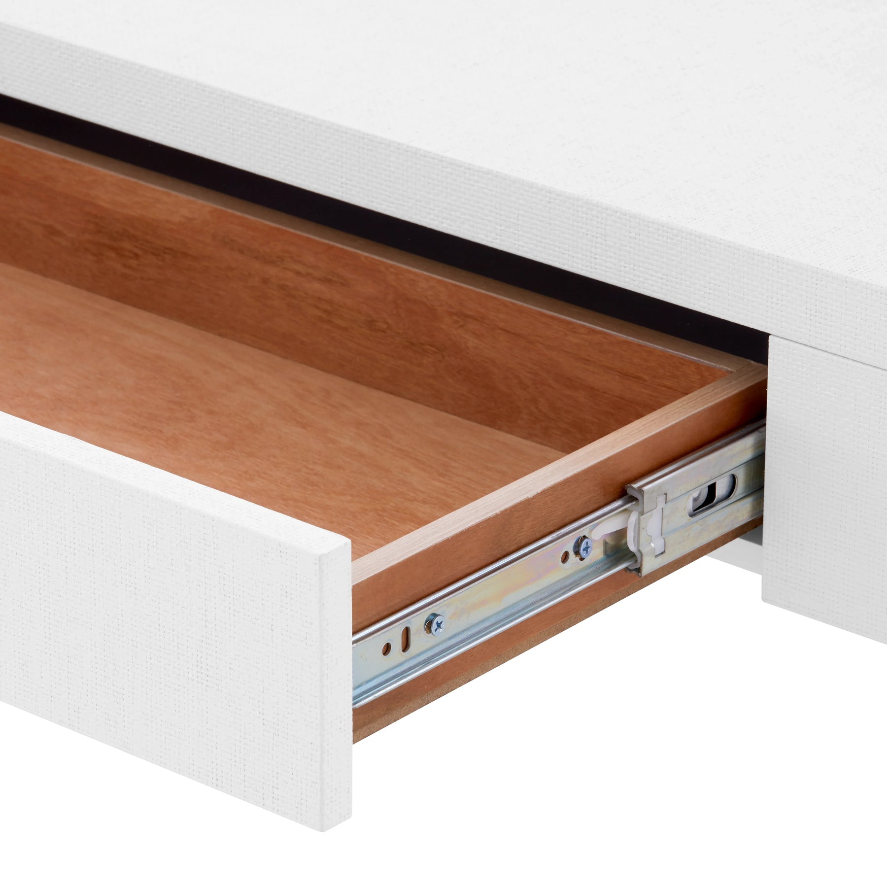 The Morgan Large Console is the ideal finishing touch in an entryway, corridor, or sitting room. Its structured and streamlined silhouette is imbued with a sense of lightness, while lengthened proportions give it a bold impression fit for modernist tastes. A sleek, inset drawer provides subtle hideaway storage, opening on soft-closing glides to reveal rich stained interiors. The Morgan certainly embraces minimalism with its shape and smooth white finish, making it a modern and uniquely versatile piece fit for almost any decor scheme. Pair it with a low bench and dress it up with a vase, pair of lamps, or any of your favorite decorative accents.