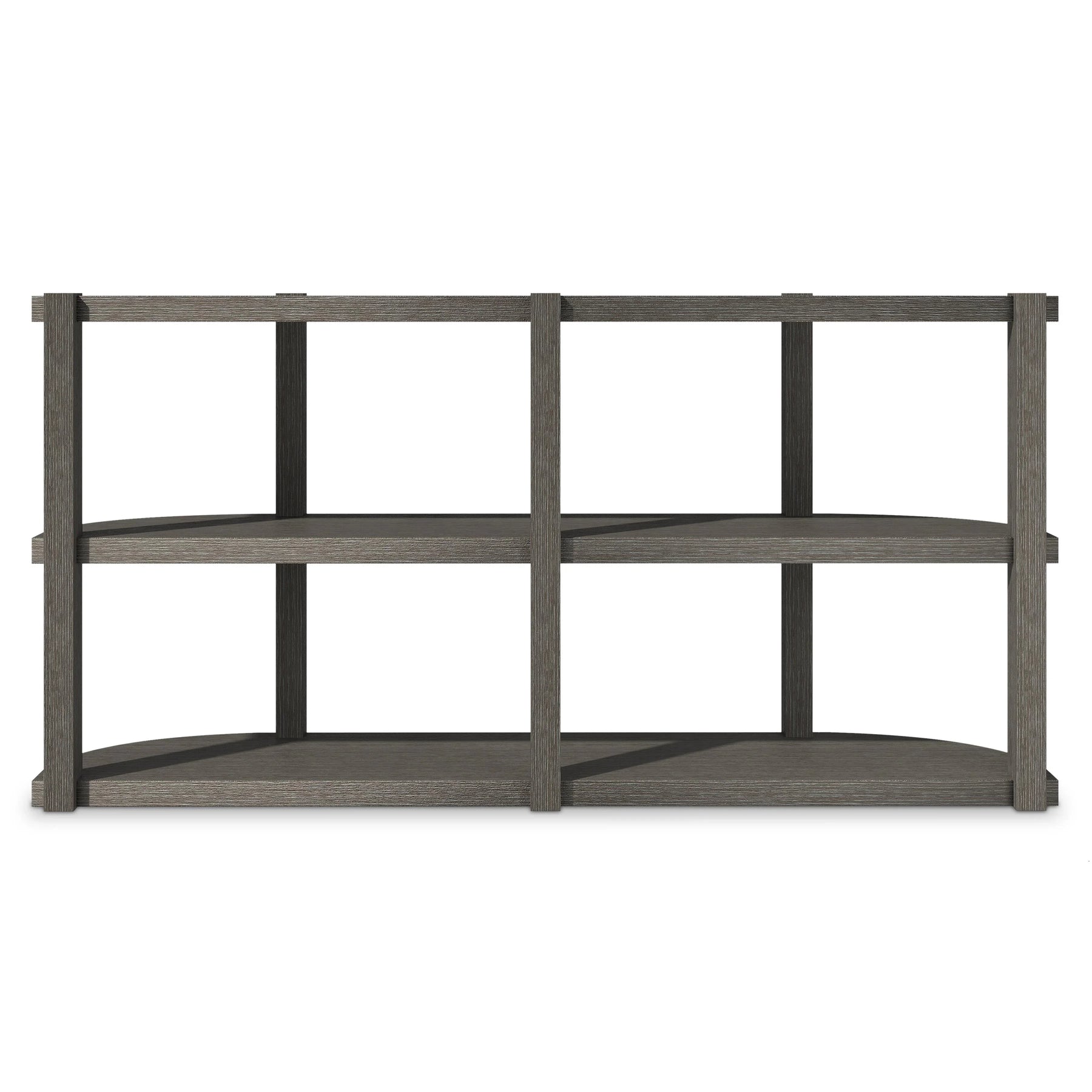 Wood Console Table And Two Open Shelves In Porcini Finish. Adjustable Glides.