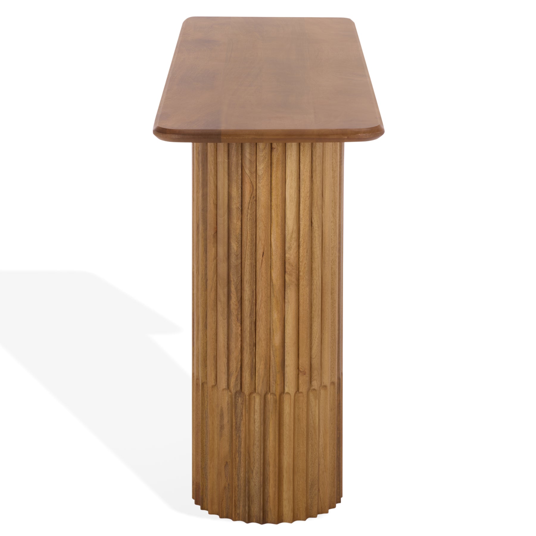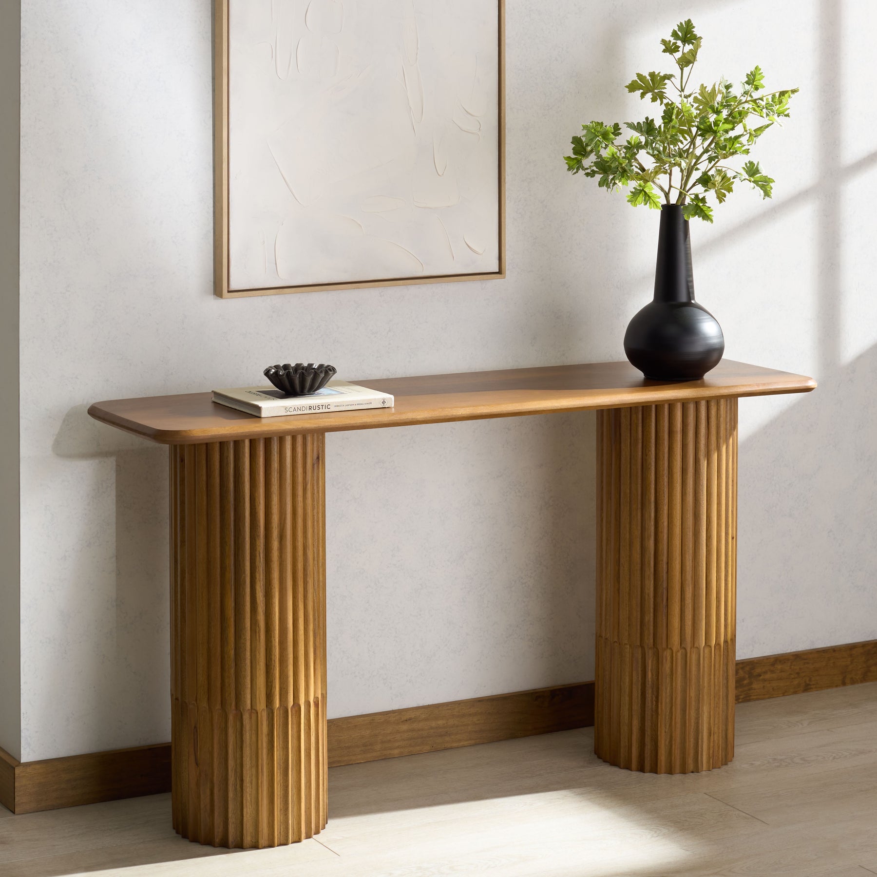 Introducing the Treyshawn Wood Top Console Table in a rich walnut hue, a perfect fusion of style and functionality for your living space. Crafted from wood, this console table adds warmth and charm to any room with its smooth surface and classic design, making it a versatile centerpiece. Its clean lines and elegant finish offer timeless appeal, seamlessly fitting with various interior styles.