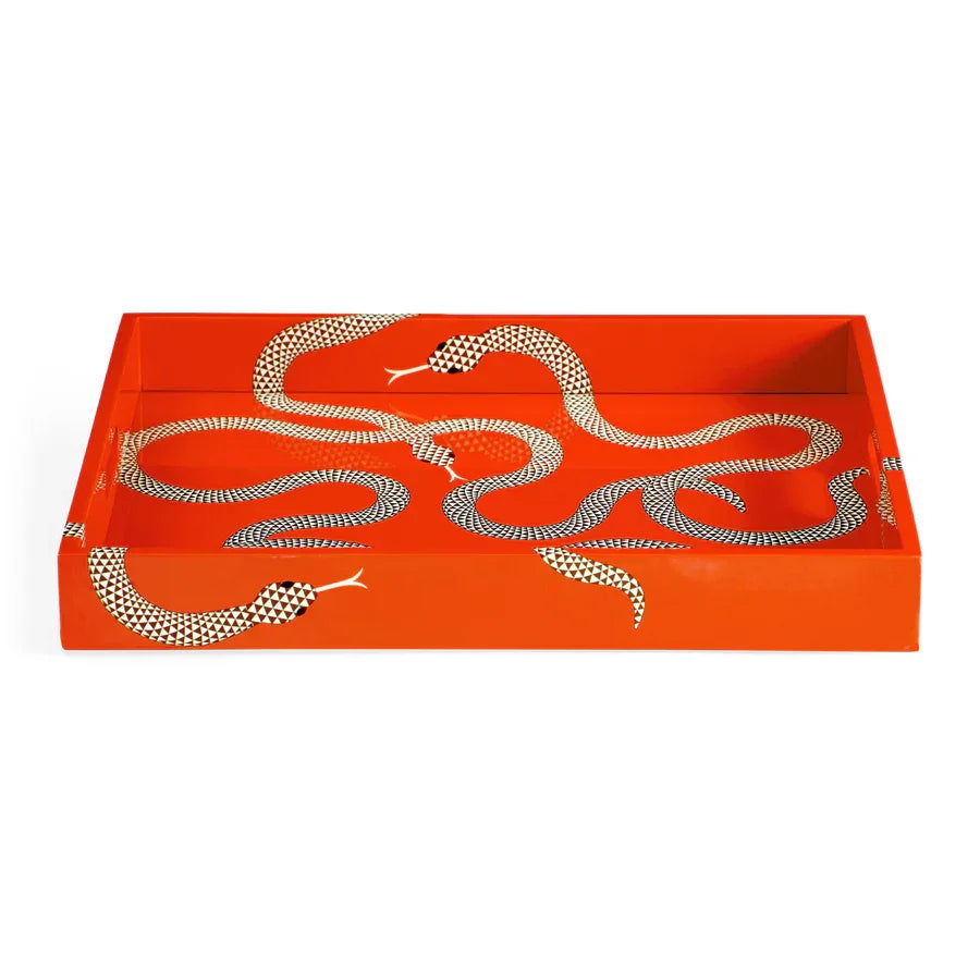 Featuring our slithering serpent on a hand-finished, high-gloss poppy orange backdrop—a striking addition to any counter, console, or cocktail table, it corrals your stuff without any fuss.