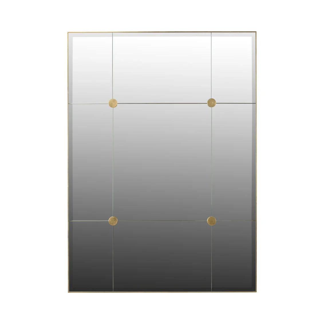 Inspired by antique French mirrors when large mirror panels were unavailable, the large Loire Mirror is an elegant piece decorated with four flat medallions. Available in silver or gold leaf. Designed by Jamie Merida.