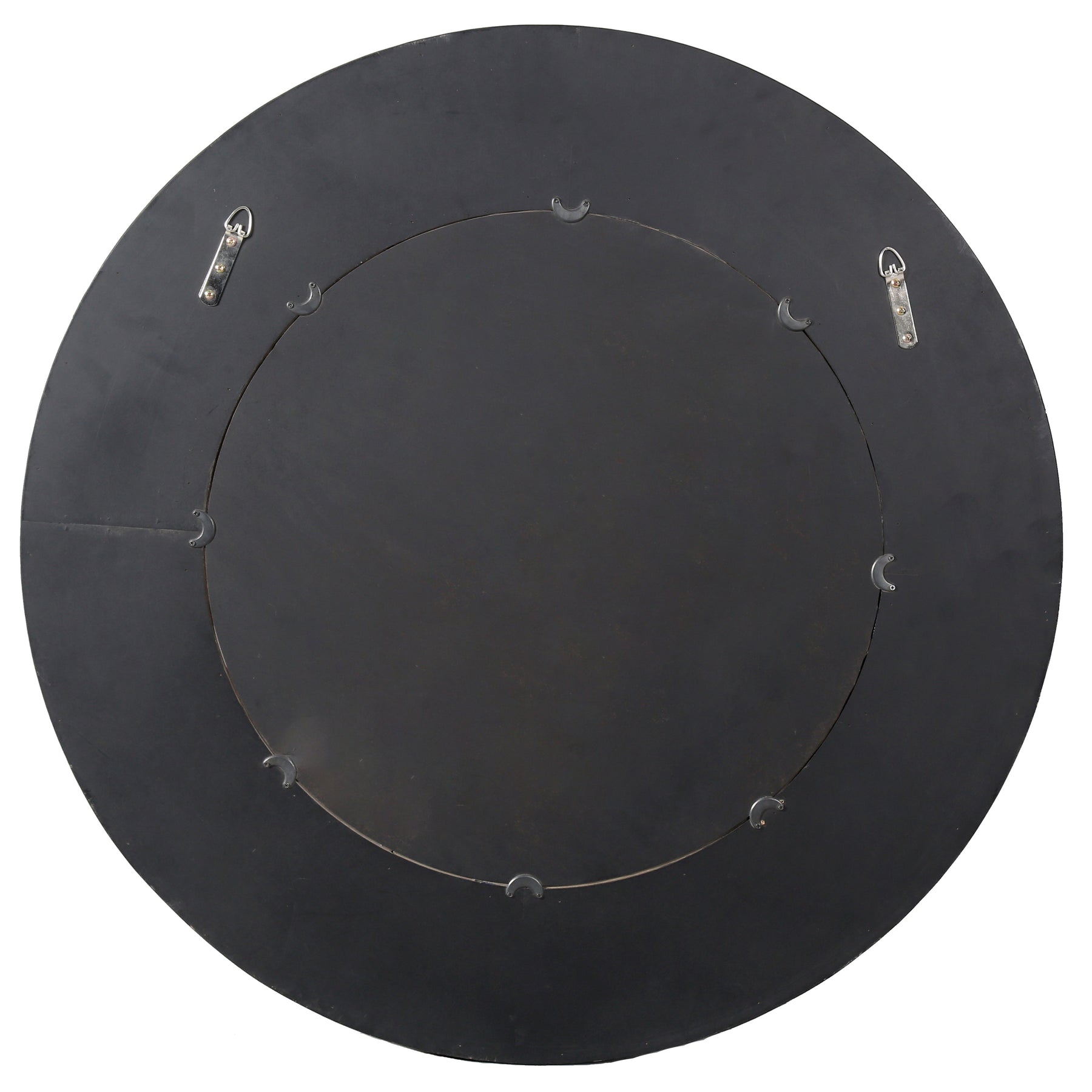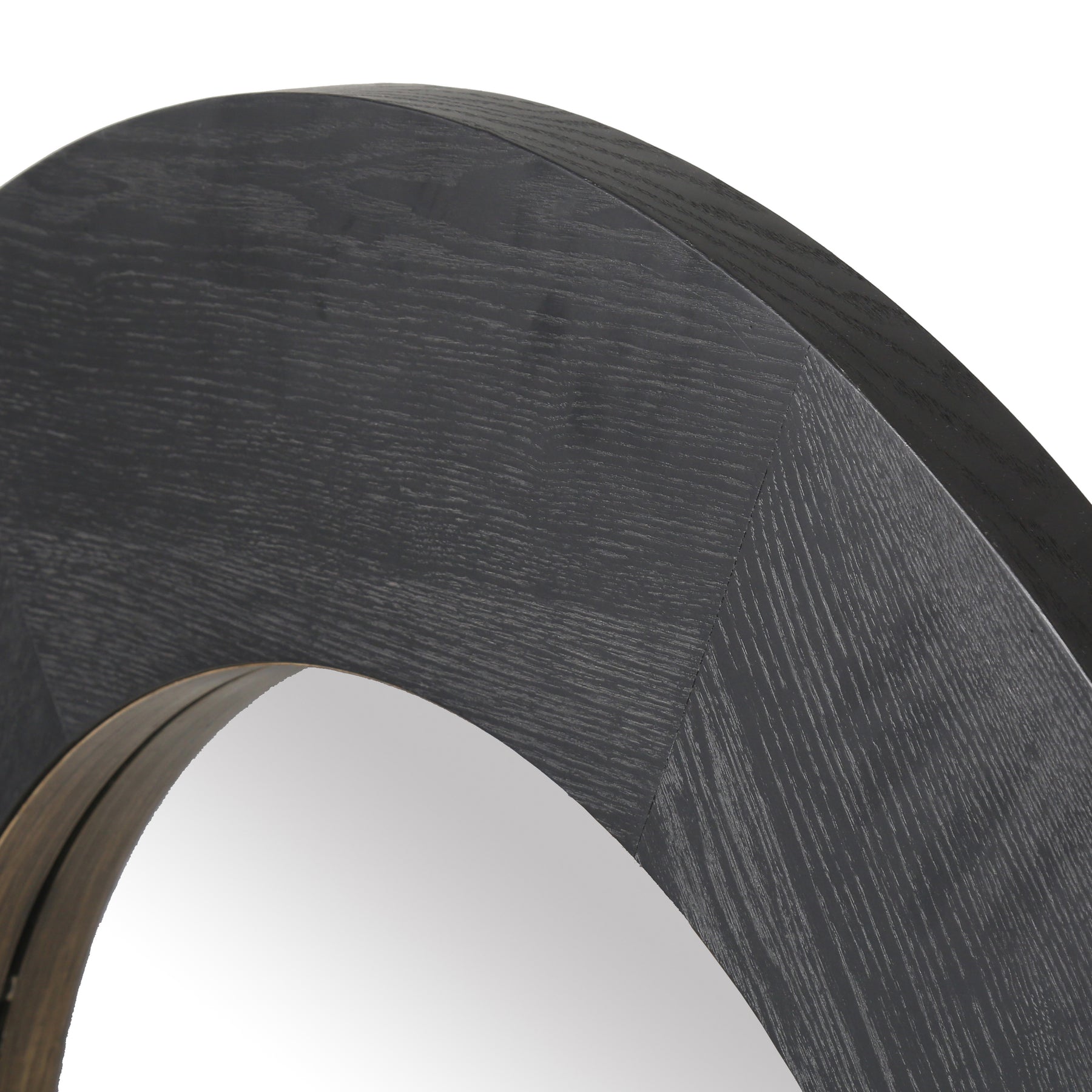 Introducing the Netta Round Wood Mirror in Black, a stunning blend of style and functionality. This mirror effortlessly enhances any space with its elegant design. The smooth black finish offers a modern touch while its circular shape adds a harmonious balance to your decor. Crafted with a seamless fusion of mirror, wood, and metal, it creates an eye-catching focal point for any room. Whether placed in an entryway, living room, or bedroom, it brings a dynamic visual element that captures attention.