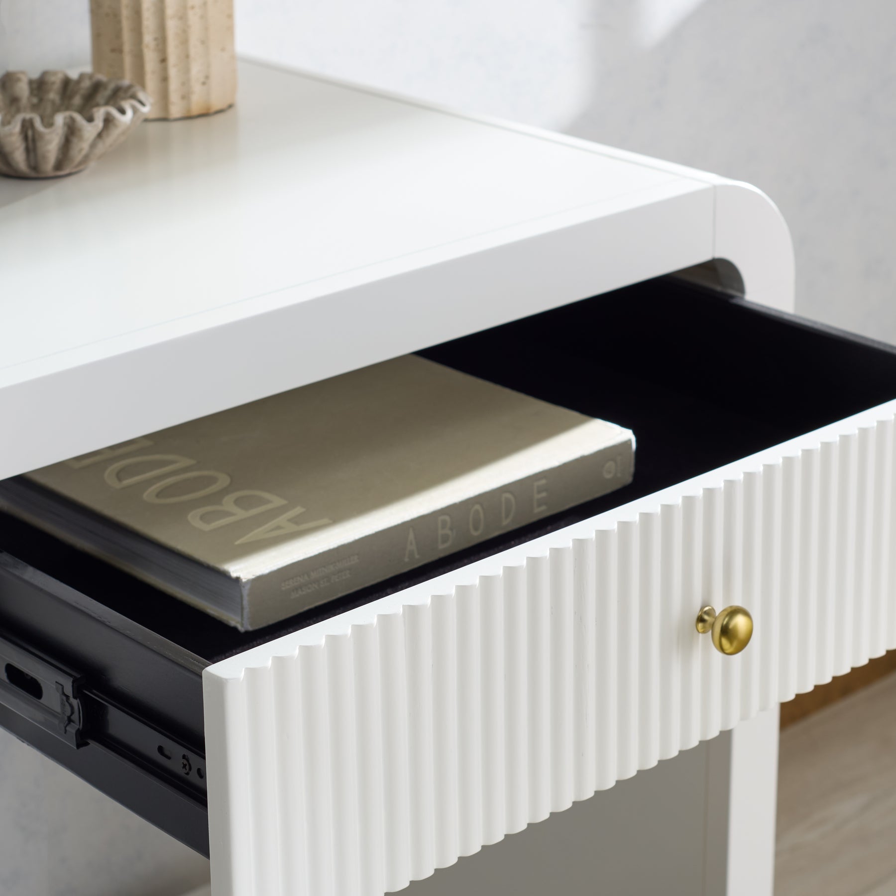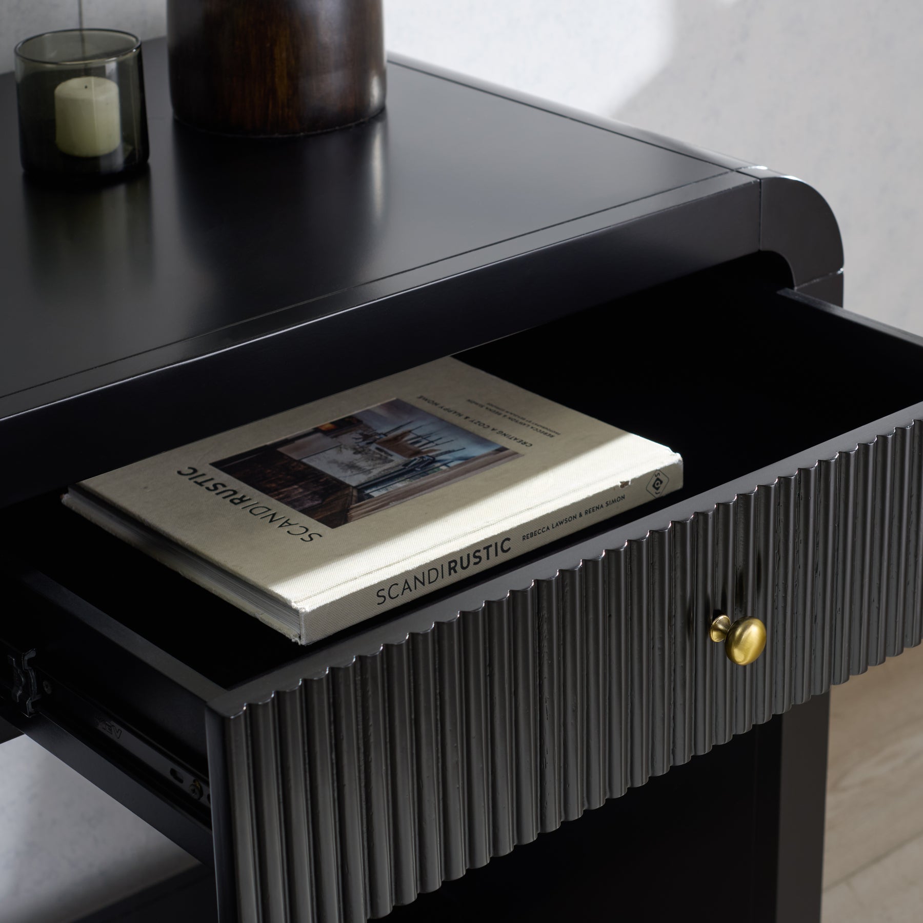 Elevate your workspace with the Liabella 2 Drawer Curved Desk in black. This desk combines elegance and functionality to fit seamlessly into any modern office or home study. Crafted from a sophisticated blend of wood and metal, it offers both style and strength that enhances the atmosphere of your room.