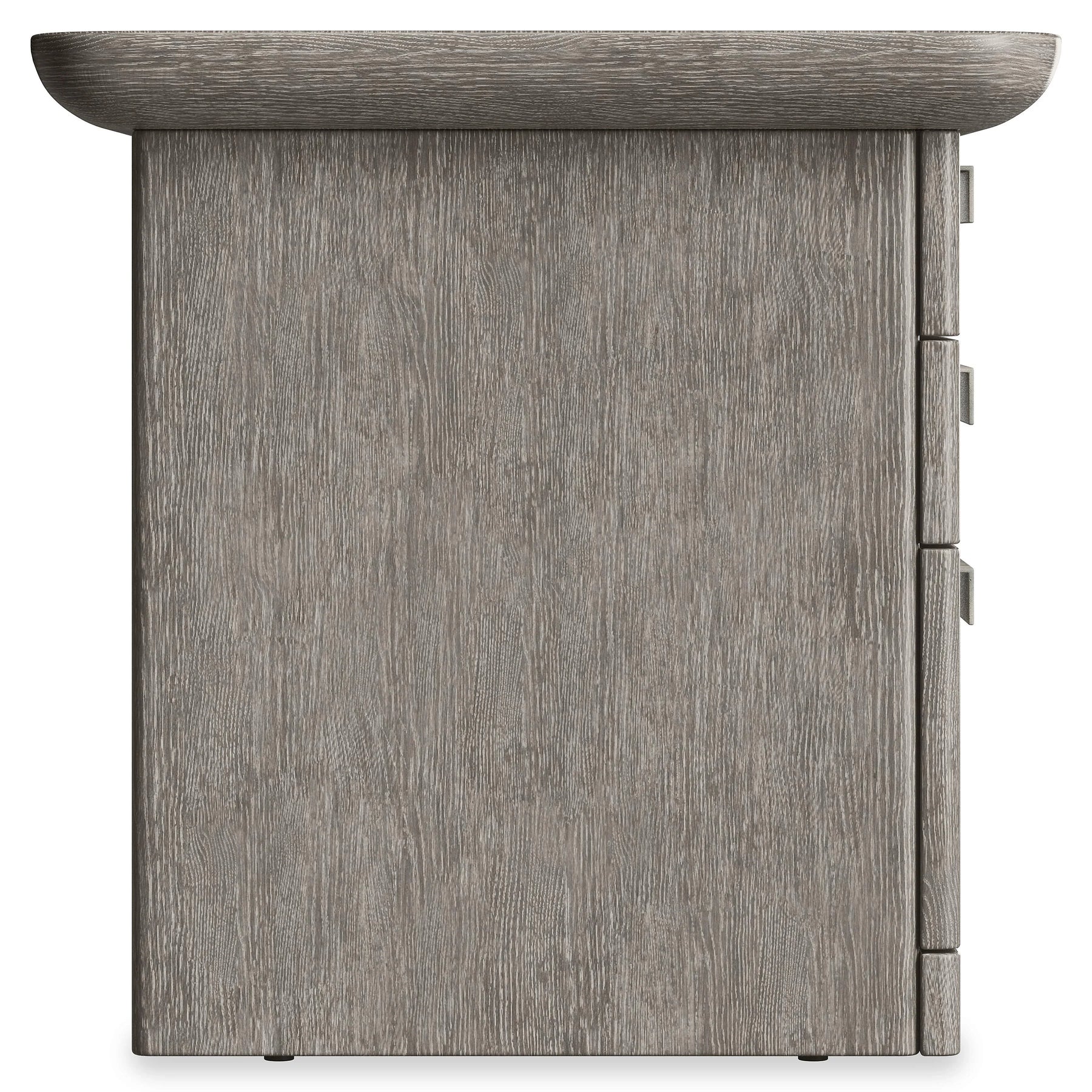 Offering An Elemental Balance Between Shape And Material, The Monolith Desk Uses Curves And Straight Lines To Craft A Modern Organic Design. Three Drawers On The Left Include Cast Aluminum Tab Pulls In Graphite Finish. A Panel On The Right Balances The Look And Supports The Top With Its Softly Rounded Corners. The Wood Is Wirebrushed And Finished In Puma.