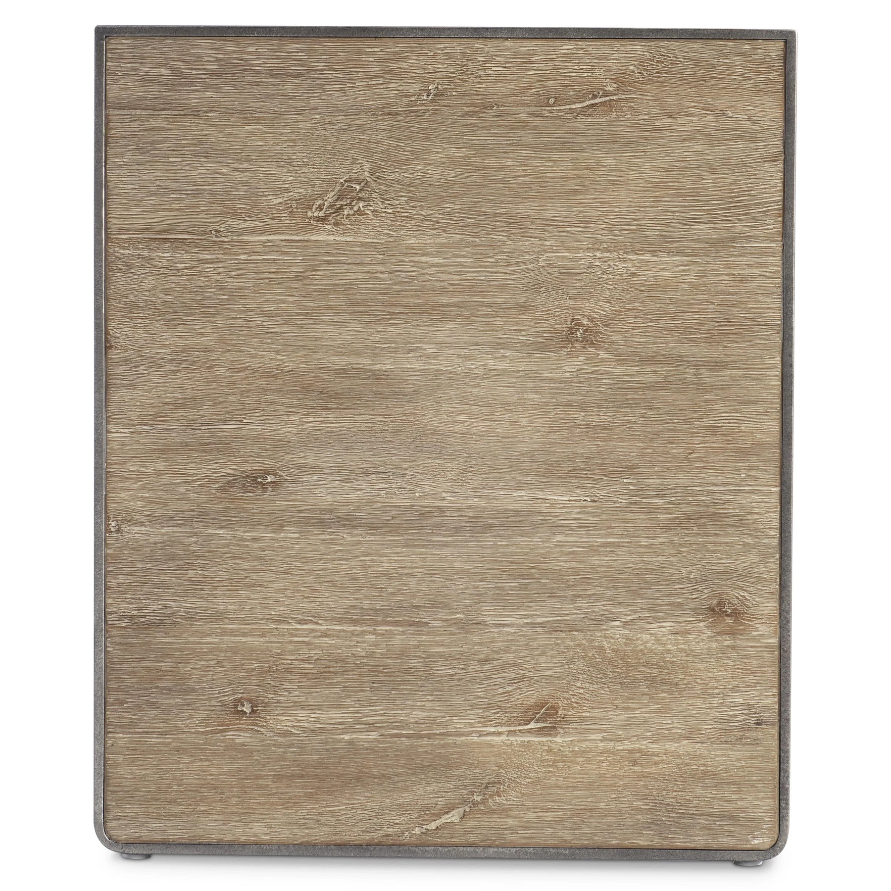Wire Brushed Oak Desk In Aurum Finish. One Pull-To-Open Drawer With Tab Pull In Barlow Finish. Applied Texture Steel Base In Barlow Finish. Adjustable Glides.