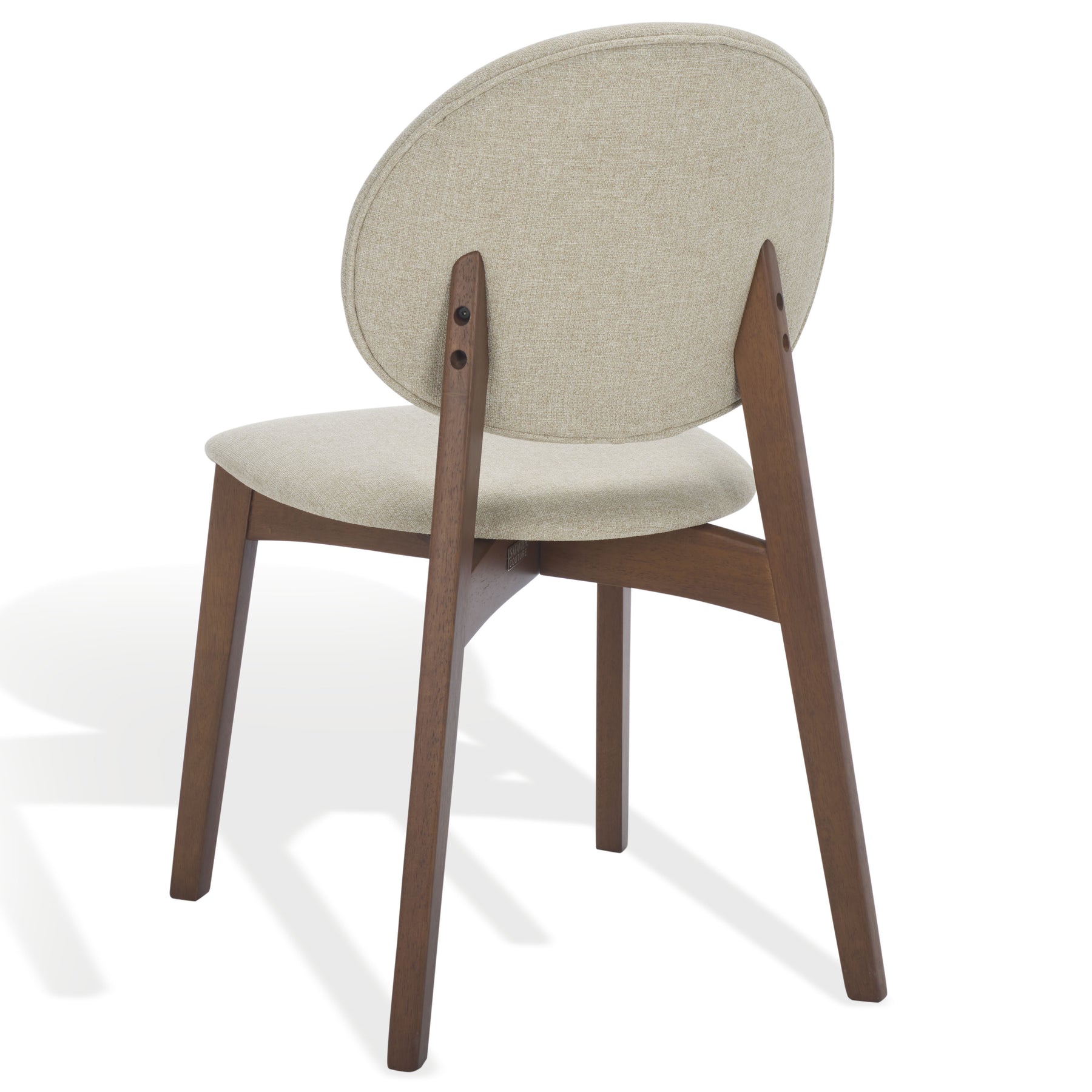 Introducing our Kayleen Wood and Linen Dining Chair - a captivating blend of beauty and function. It showcases a striking Walnut finish that showcases the natural allure of the Rubberwood frame, while the Beige linen fabric upholstered seat, made from 100% polyester, offers an alluring contrast, adding warmth to any dining setting. Our Kayleen Chair is a tribute to minimalism, offering a design that balances elegance and simplicity. The stark simplicity of the wooden frame accentuates the alluring textures of the linen fabric, creating a dining chair that is both stylish and comfortable. Its construction ensures that it will consistently provide a superior seating experience. The warm Walnut hue of the Rubberwood frame harmonizes beautifully with the inviting Beige shade of the linen seat. This chair is a testament to tasteful design, blending the natural charm of wood with the comforting touch of linen fabric. It is a remarkable addition to any dining room, infusing your space with a serene and timeless elegance. The Kayleen Dining Chair is more than just a seating option - it is a subtle statement piece. Whether it's a casual breakfast or a formal dinner, this dining chair complements your meals with an inviting ambience. Immerse into the comfortable linen seat while soaking in the visual appeal of the Rubberwood frame - thus making your daily dining a delightful experience.