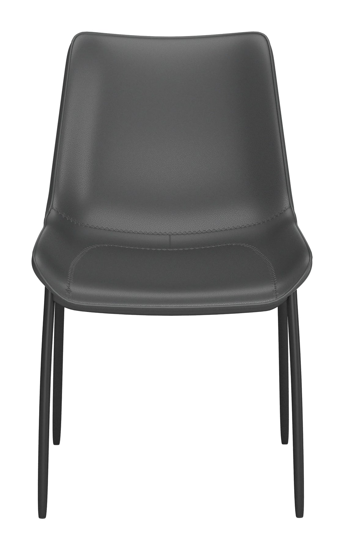 This armless contoured chair with its simple silhouette can dress up your dining space or keep things casual. Beautifully stitched design in black faux leather keeps an eye on the details. Comfortable enough to use as a desk chair. Matte black Stainless Steel legs are complete with protective plastic feet to keep your floors scratch-free.