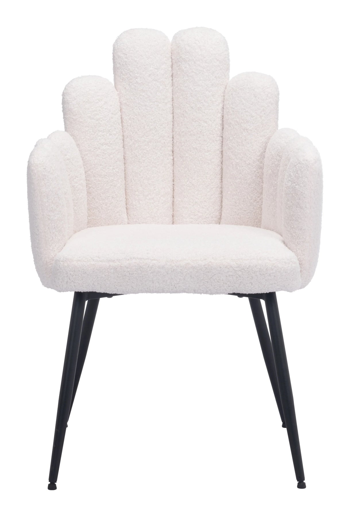 This dining chair has a powder coated steel frame with a polyester fabric-wrapped seat and back that works in any space, residential or hospitality, and gives a glam or boho chic look to every room.