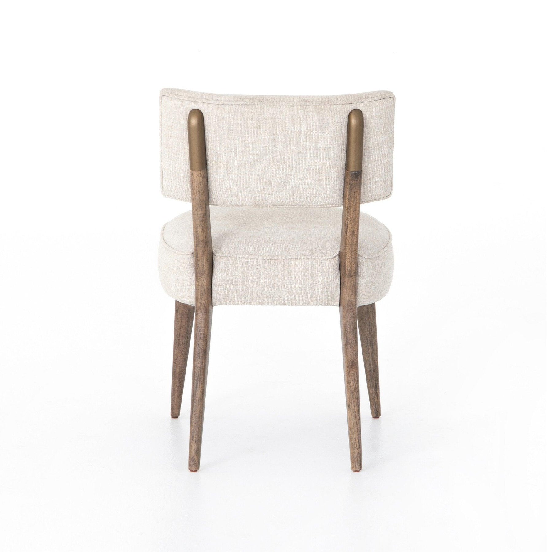 With cone-tapered parawood legs and ivory performance-grade seating of linen blend this crisp clean dining style is durably designed for dinners and parties alike.