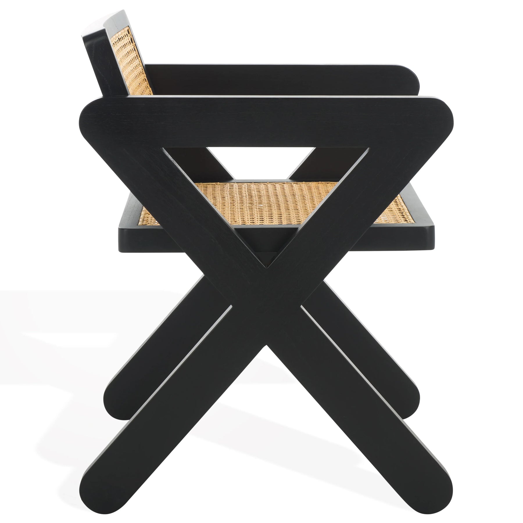 The Tyrrell Rattan Dining Chair Set of 2 features a chic blend of black and natural tones, crafted from durable Mindi wood with ergonomic design. Its exotic rattan weave adds style and comfort to your dining space, perfect for creating a memorable meal experience.