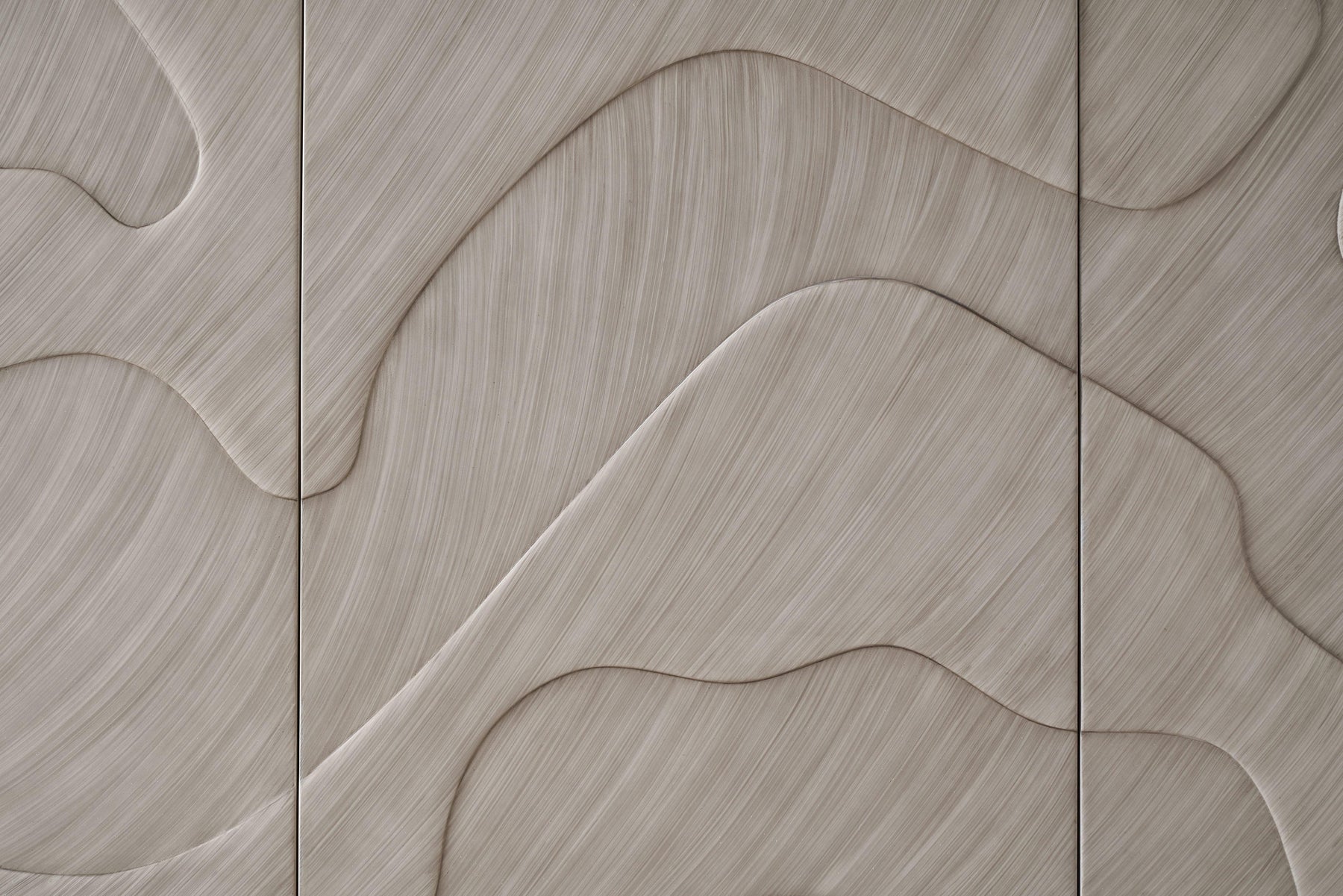 Graceful, organic forms weave through the Grotto Finish of the Onda Credenza. A subtle transition follows from the doors to the sleek lines and Amaretti finish of the case.