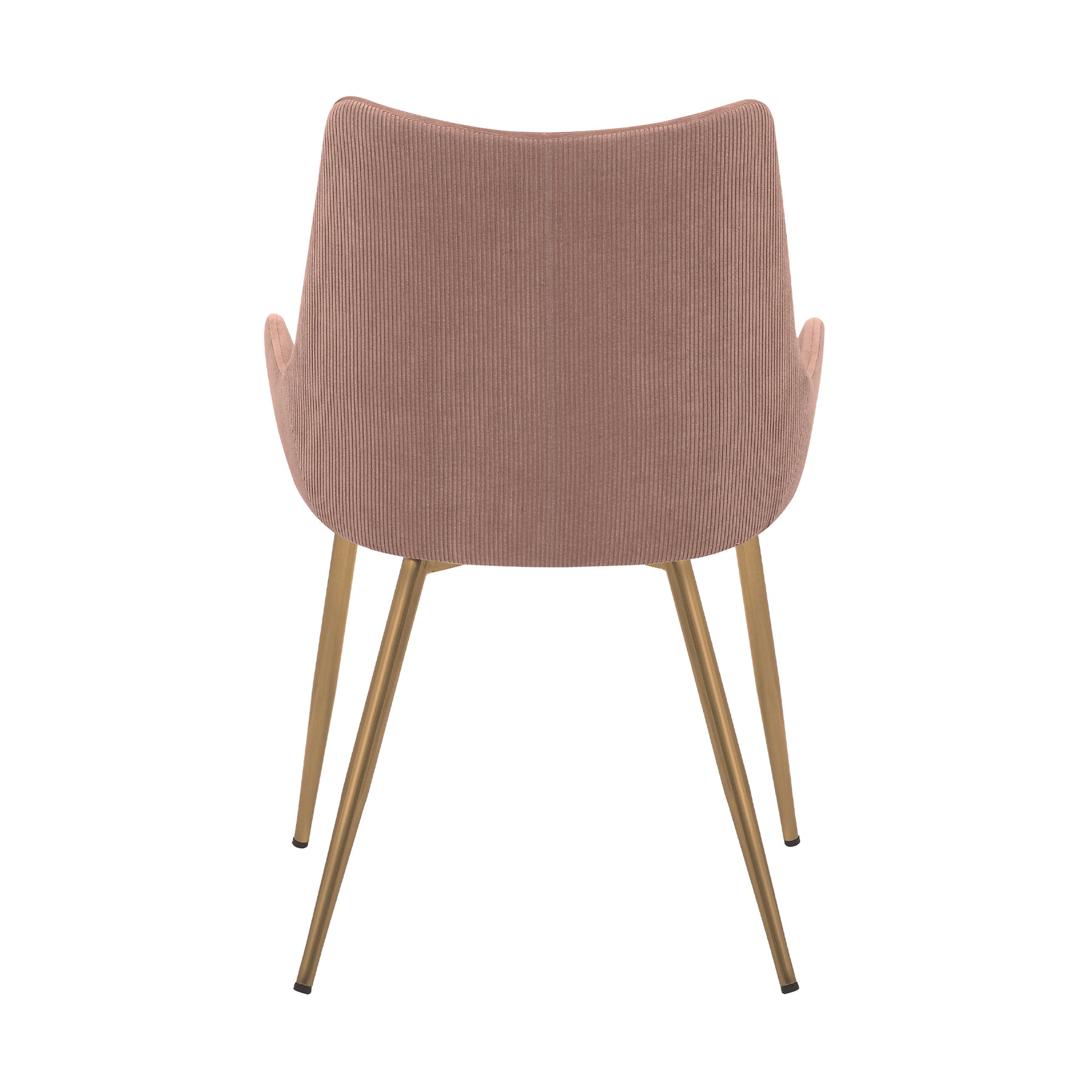 Add a touch of fashion forward glamour to your home with the Avery Pink Fabric Dining Room Chair with Gold Legs. The soft fabric upholstery covers a high-density foam cushion that provides comfort for long sitting periods but also features ergonomic properties to keep your back healthy and properly aligned. This chair can easily be used in your dining room or kitchen as a dining chair, your home office, bedroom, or living room as accent chairs. The gold metal legs give the chair a luxurious look and make this chair a truly stand out piece of furniture that will provide comfort and durability for many years to come! The Armen Living Avery Fabric Dining Room Chair with Gold Legs is available in your choice of Dark Gray, Pink, or Teal upholstery and each features gold metal legs.