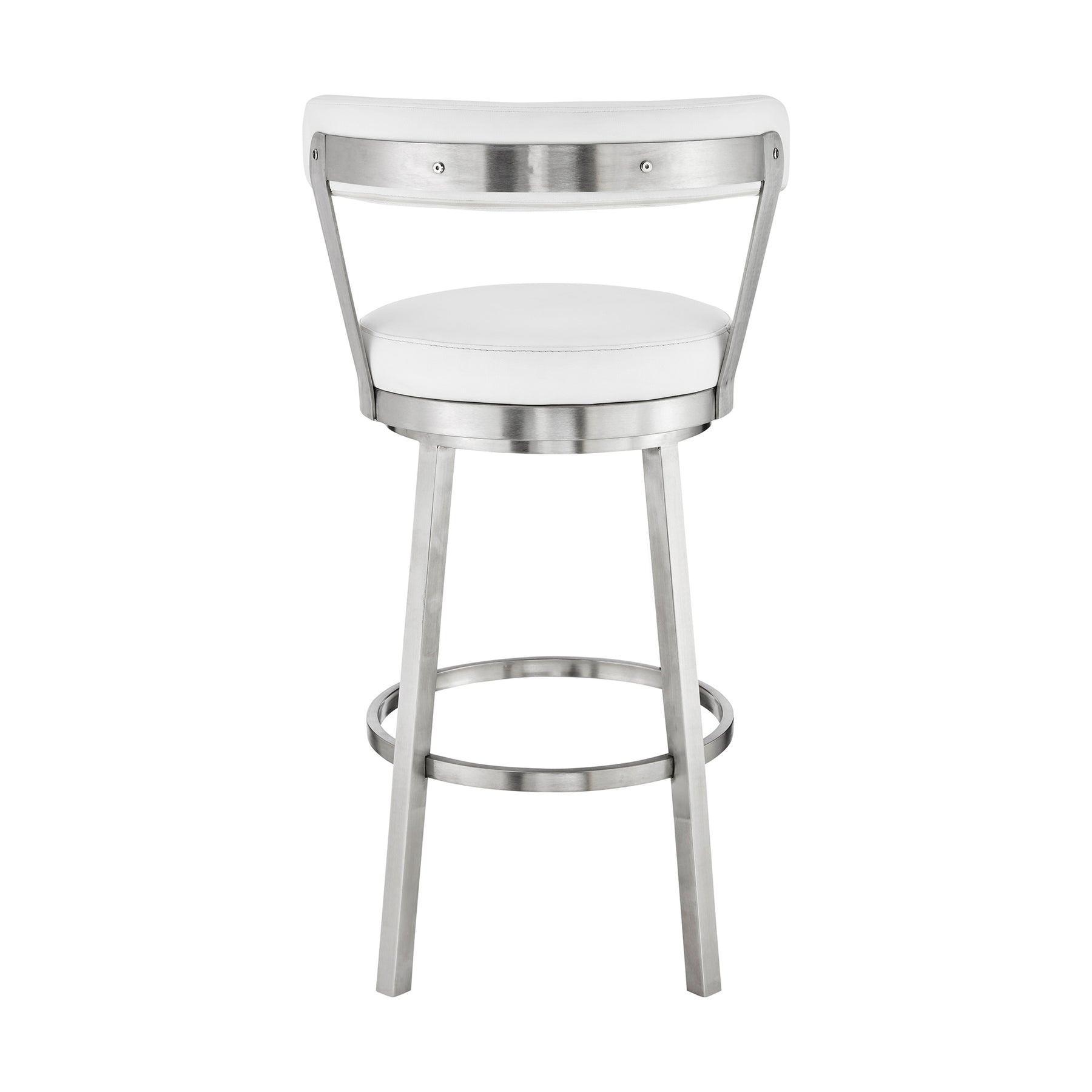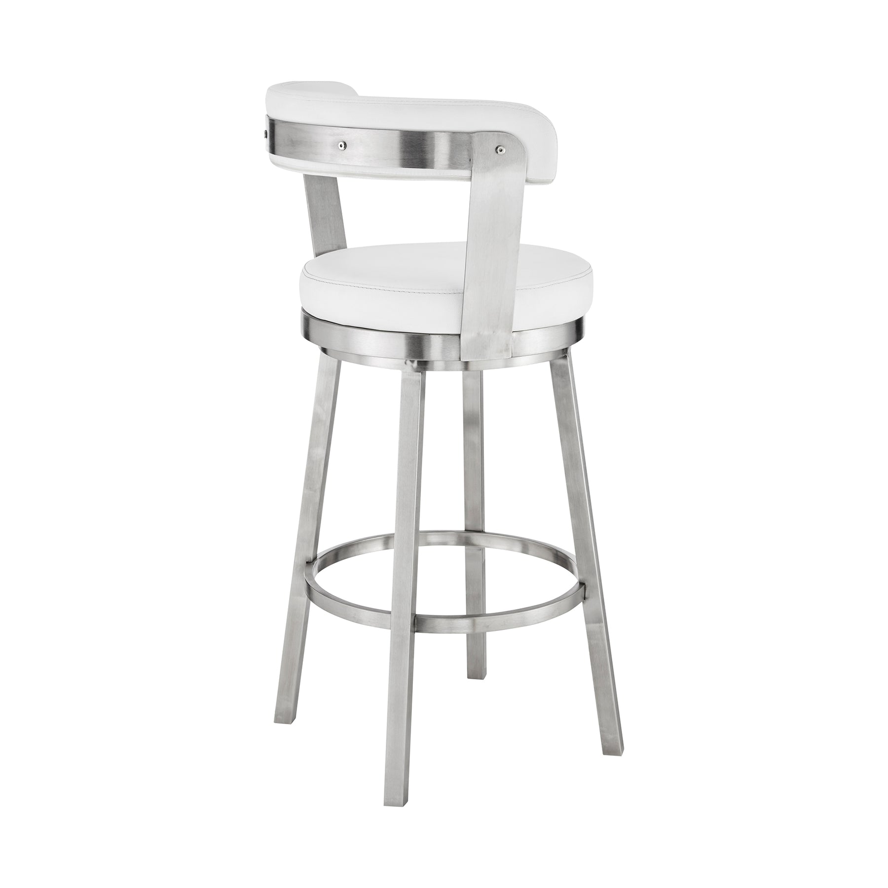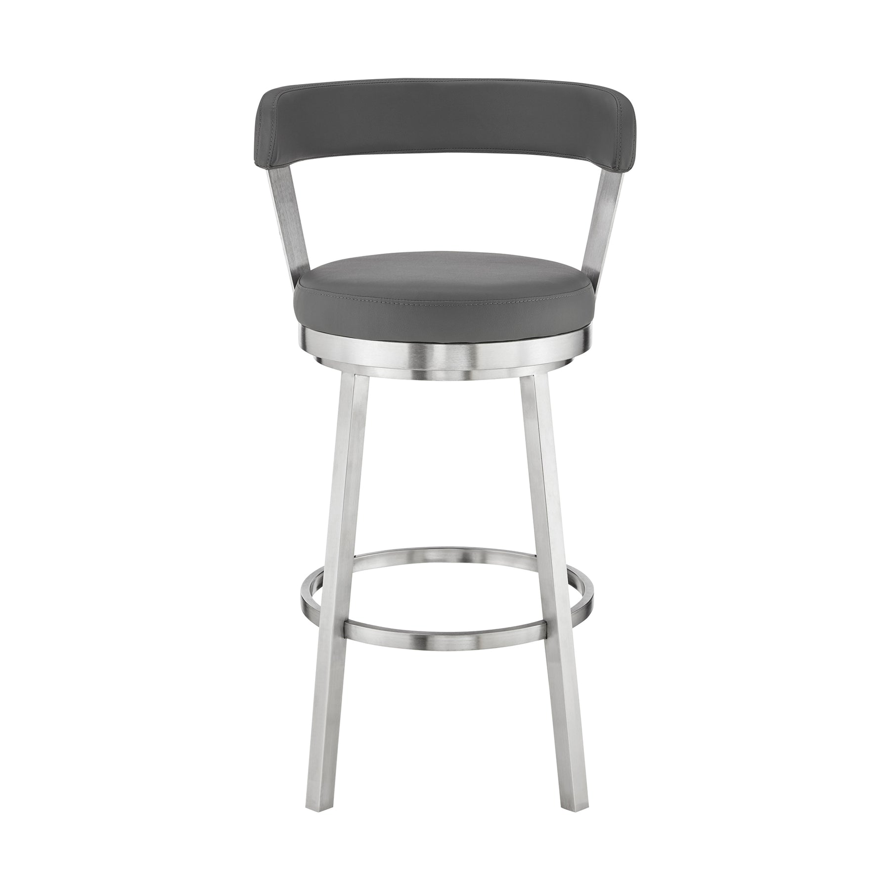 Look no further than the Bryant Swivel Bar Stool from Armen Living for your modern and contemporary stool needs! This innovative metal stool features sleek faux leather upholstery and strong metal accents. The plush and thick foam-padded cushion will allow you and your guests to relax in comfort for extended periods of time without issue. The Bryant was crafted with high-quality steel, able to withstand everyday wear and tear, giving you years of enjoyment. This versatile stool can easily blend into any modern kitchen or contemporary household. The Bryant bar stool comes in several colors and finishes color choice of black and gray faux leather with black finish, or black, gray, or white faux leather with brushed stainless-steel finish. All choices are also available in your choice of 26" counter height and 30" bar height.