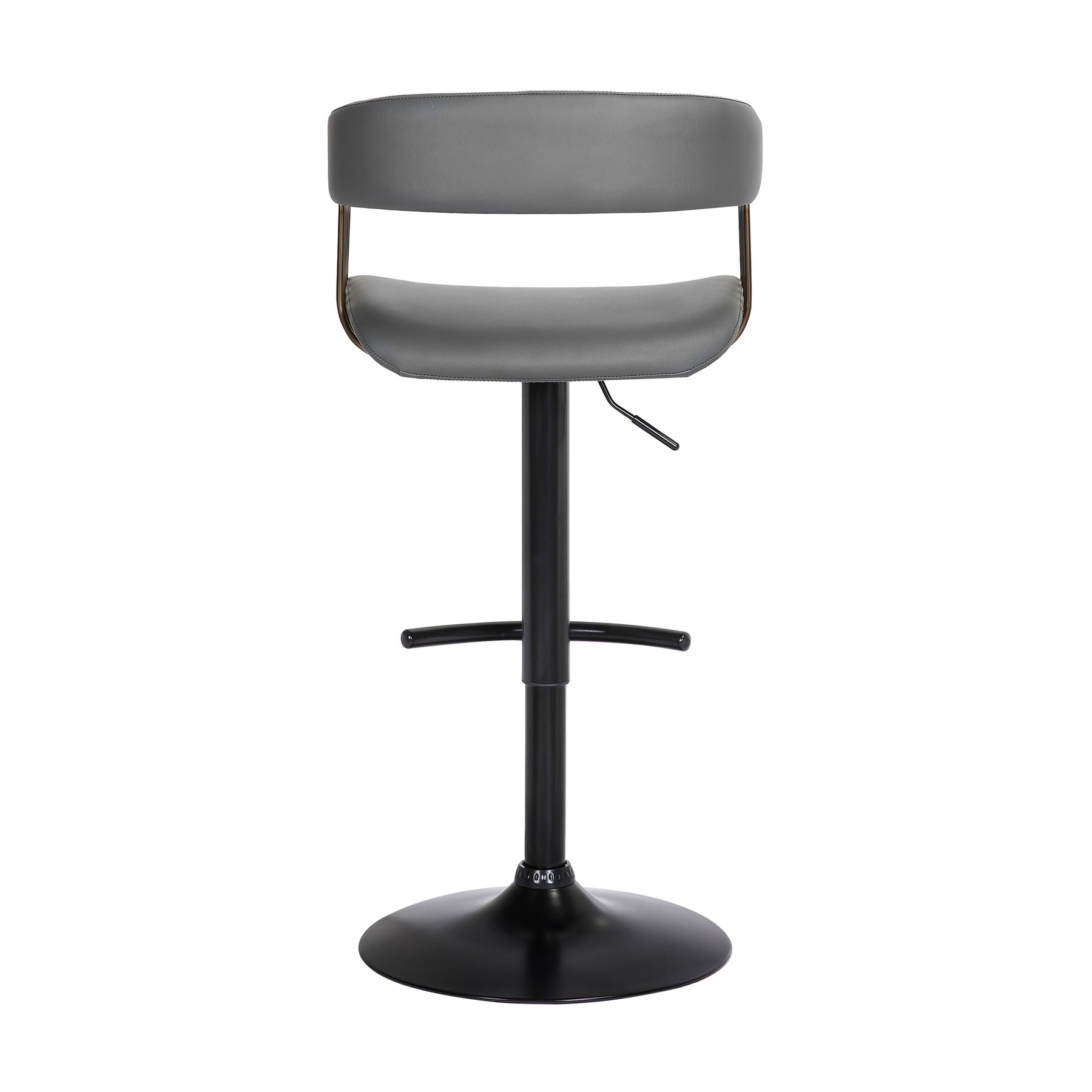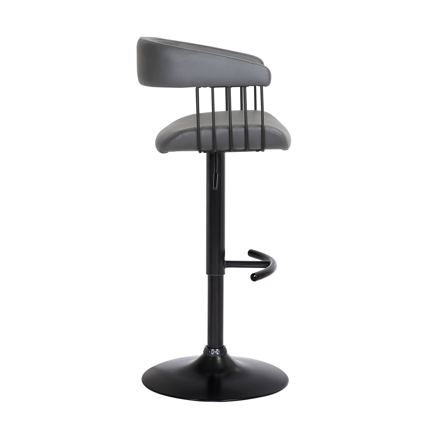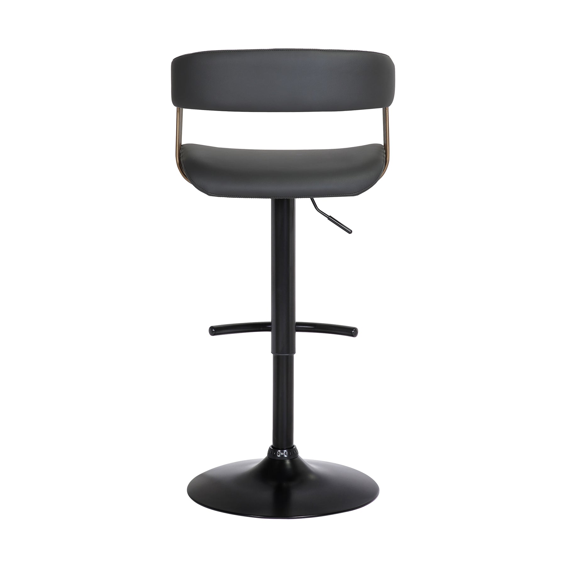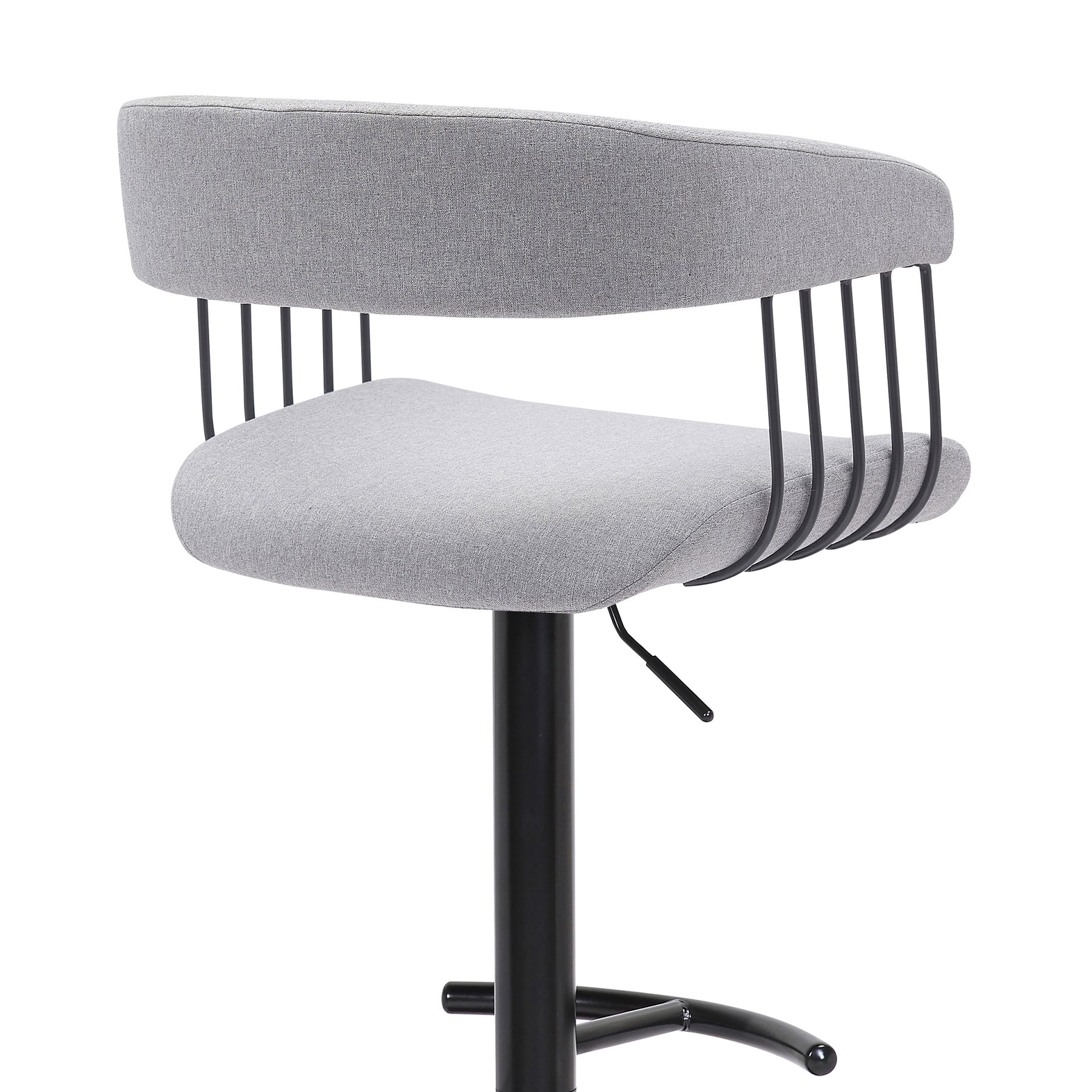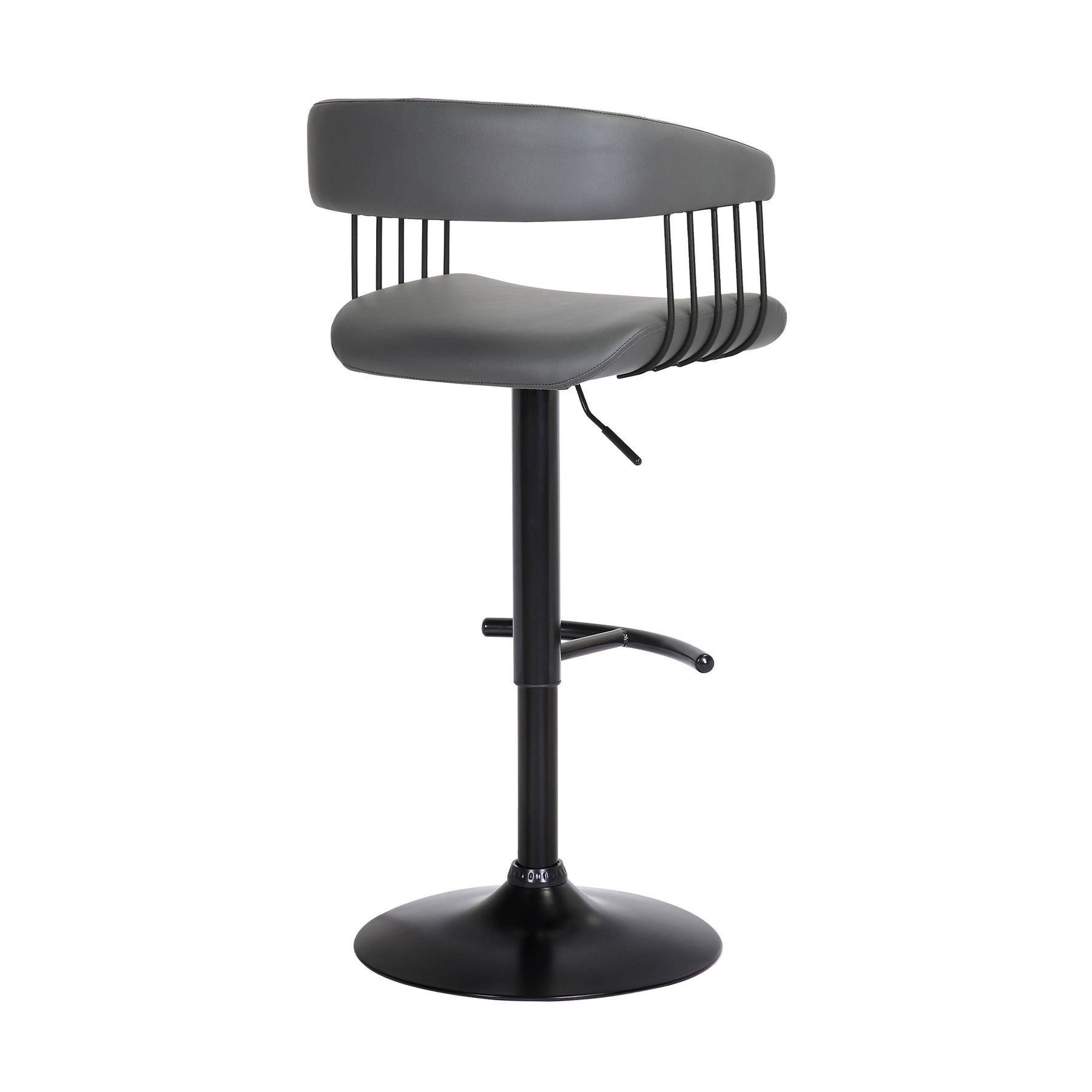 Give a contemporary update to your home with our stunningly stylish and comfortable Calista adjustable bar or counter stool. Featuring sturdy construction, our bar stool stands out with a curved and thoughtfully contoured backrest and seat, wrapping you in supreme comfort. The counter stool features a rich blend of materials and finishes to make a plush and modern statement in your eat-in kitchen, bars, or lounge. With a generously cushioned backrest and seat, our contemporary barstool provides a stylish and comfortable solution for entertaining in a home or apartment. It is upholstered in high performance fabric or faux leather which does not crack or fade easily; it is both stain and UV resistant for easy maintenance and longevity. Our bar stool is expertly crafted from metal and engineered wood to provide a durable and multifunction seating option that can work efficiently from a kitchen to a home office. Featuring a built-in footrest and smooth lifting mechanism, our adjustable counter stool effortlessly caters to a kitchen island, pub table, home bar, or adjustable desk. It includes a wonderful 360-degree swivel function with a smooth gliding system to make island chats, meals, and conversation a lot more enjoyable. The Calista adjustable bar or counter stool easily incorporates into any home and is available in your choice of black metal finish with your choice of gray faux leather, or light gray or blue fabric upholstery, or a black and Golden Bronze metal finish with your choice of black or gray faux leather upholstery.