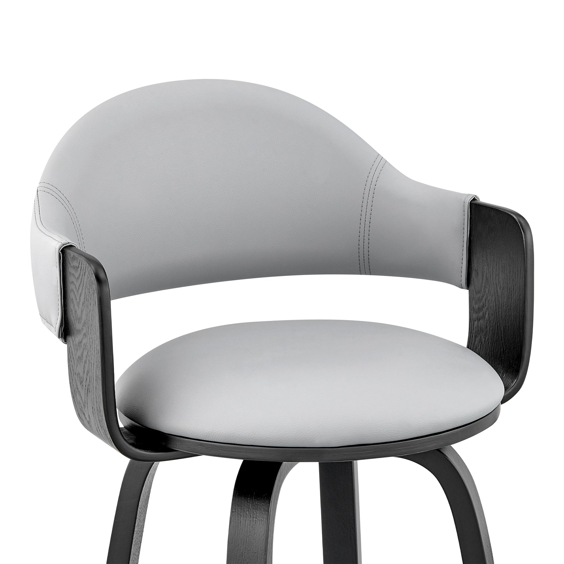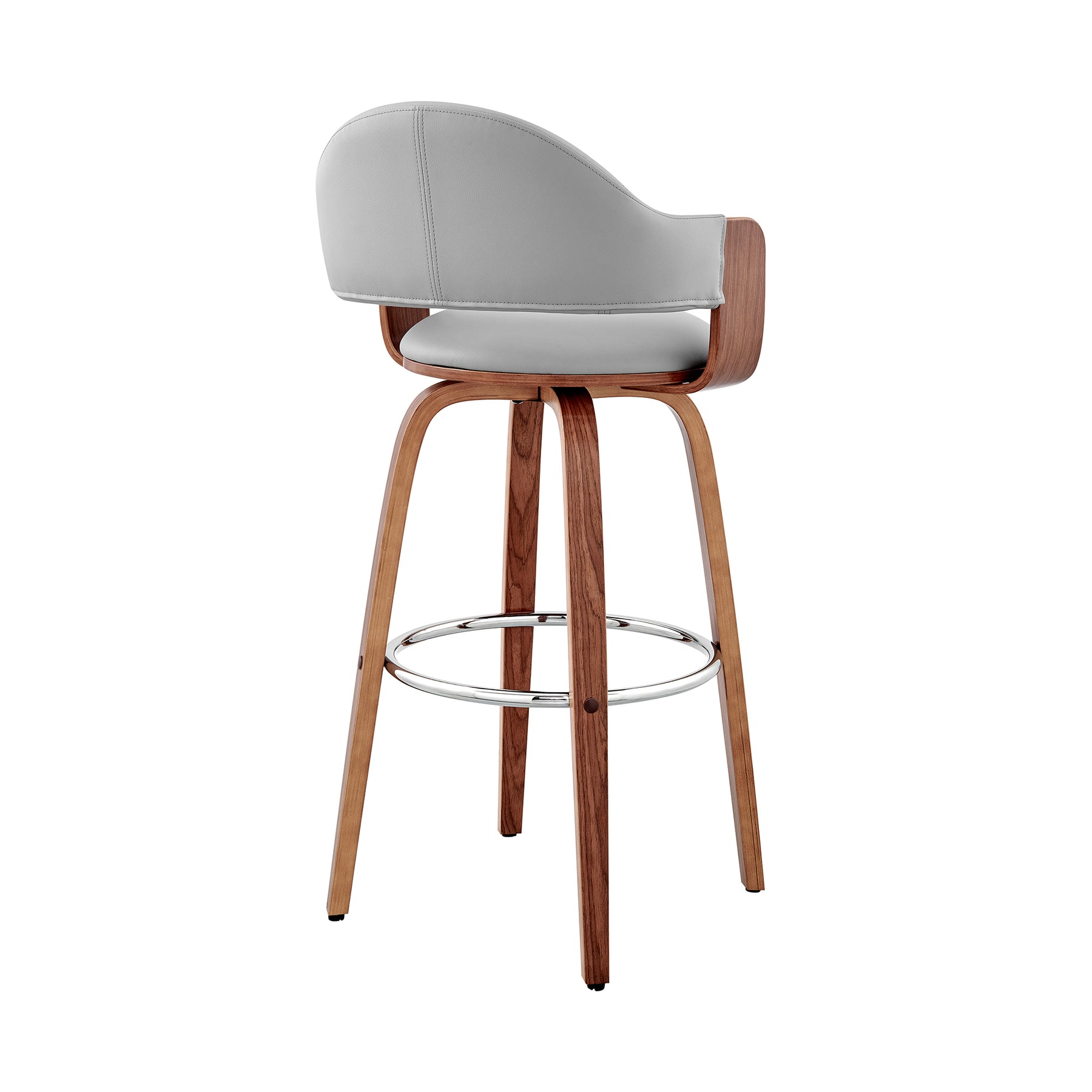 The Daxton 30" Brown Faux Leather and Walnut Wood Bar Stool will complement the existing decor in your home and help elevate it to the next level. The Daxton features a 360-degree swivel function that allows you to keep the conversation going in every direction. The Daxton is also crafted with a ring footrest - meaning you can relax your feet regardless of the direction you decide to turn! The plush seat cushion is padded with high-density foam that will provide you with immense comfort. The Daxton is available in your color choice of Gray, cream, or brown faux leather with walnut wood or Gray faux leather with black wood. Product Dimensions: W:20 x D:20 x H:40 x SH:30