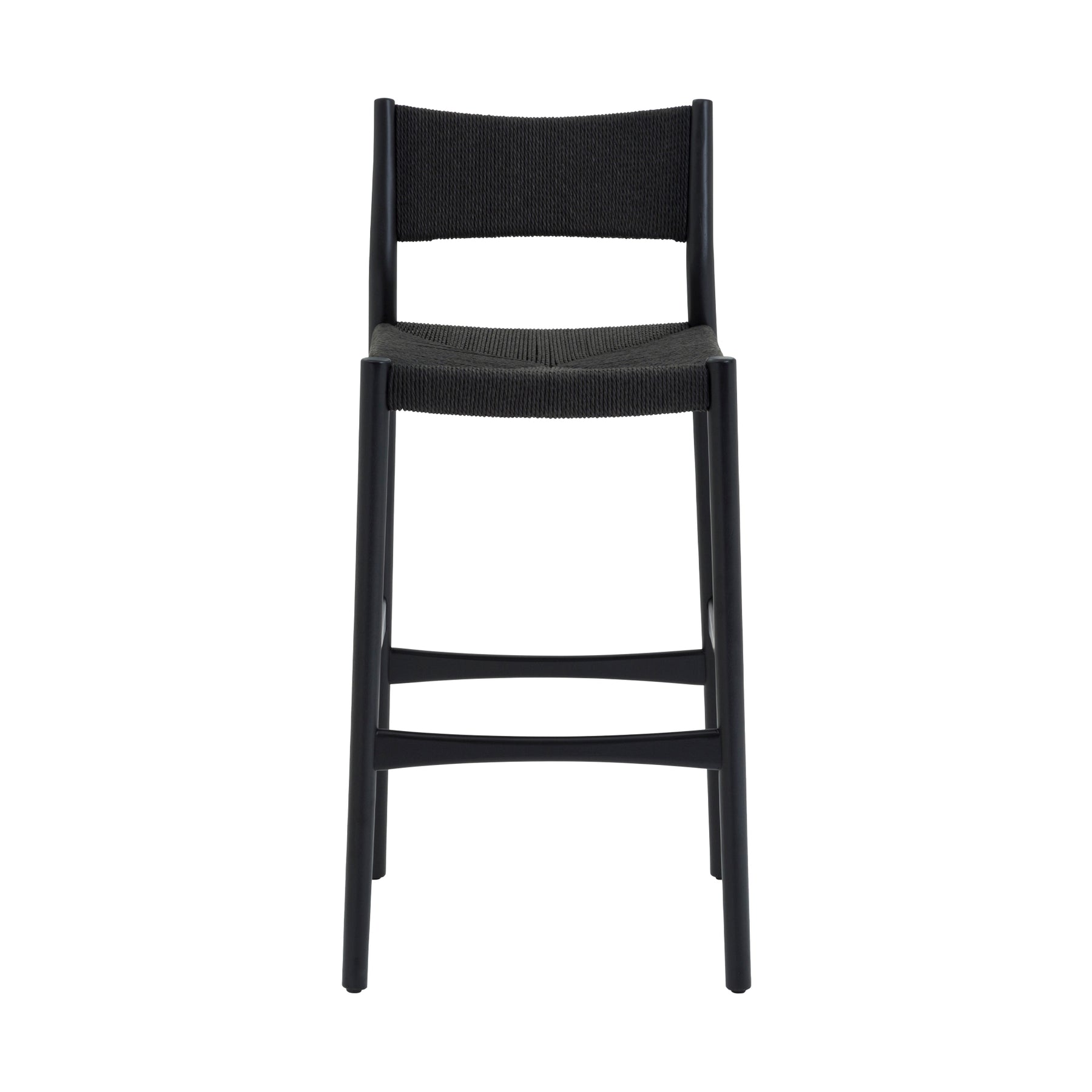 Meet the Erie Black Woven Paper Cord and Wood Bar or Counter Height Stool, a contemporary masterpiece designed to elevate your indoor dining and entertainment spaces. These versatile barstools effortlessly combine modern aesthetics with functional comfort, making them an ideal addition to your dining room or kitchen. Crafted with thorough attention to detail, these counter height stools boast a Danish-inspired design and mid-century modern influence. The black paper cord seat, carefully woven for both style and durability, adds a touch of sophistication to the warm, wood frame. Whether you're creating a cozy bar area or enhancing your dining space, these stools are a statement piece that seamlessly integrates into a contemporary setting. Perfect for both bar and counter heights, these stool chairs provide versatile seating options, ensuring they adapt to your specific needs. The ergonomic design guarantees comfort during extended use, making them an excellent choice for entertaining guests or casual family meals. Elevate your indoor spaces with the Erie Natural Woven Paper Cord and Wood Bar or Counter Height Stool. Whether you're furnishing a modern dining room or creating a stylish bar area, these contemporary bar and counter stools effortlessly blend form and function, ensuring a refined and inviting atmosphere. Immerse yourself in the sophistication of Danish design and mid-century modern aesthetics with these exceptional bar and counter height stools. The Eerie barstool is available in 26-inch and 30-inch seat heights in either black solid rubberwood or natural solid oak construction.