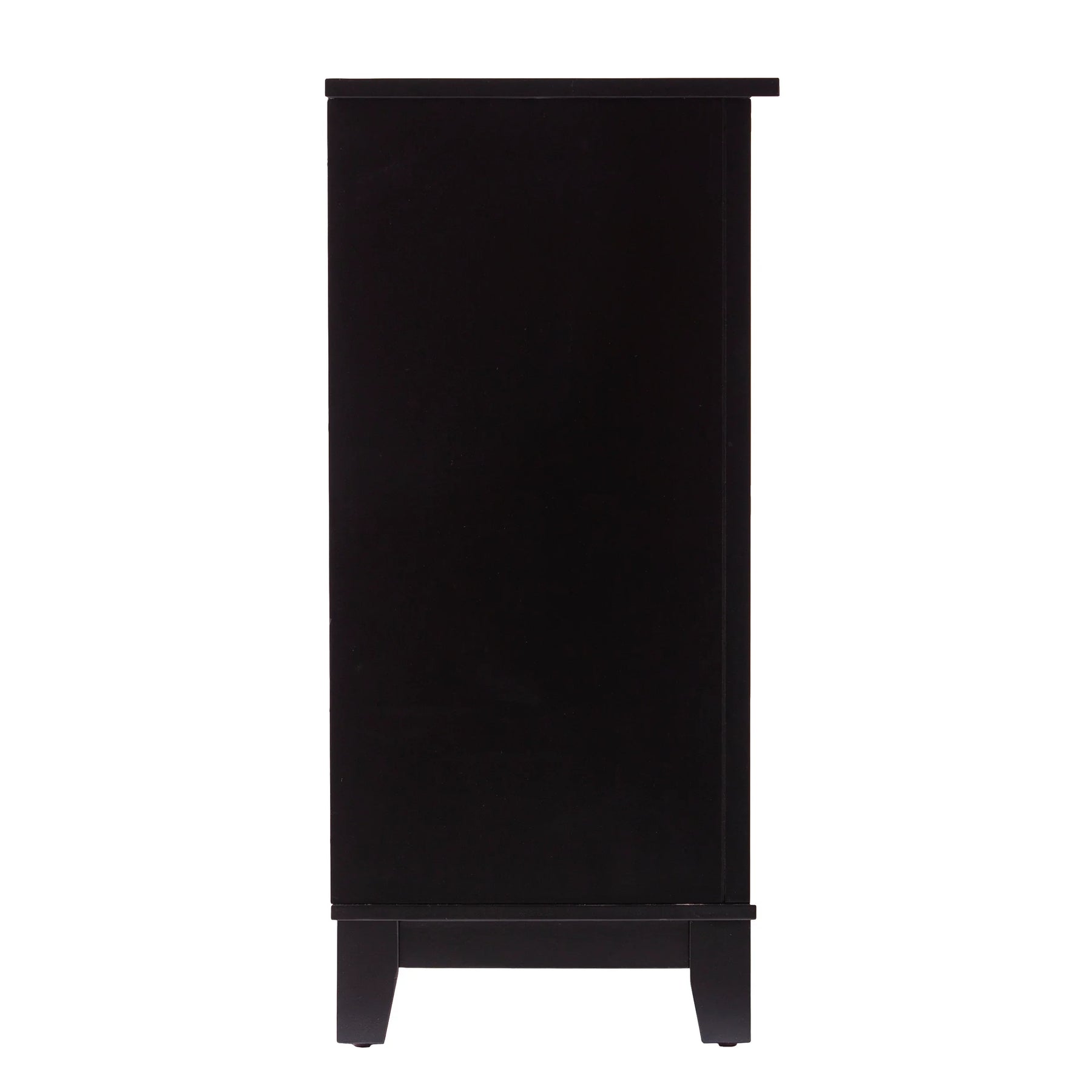 On the corner. Modern design and a classic silhouette square off with the Chekshire Anywhere Cabinet. Roomy drawers and a spacious storage cabinet weave a natural look throughout your space with cane details and sleek brass hardware. Woven faux rattan insets open up storage opportunities for fine china and flatware or board games and extra blankets. Catty-corner this accent storage cabinet in your living room for stylish media storage that checks all your boxes, or slide into your entryway to wrap up accessories and décor.