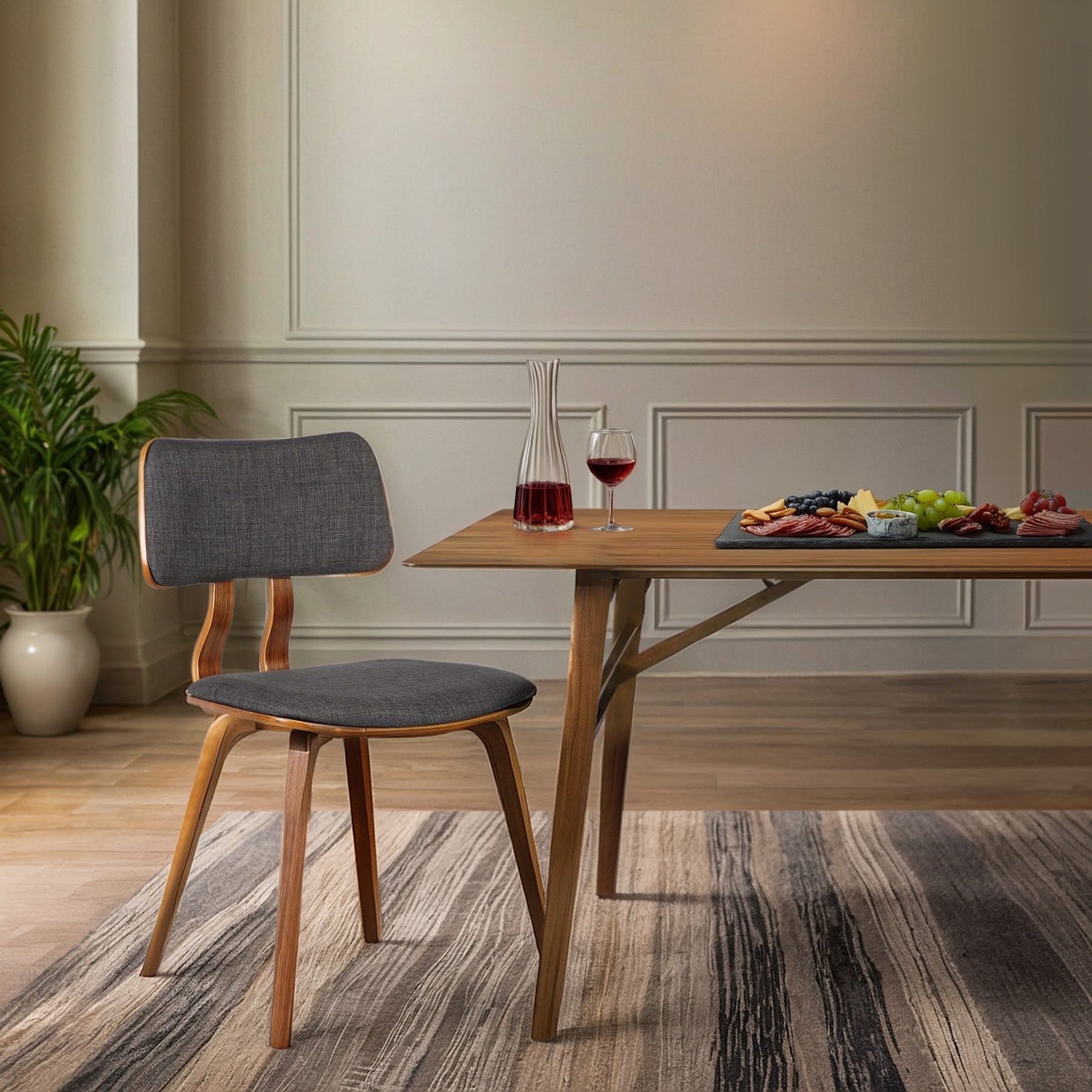 The Armen Living Jaguar mid-century side chair is an epitome of artistic beauty. This contemporary chair's stylish curved back and attractive fabric upholstery make it a standout piece in the modern home. Don't overlook the details of this elegant side chair, the durable wood frame, covered in plush fabric upholstery makes the Jaguar exceptionally inviting. This simple but unique design that you can play up or down in any room in your home. It is the perfect size for small spaces such as dorm rooms or apartment or it can be use to entertain large gathering in style. The high cushion back is ideal for posture alignment and an unmatched support for days on end. The detailed open back adds to the aesthetic of the overall modern and mid century look. The foundation of the product is supported by solid walnut wood for a sturdy and stylish look without comprising practicality and functionality of this item. This item is a versatile piece that can be ideal for dining, kitchen or even home office desk chairs. This product ships in one box with easy and quick set up. We stand by the quality, the craftsmanship and the integrity of our product by offer 1-year warranty for all our products. Its sleek legs are built to create balance and the back seat includes exposed zig-zag lines enhance the aesthetic appeal. The Jaguar dining chair is available in Gray, Charcoal, and Green Fabric upholstery. Product Dimensions: 18"W x 20"D x 29"H SH: 18"