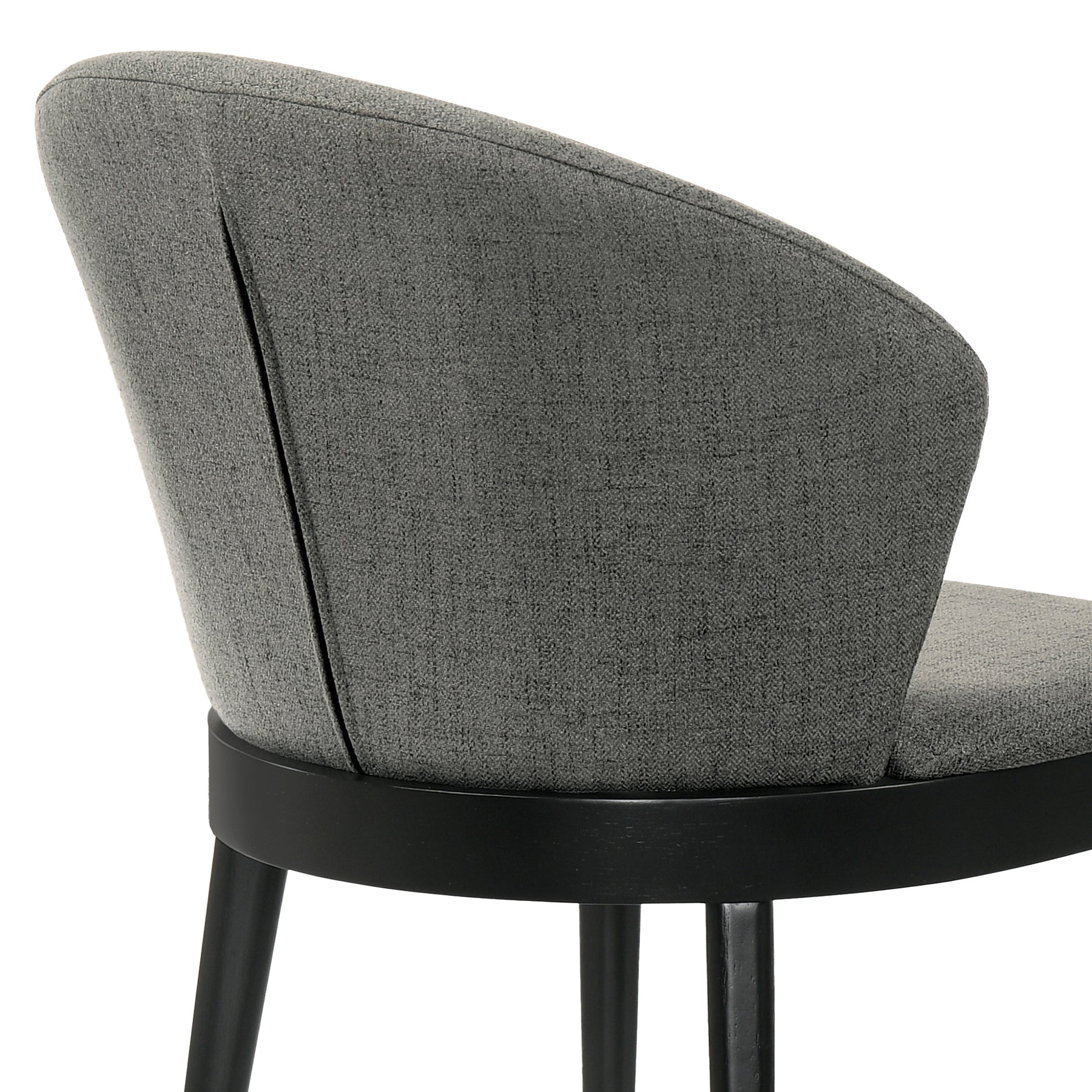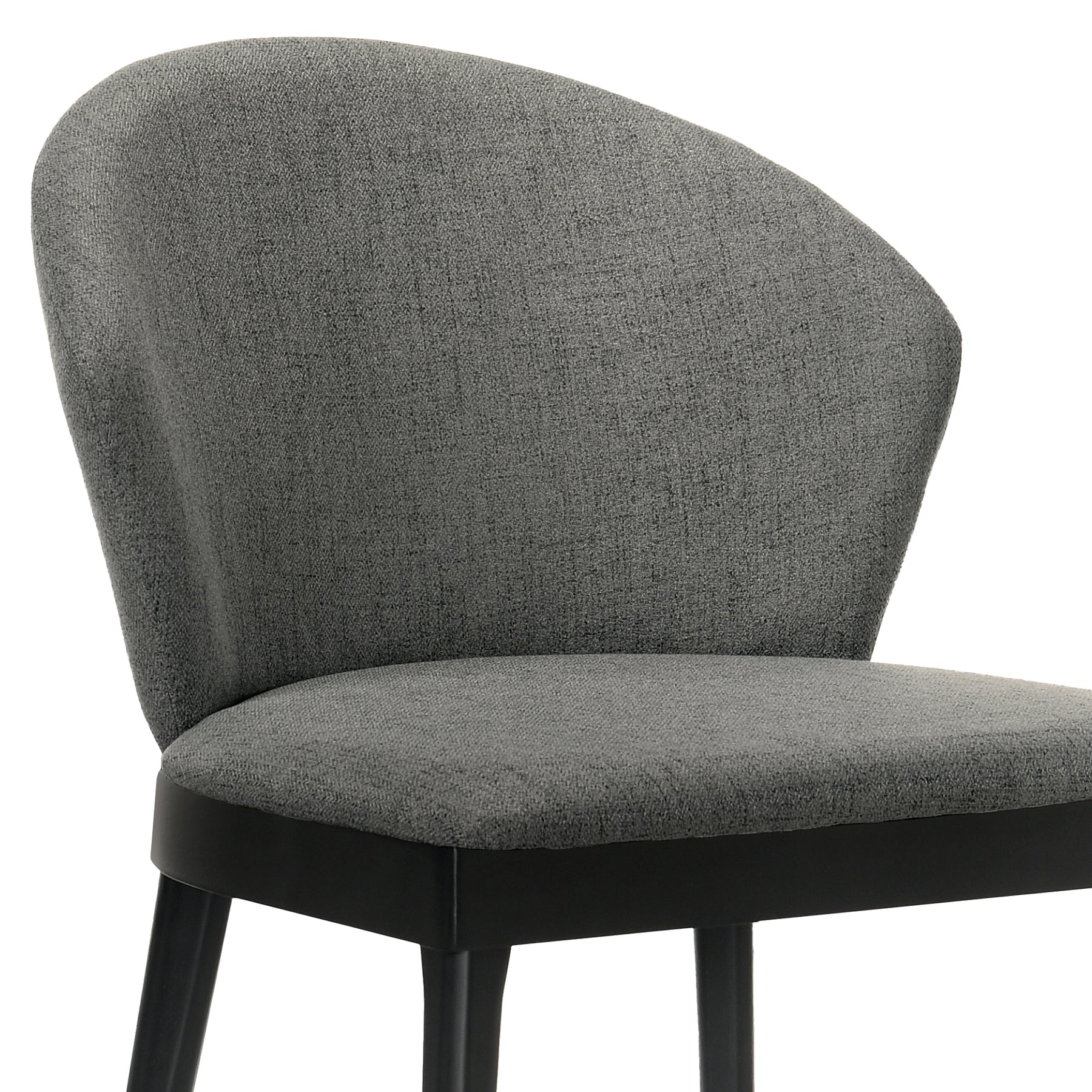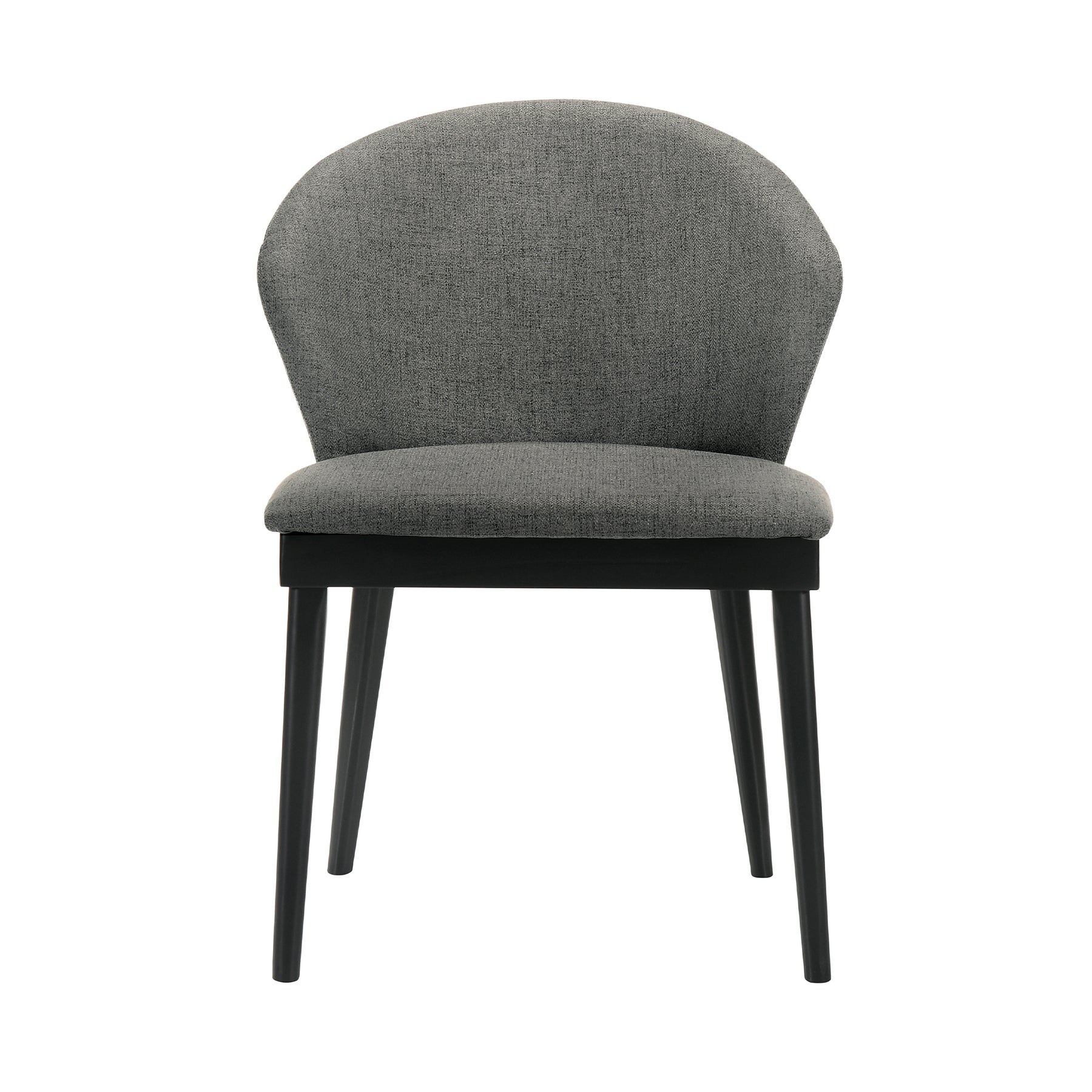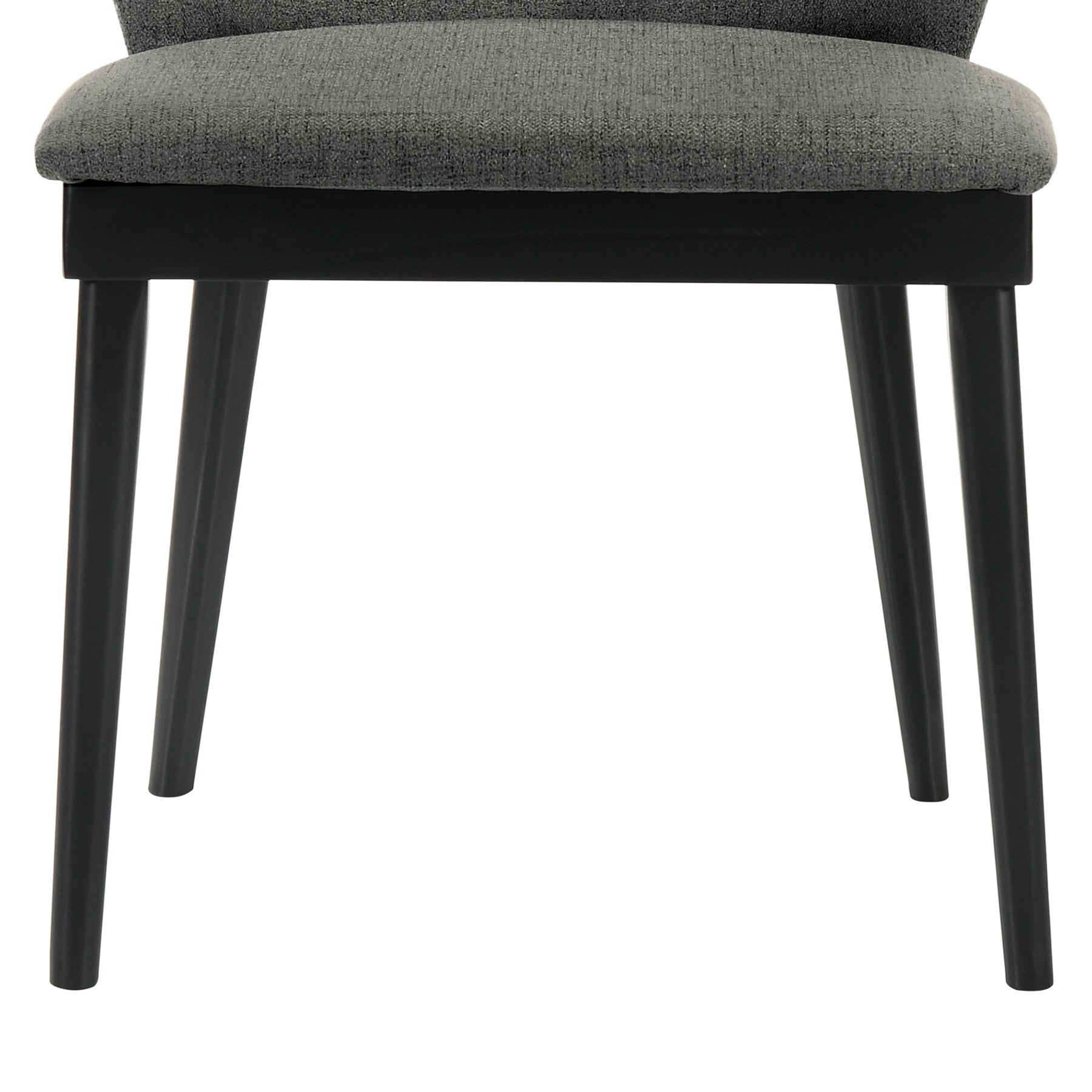The Juno Charcoal Fabric and Black Wood Dining Side Chairs from Armen Living are a superb seating option featuring smooth and sleek craftsmanship. The tall, rounded seat back features ergonomic properties to keep your back healthy and properly aligned. The soft fabric upholstery is wrapped around an incredibly comfortable foam padded seat cushion for your pleasure. The versatile look of the Juno allows it to blend into any room in your home - place it wherever you'd like, the choice is yours to make! The Juno dining side chairs are available in your color choice of charcoal fabric with black wood or blue, charcoal, or orange fabric with walnut wood. Product Dimensions: 24"W x 20"D x 27"H SH: 19"