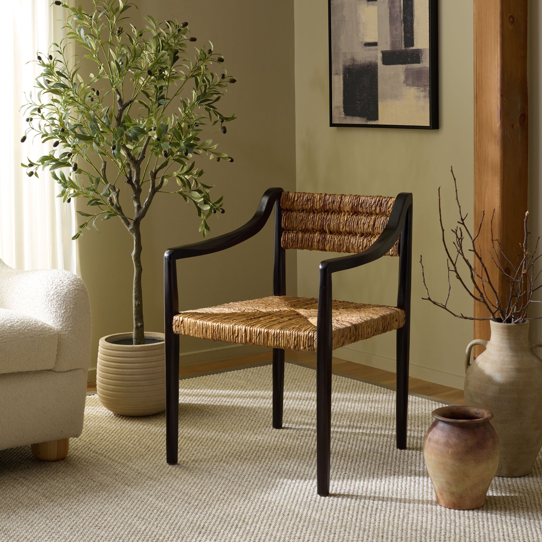 Introducing the Kona Woven Abaca Dining Chair in Black and Natural. Elevate your dining space with a blend of style and comfort. Crafted from wood and abaca, this chair brings a touch of nature indoors while providing an elegant seating solution. The black and natural color palette effortlessly complements a range of decor styles, from modern to rustic.