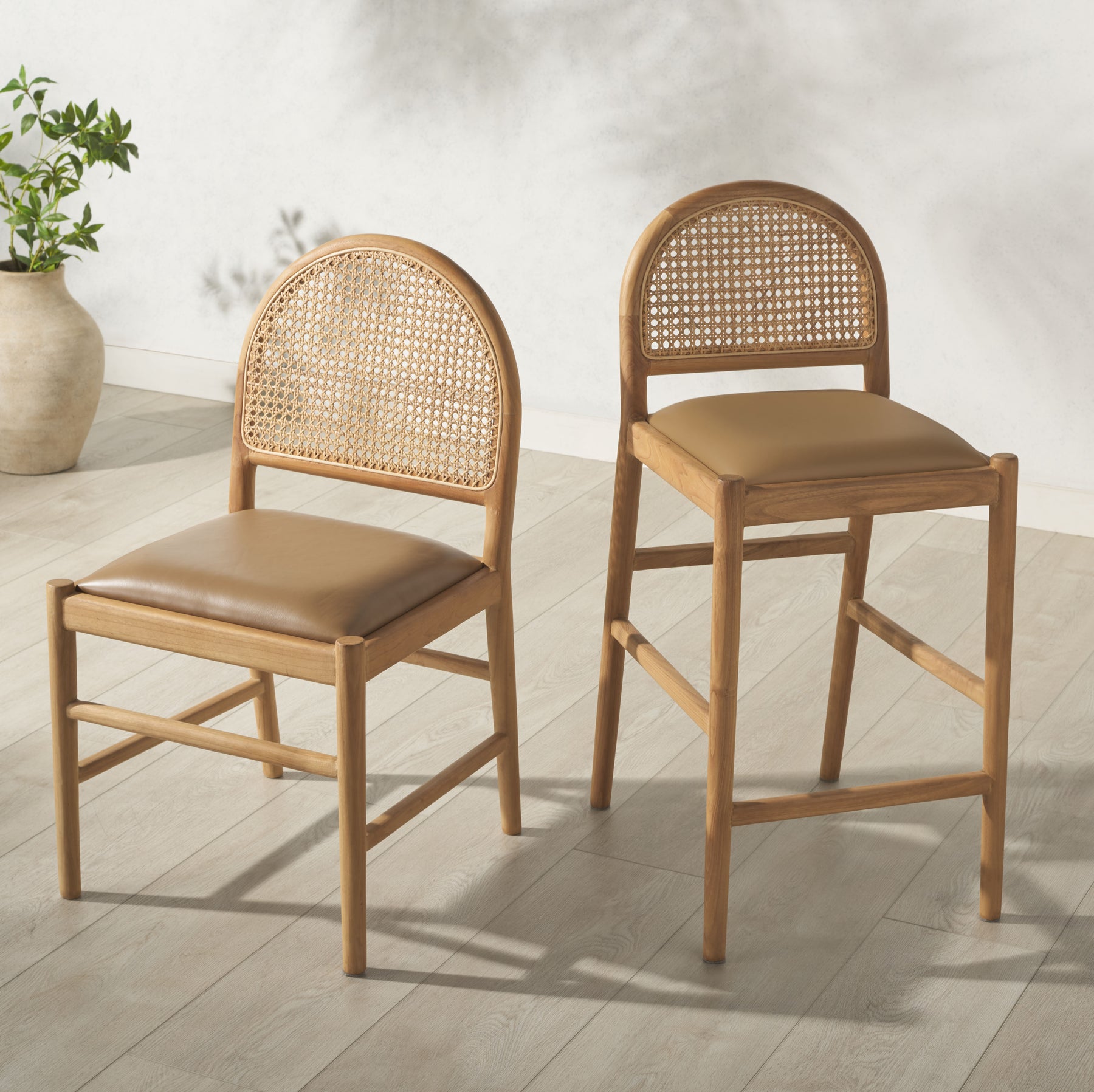 Laylie Rattan And Leather Counter Stool