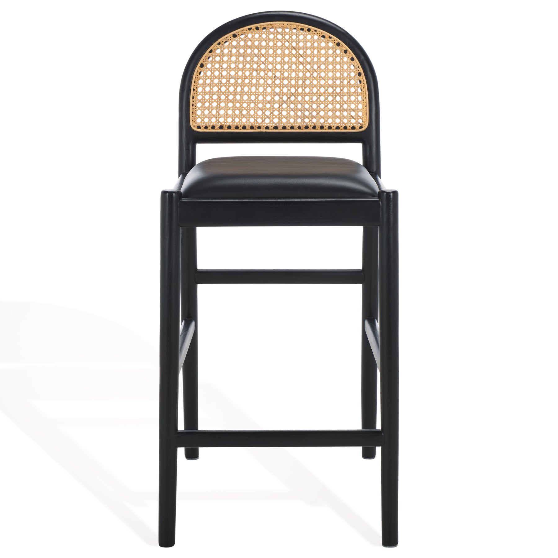 Introduce the Laylie Rattan and Leather Counter Stool, this majestic piece is more than just a furniture item, it's a testament to astounding craftsmanship and chic design. Forged from robust solid Sungkay wood that adds a strikingly rustic charm, the stool is clad in lavish black, a color that oozes elegance, sophistication, and timeless appeal. An eye-catching detail is the use of top grain leather, an exquisite material known for its durability, strength and effortless style. Not only does it provide unparalleled comfort, but it also injectively adds a touch of finesse and luxury to the stool. The Laylie Rattan and Leather Counter Stool is an emblem of stunning visual aesthetics and functional design, a true centerpiece that suits any kitchen counter or bar area. The bold play of black top grain leather against the grain of the Sungkay wood creates a perfect harmony of elements. Embrace this gorgeous stool, for it promises to elevate your interior space and provide outstanding seat experience.