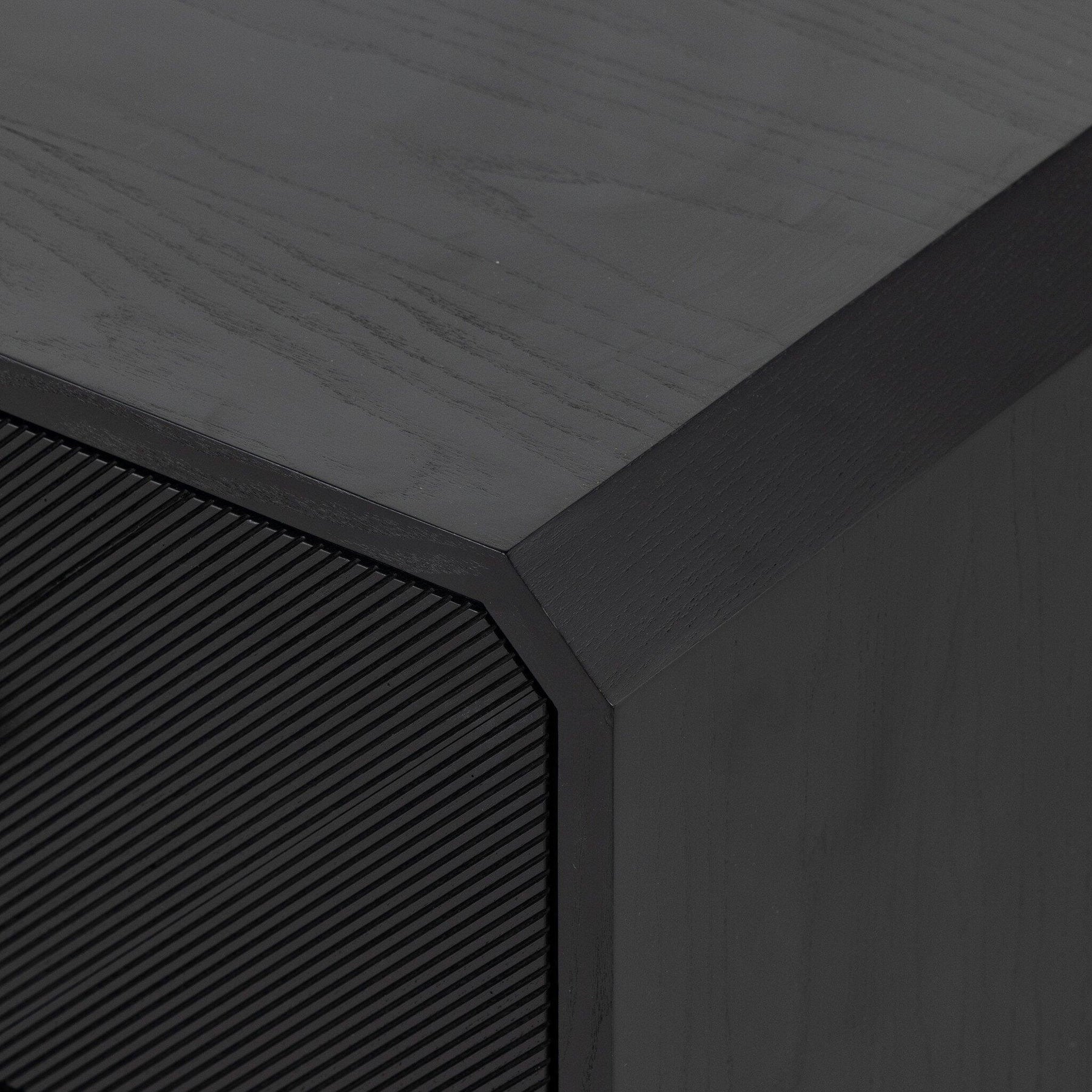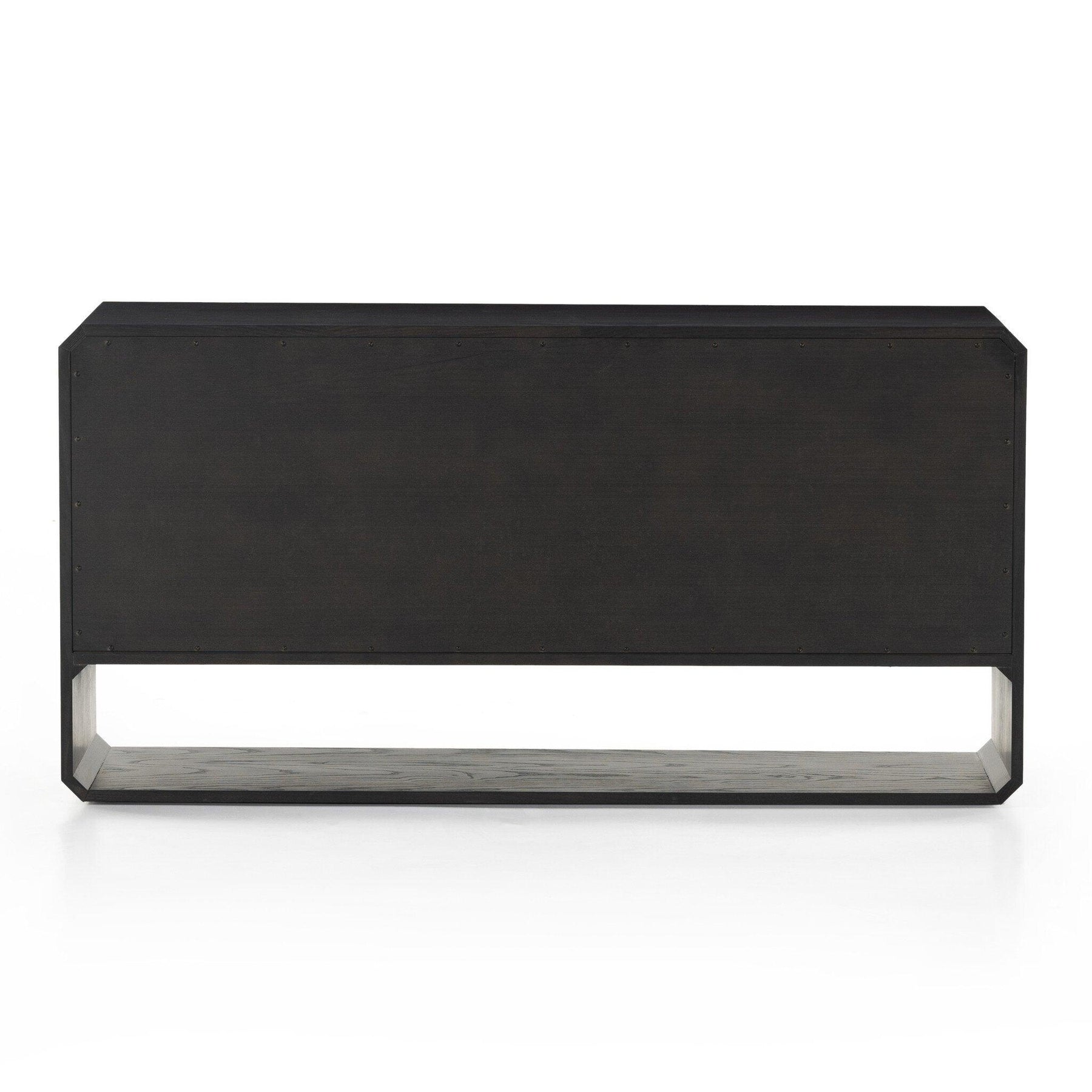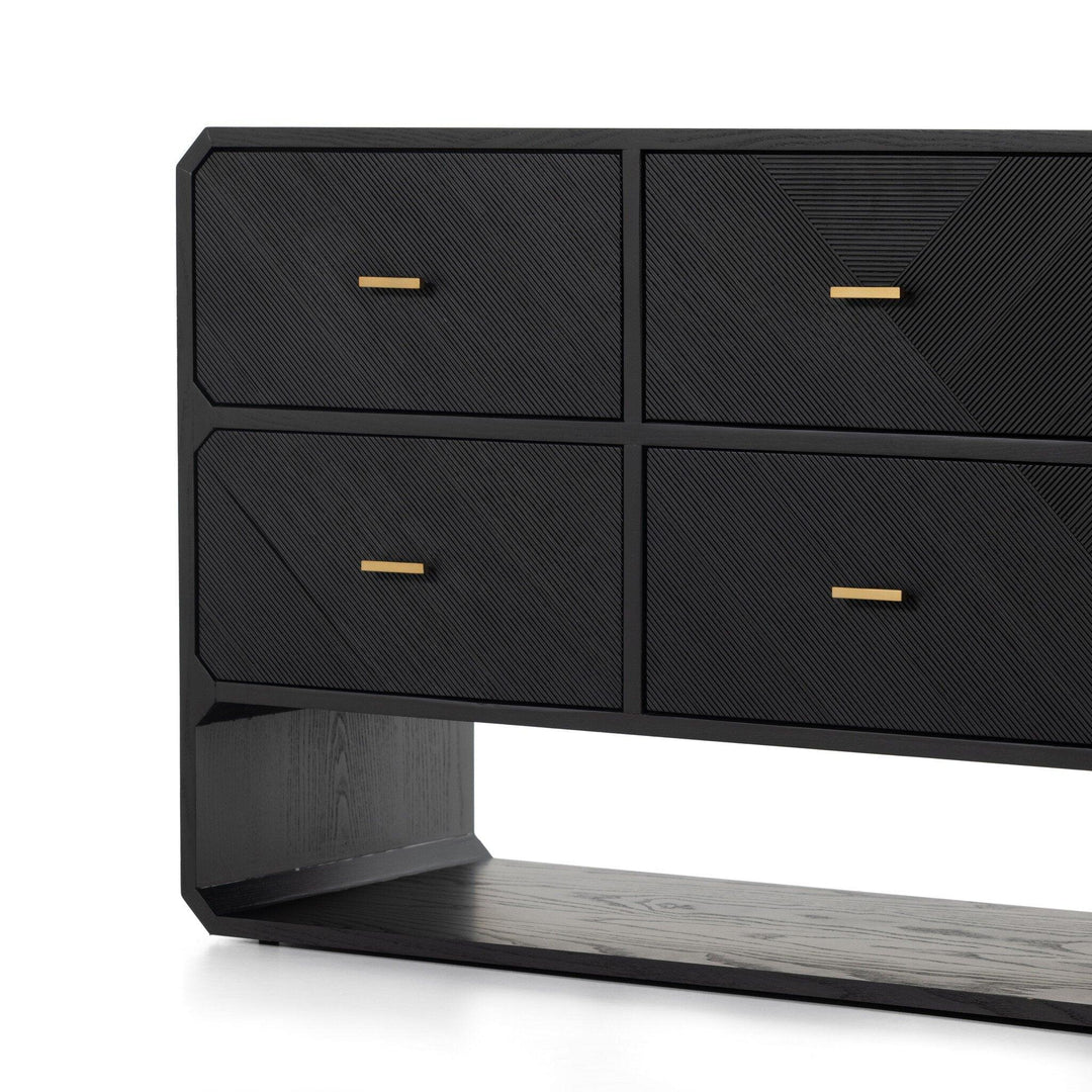 Modern dresser sleek and timeless design with plenty of storage. Black ash veneer with satin brass handles. This item has been modified to comply with the STURDY Act. See a full list of modified products and data changes in the “STURDY Act” file in the Downloads section below.