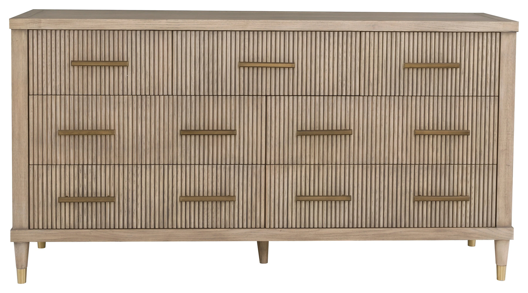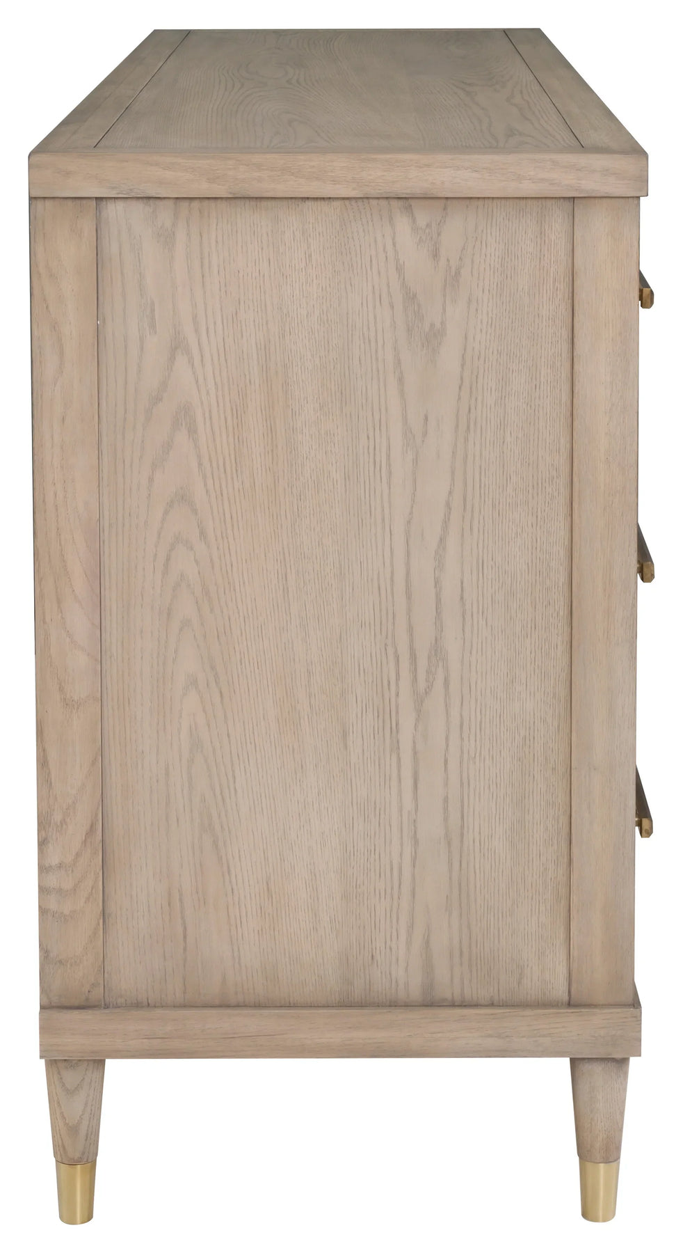 Features Seven Drawers. Brushed Brass Hardware And Ferrules.