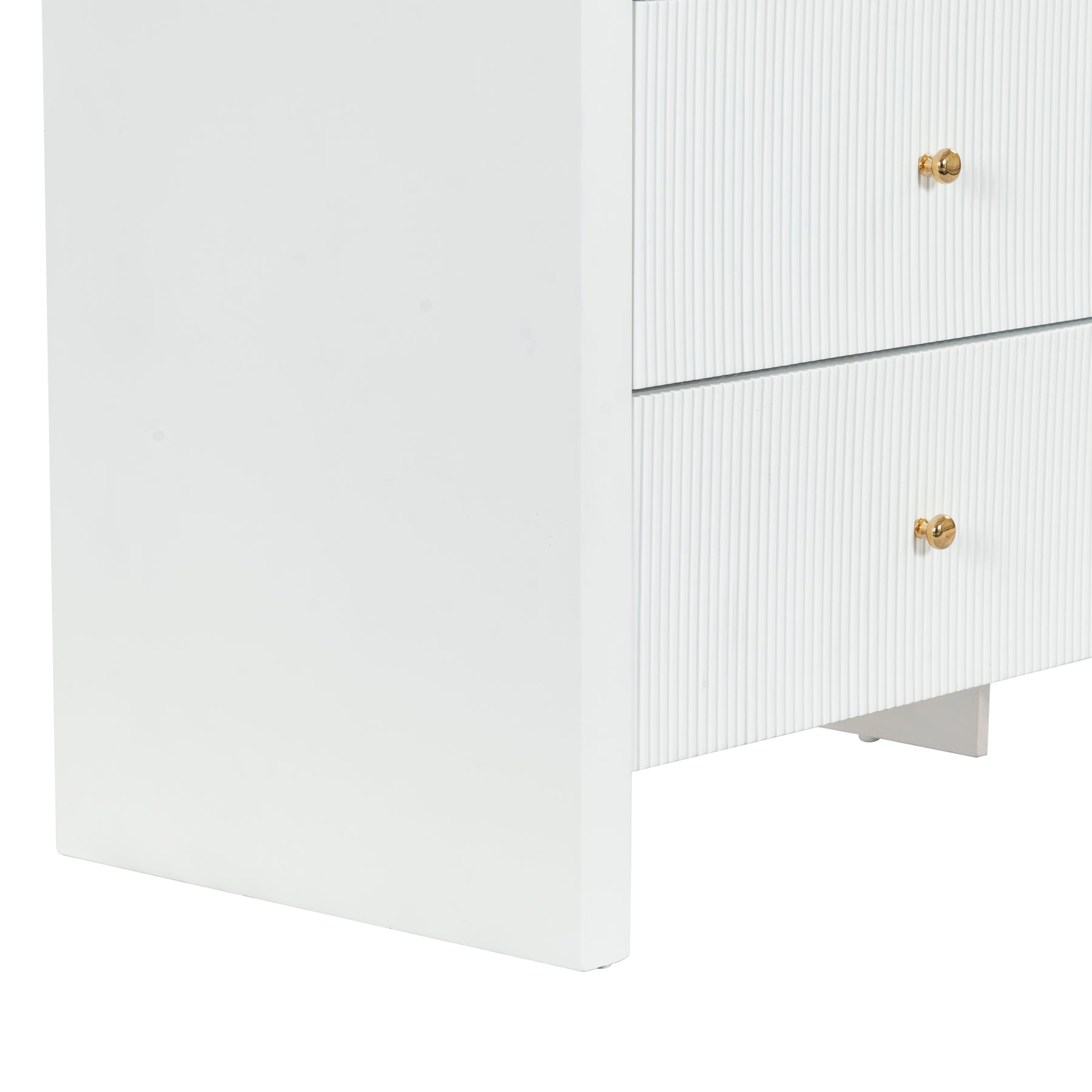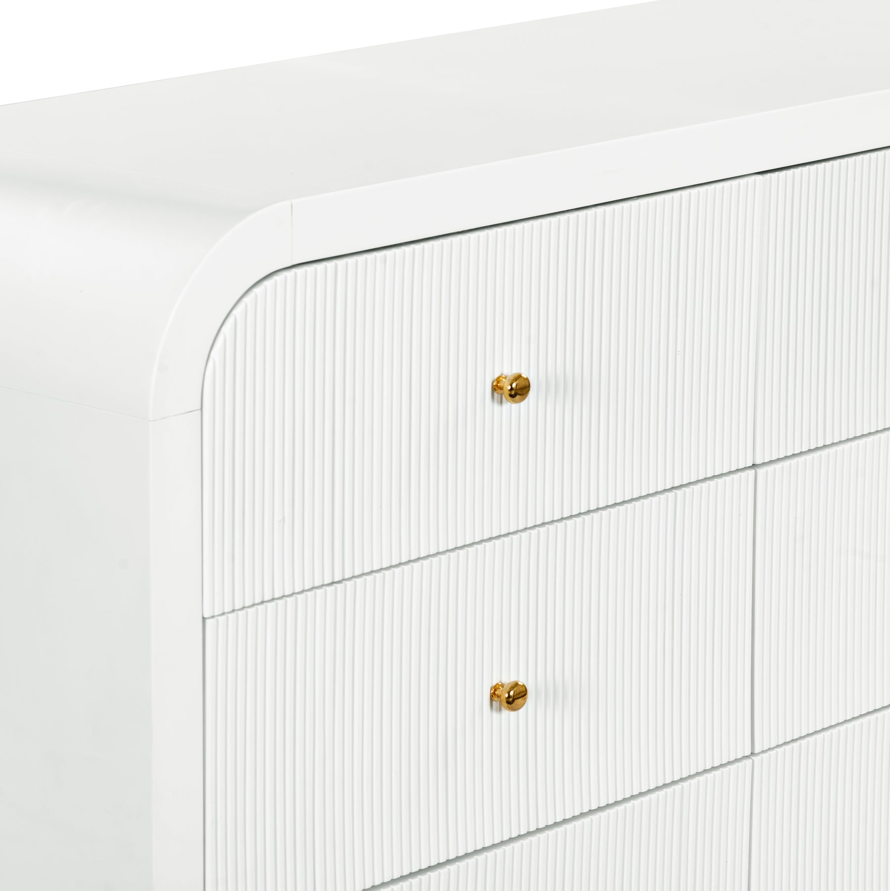 Introducing the Liabella 9 Drawer Curved Dresser, a stunning addition to any home. This piece, finished in elegant black with gold accents, elevates your decor with its sophisticated style. Crafted from a blend of wood, metal, and polyresin, it showcases a unique fusion of materials that adds both elegance and durability. The dresser's curved design provides a graceful silhouette, while the nine spacious drawers offer plenty of storage for your belongings. Whether placed in a bedroom to organize clothes or used as a statement piece in a living area, the Liabella dresser brings charm and functionality to your space. Its sleek black finish is perfectly complemented by the subtle gold adornments, creating a look that is both timeless and contemporary. Experience the perfect blend of form and function with this beautifully designed dresser that meets your storage needs with style. Transform your room with the Liabella and enjoy a touch of elegance every day.