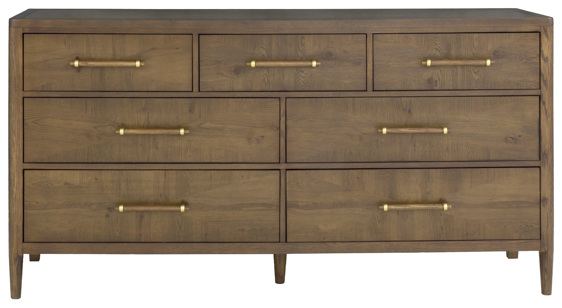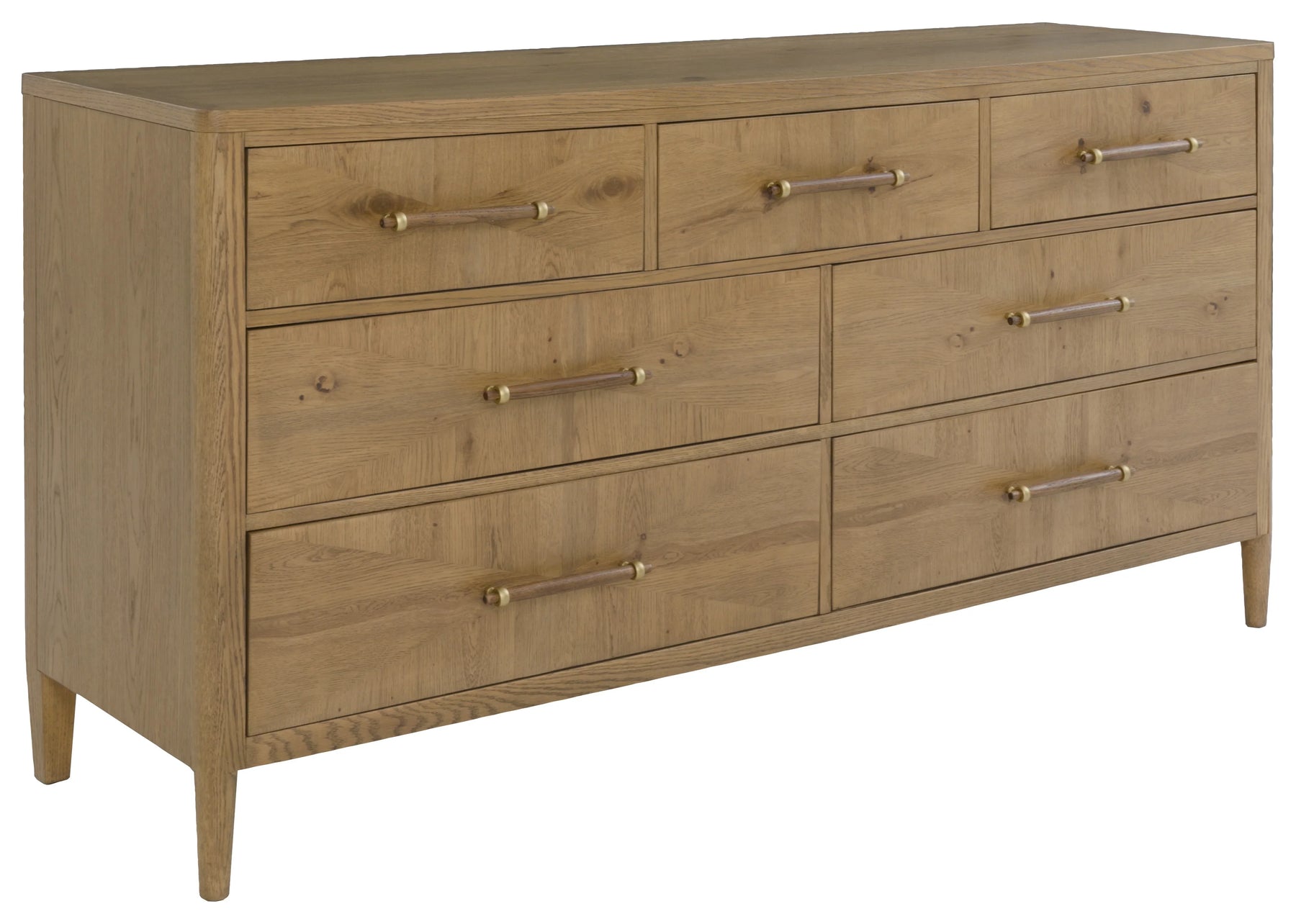 Our Maxwell Collection is inspired by Mid-Century design; clean lines paired with rounded corners to create a modern yet timeless aesthetic. Crafted from hand-selected oak solids and veneers, the Maxwell Bedroom Collection consists of a bed (king or queen), nightstand (1 or 2 drawers), 7-drawer dresser and a 4-drawer chest. Special features include: rounded solid oak hardware pulls punctuated with brass accents and pull-out shelves for the nightstands. Maxwell is stocked in two finishes: Sunlit Oak and Caramel or available in 40+ additional custom finishes via our Monogram Program.