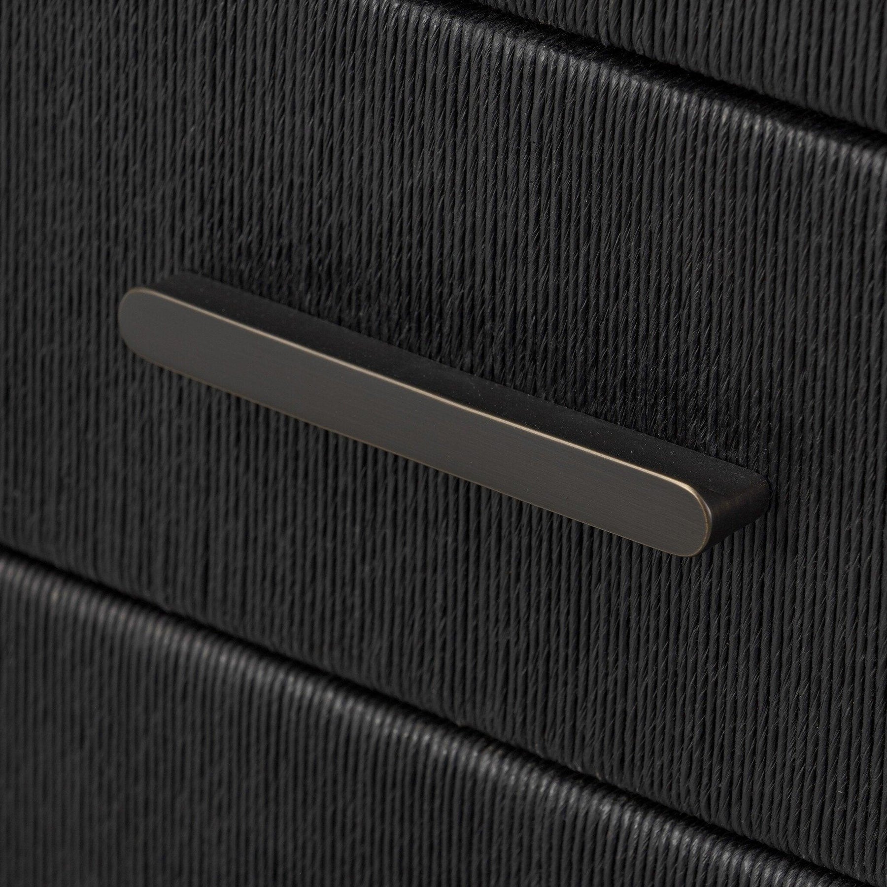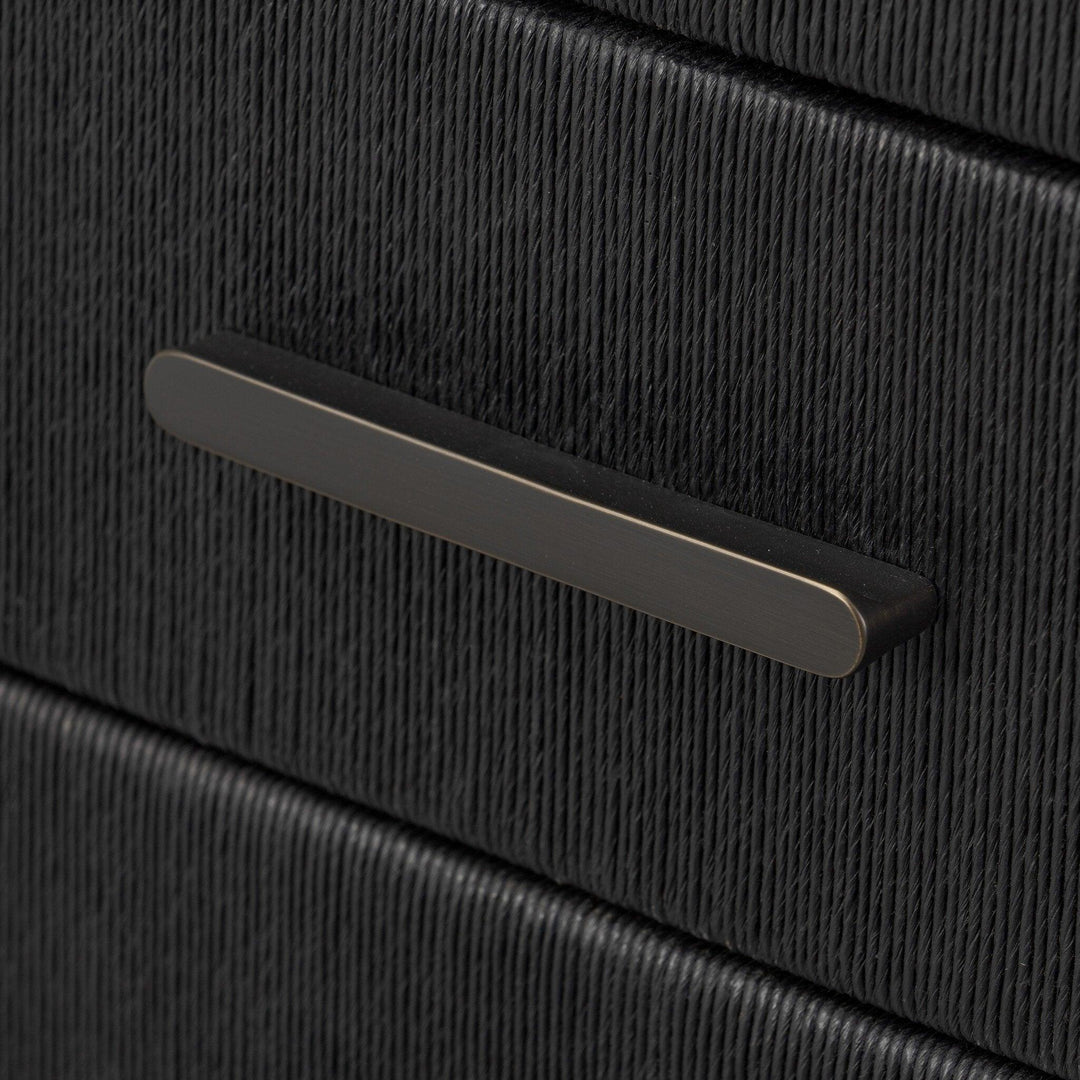 Elevate your bedroom styling with a storage-driven dresser of black-finished oak. A smooth top pairs with eight spacious drawers covered with woven paper cord. The result: a dark Scandinavian-inspired look that will work into your collection beautifully.