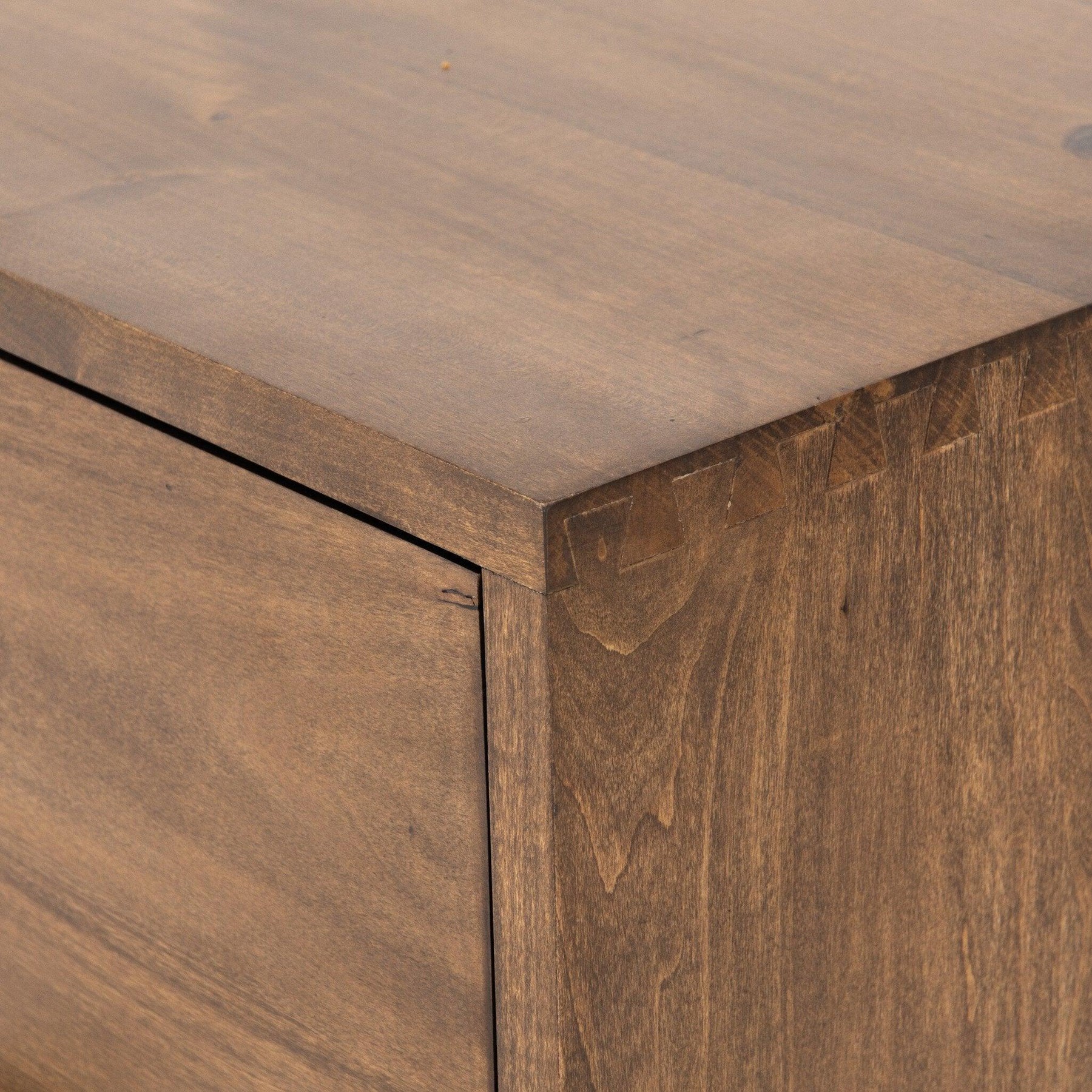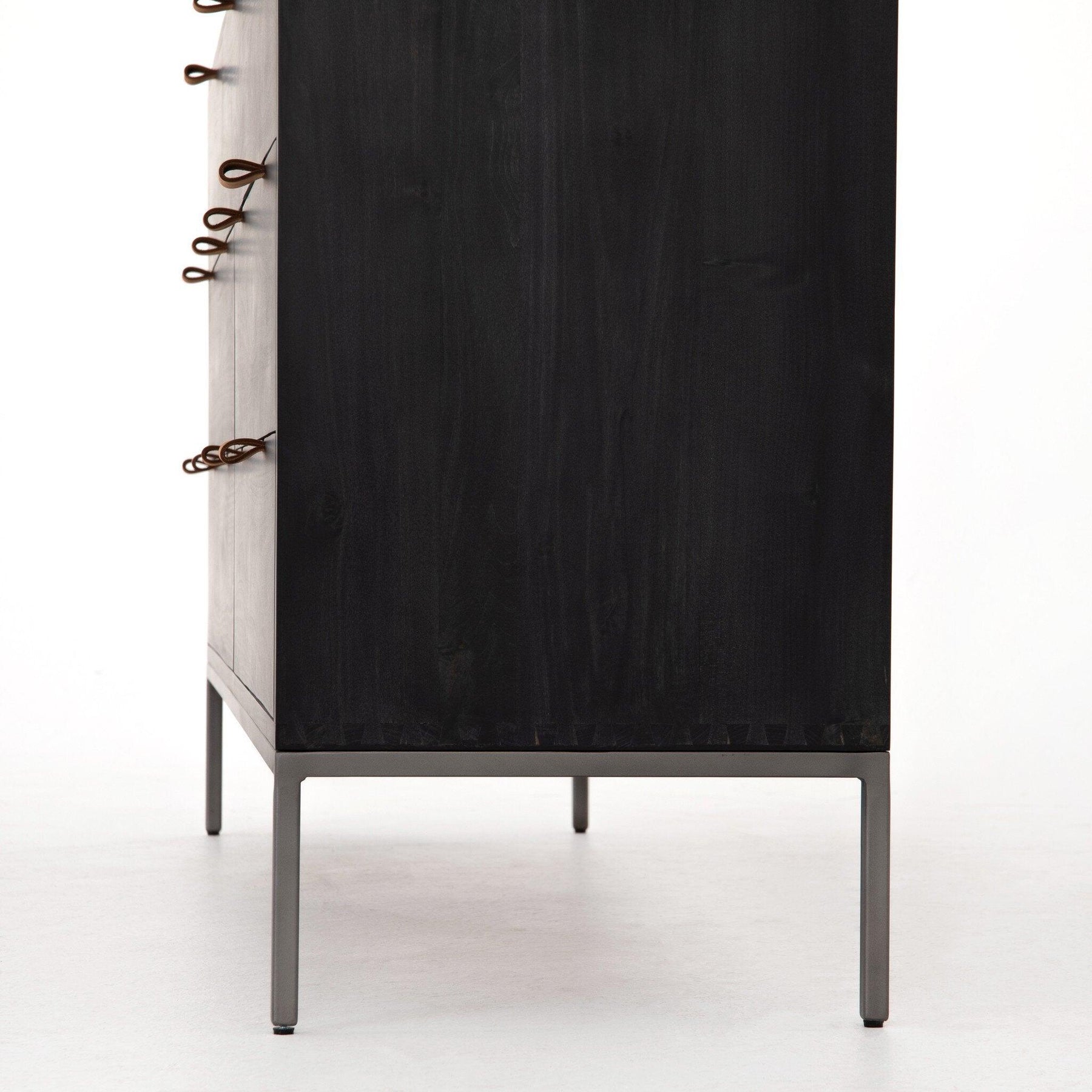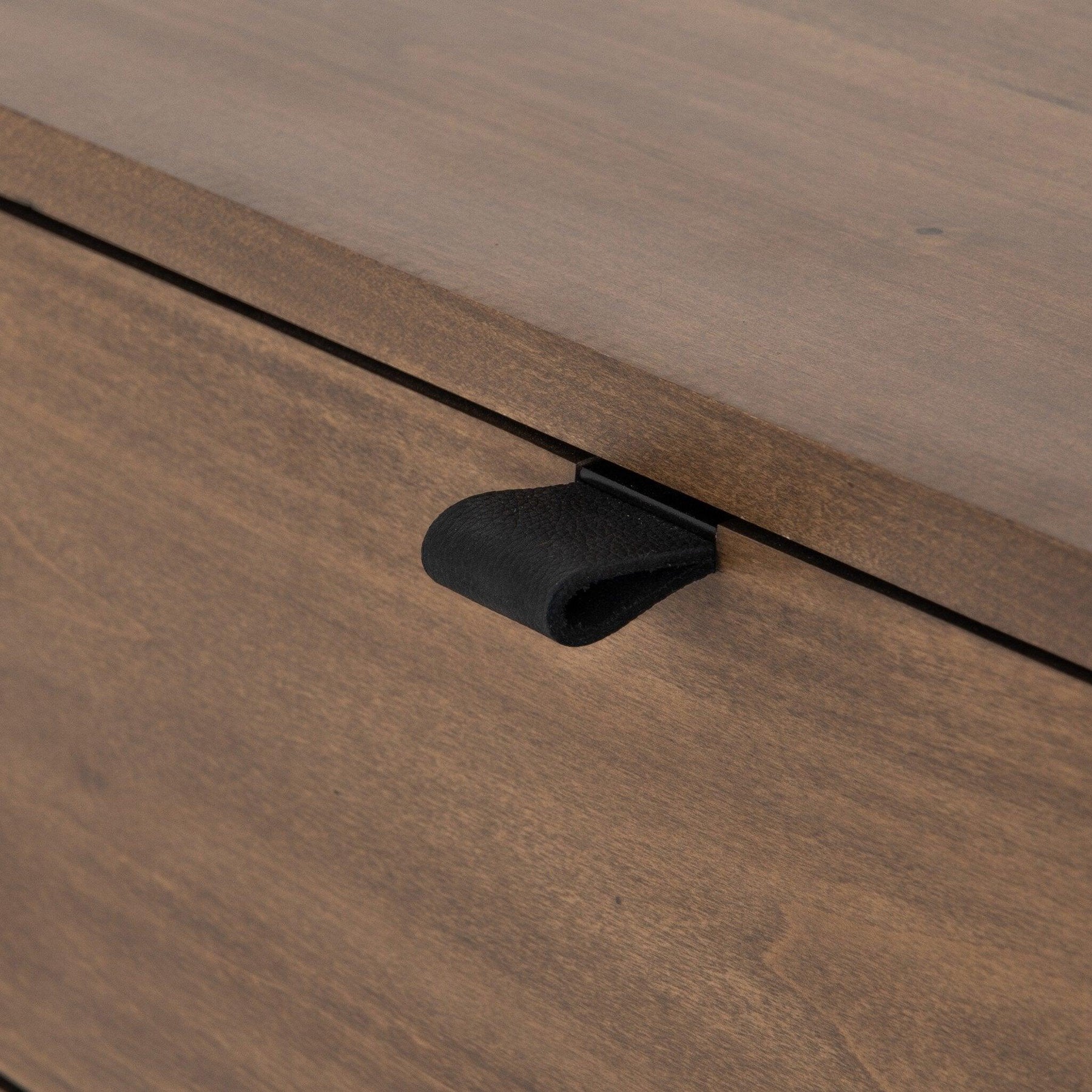 Inspired by clean mid-century design a stylish dresser of auburn poplar offers plenty of bedroom storage space thanks to seven spacious drawers. Metal-secured leather pulls add a textural element of surprise.