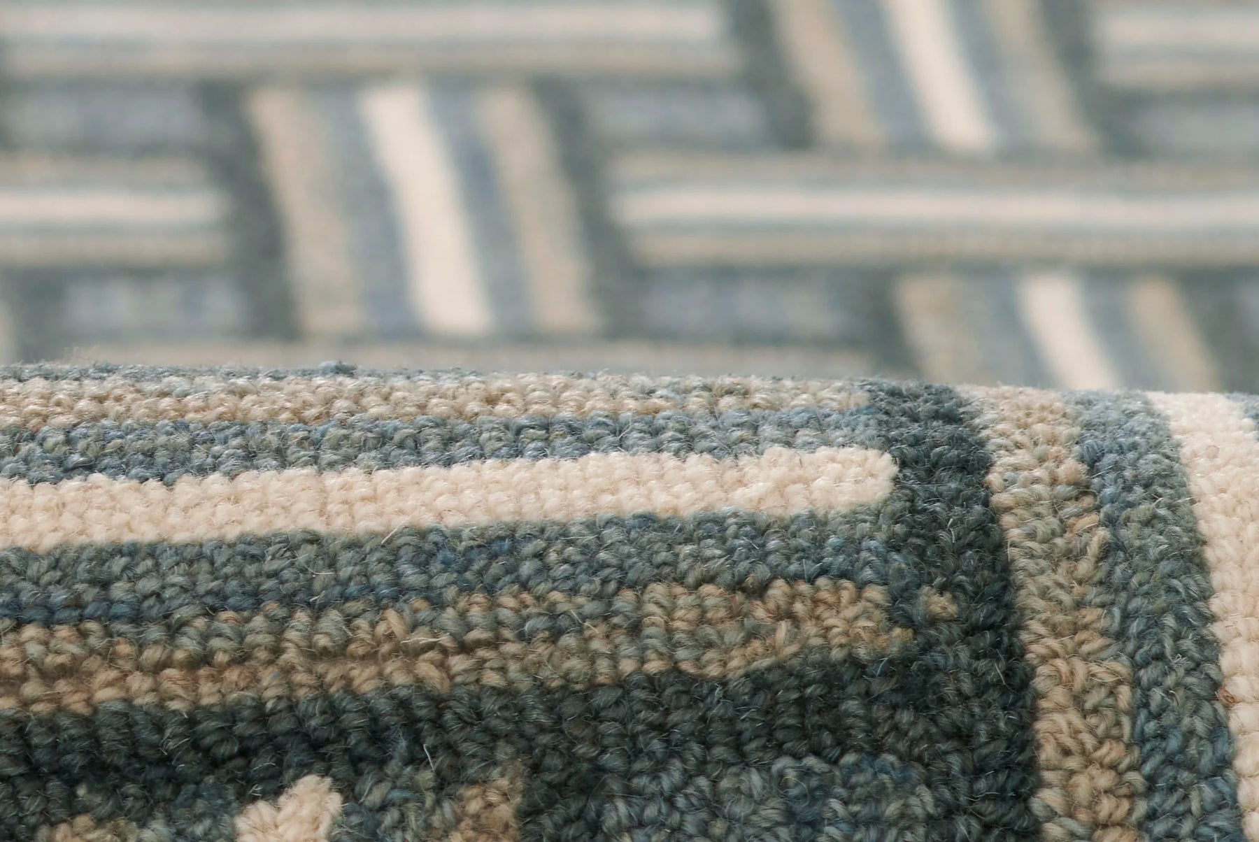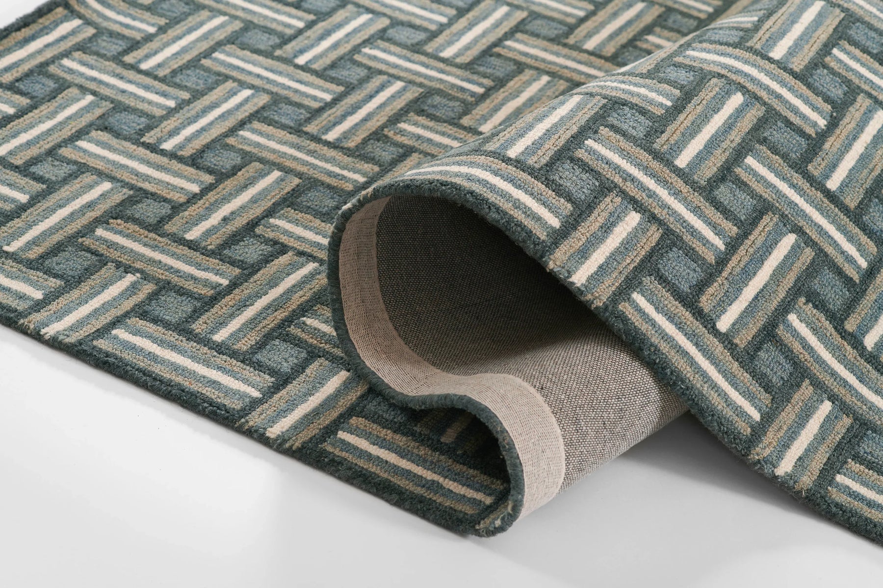Featuring a clean, basketweave pattern in cool blue and ivory tones, this design offers a sophisticated blend of structure and softness. The interlocking motif adds subtle visual texture without overpowering the room—perfect for layering into both classic and modern interiors. Made from 100% wool, this rug is naturally durable, low-shed, and comfortable underfoot, making it an ideal choice for living rooms, bedrooms, or home offices that call for a touch of quiet pattern and polish.
