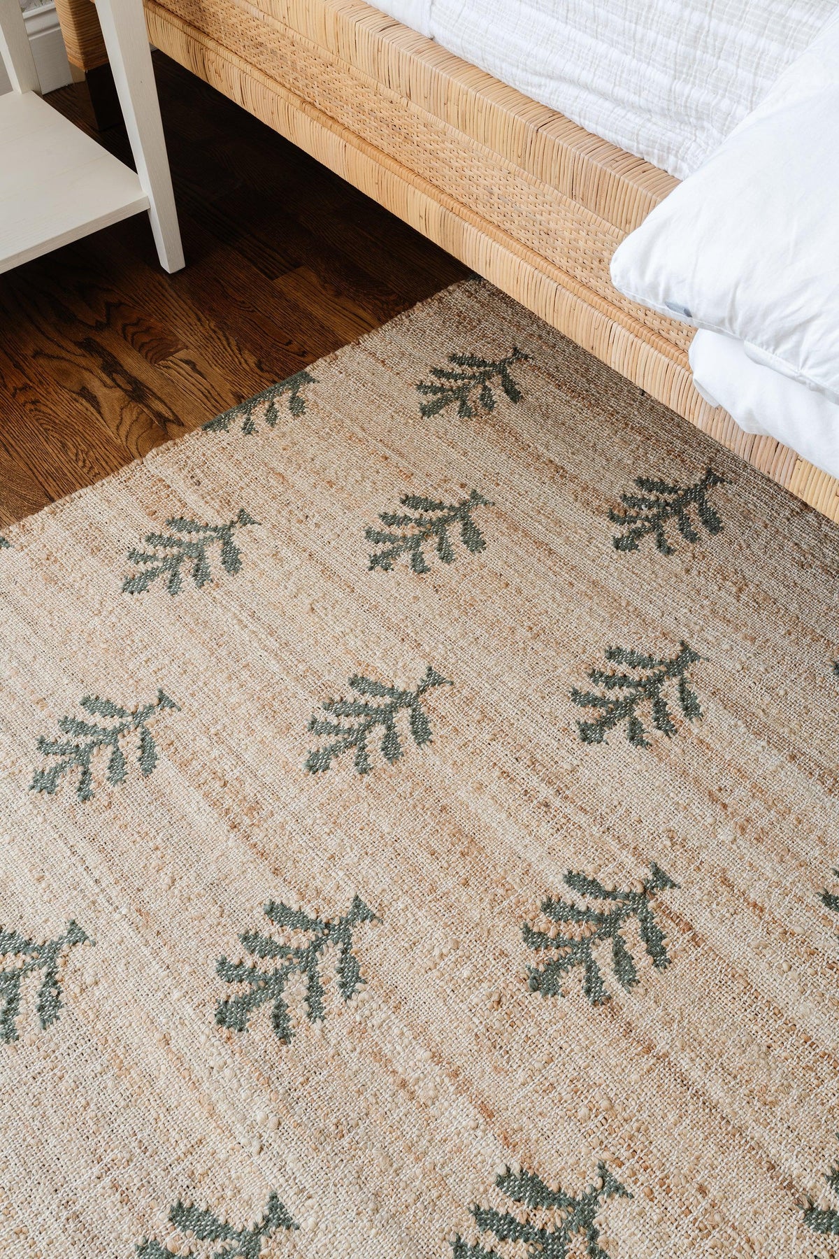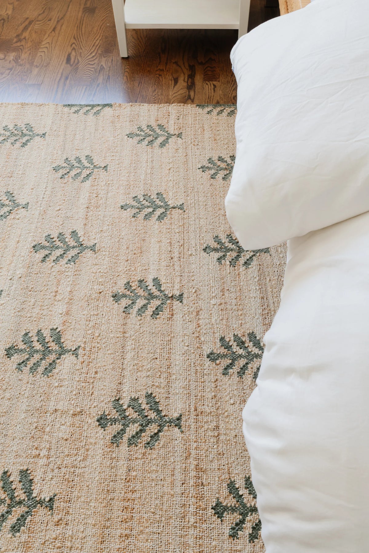 This block print patterned rug is hand woven from jute and wool, providing you with interesting texture and remarkable quality. With its tightly woven structure, and simple greenery inspired design, you can feel confident that this will bring a sense of natural sophistication to your home.