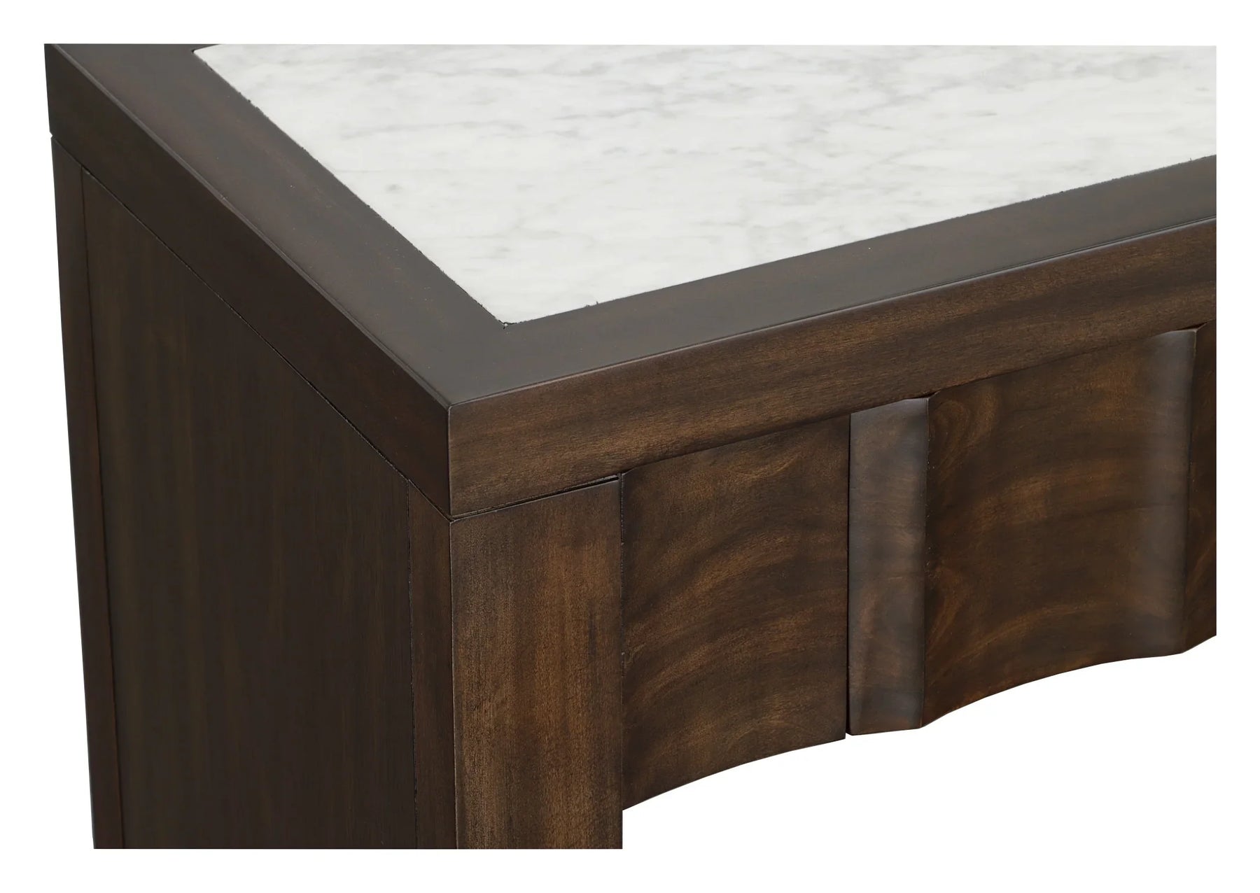 The epitome of casual elegance, West Camden is an elevated mix of casual textures and luxe accents. Dimensional wood-carved detailing and a rich Tahitian Pearl finish is balanced against luxe, Carrara marble surfaces and black steel metal accents.