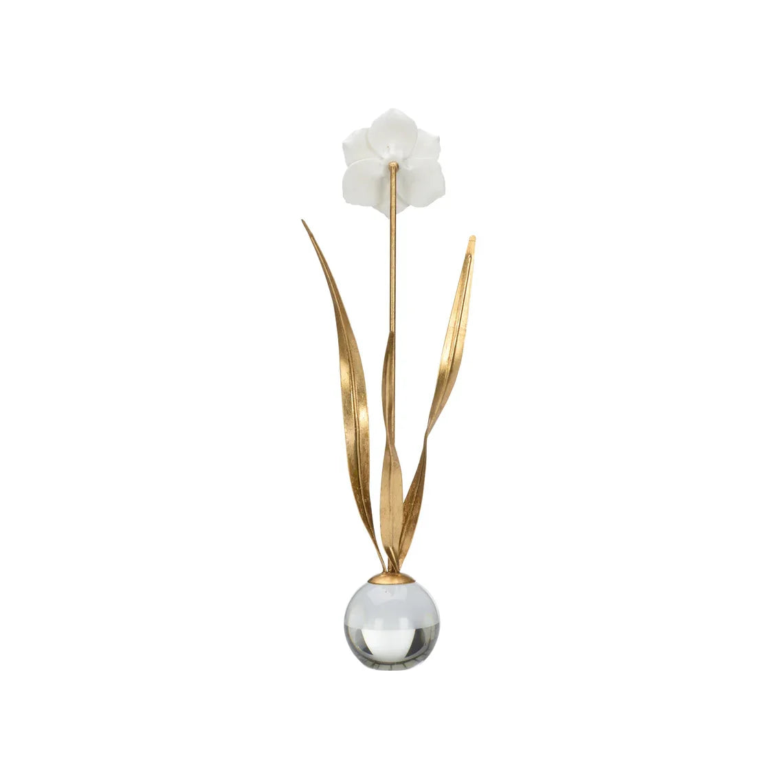 Giving the gift of flowers can last longer with the beauty of the Daffodil casted in gold and standing top a crystal base. Elegant way to show blooms all year.