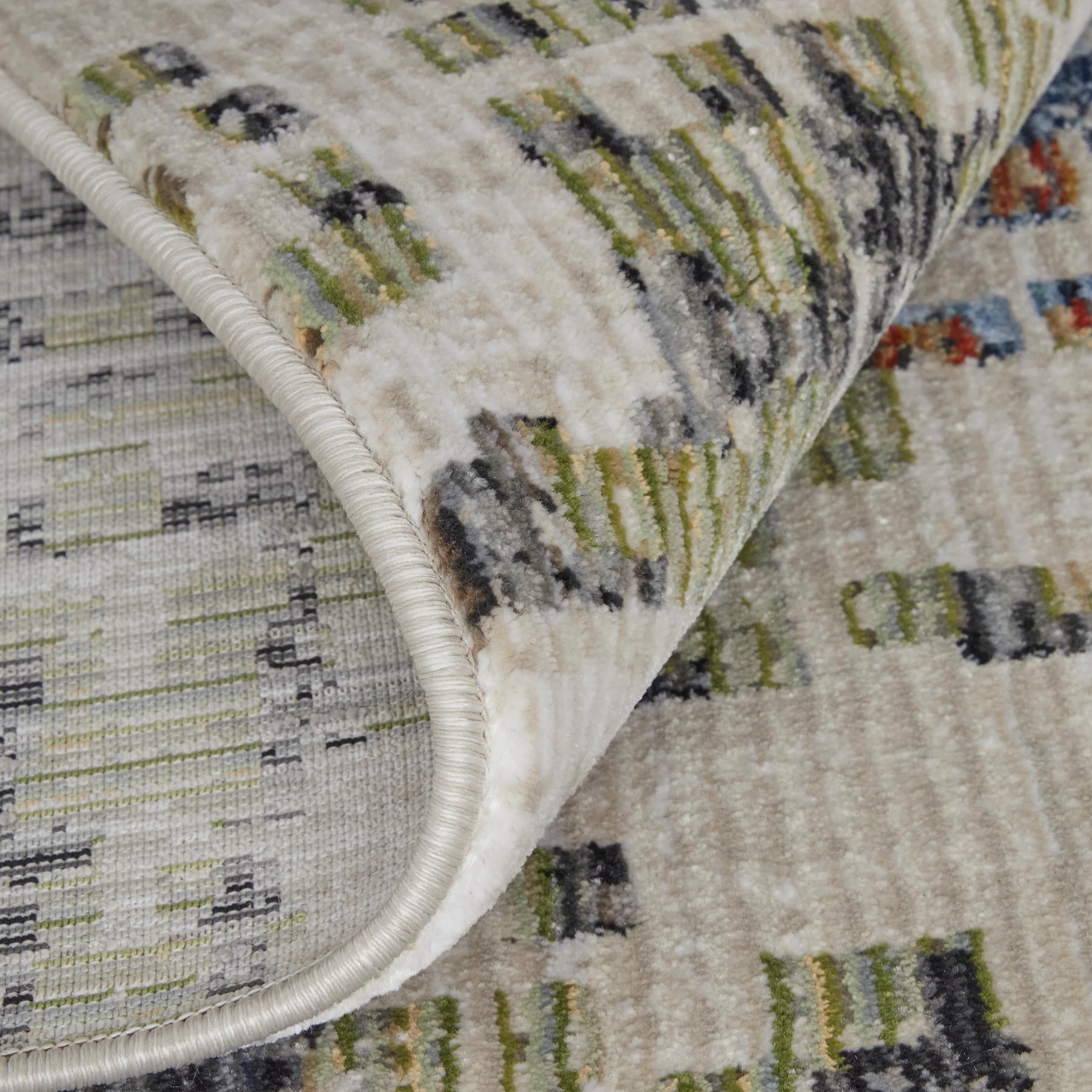Machine-made in Turkey from polypropylene and polyester, the Sonora Collection fuses abstract and watercolor influences in a palette of blue, green, taupe, and ivory. Stain and water resistant, and easy to maintain, this collection is ideal for active households and is both pet and kid friendly.