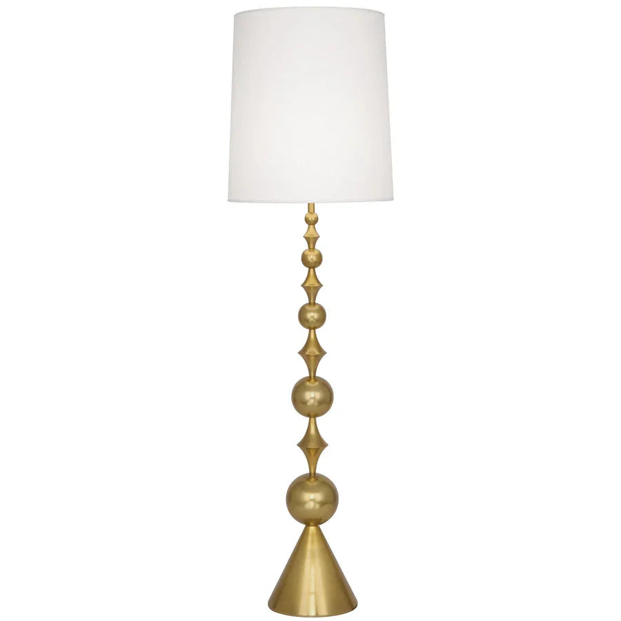 Our Harlequin Floor Lamp is our pared down take on a tall and spindly candlestick lamp. It adds generous height to a room, and is an ideal space-saver for a smaller sanctuary. Simple diamonds and spheres offer a hint of mid-century modernism, while the metallic finishes—antiqued brass and polished nickel—bring the glamour.