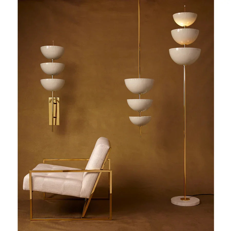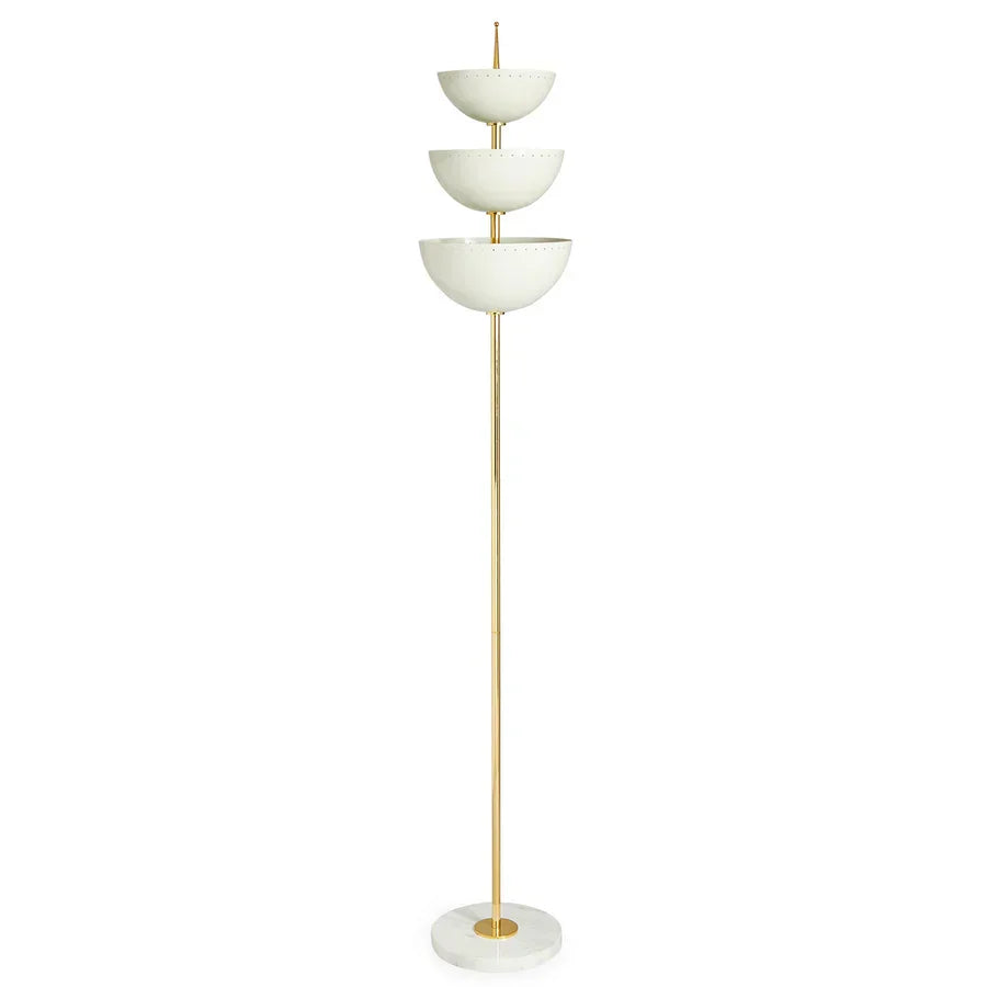 Wash your room in warm ambient light with our Lisbon Torchière. A thick marble base with a polished brass stem and three perforated enamel bowls of light, each featuring a double socket for moody uplighting. Fab flanking a fireplace or lighting a dark corner. Every decorator's secret weapon, torchieres provide an unexpected glow to any room, and make everyone look younger, richer, and thinner.