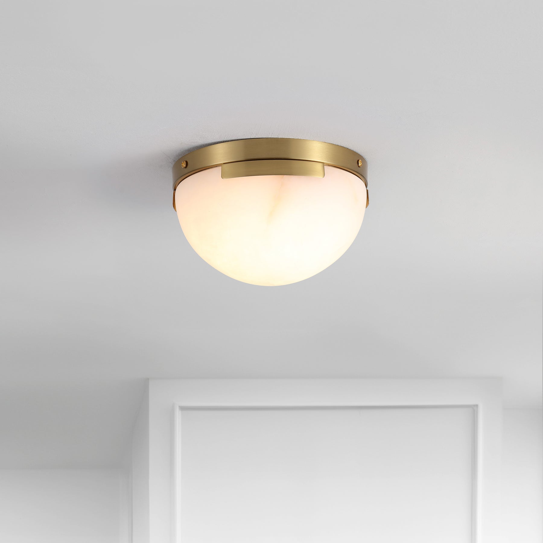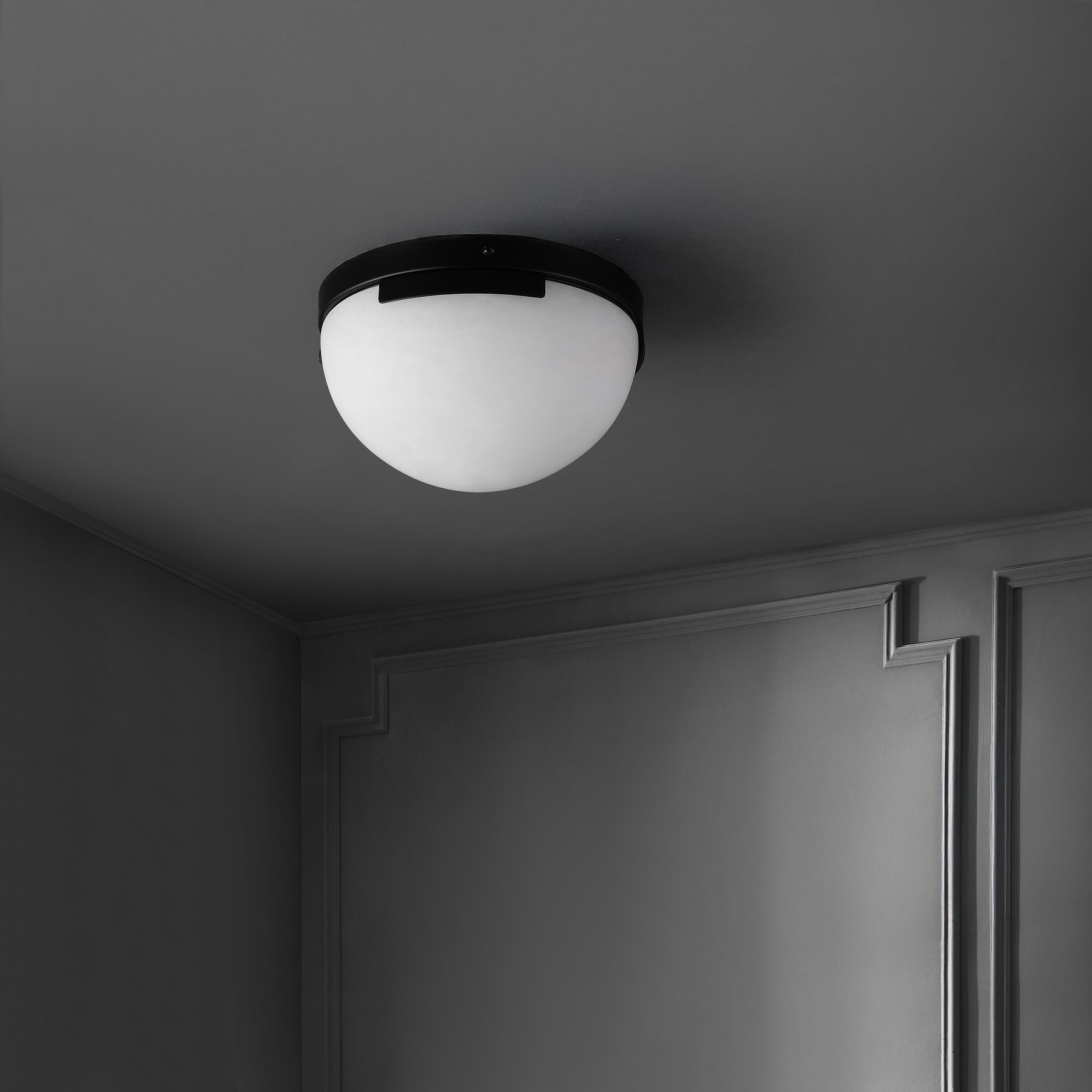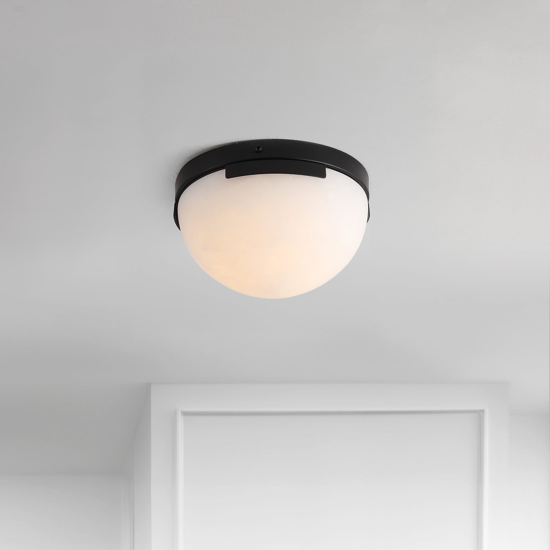Enhance your space with the Eddie Alabaster Flush Mount, a sleek and modern lighting choice that will add a stunning aesthetic to your home or office. Crafted from robust iron, this fixture boasts a sleek black exterior paired perfectly with an off white shade, creating a striking, contemporary contrast. The alabaster flush mount design offers an ambient lighting effect, which can create a gentle and inviting atmosphere wherever it is installed. It's a striking addition to any setting, whether that's a cozy corner in living room, a modern workspace, or a stylish dining area. Experience an upgrade in your lighting solution with this Eddie Alabaster Flush Mount. It's more than just functional lighting - it's a statement piece that takes your interior design to a new level.